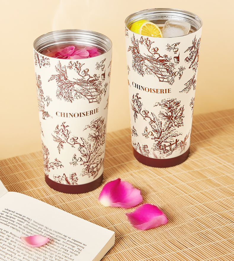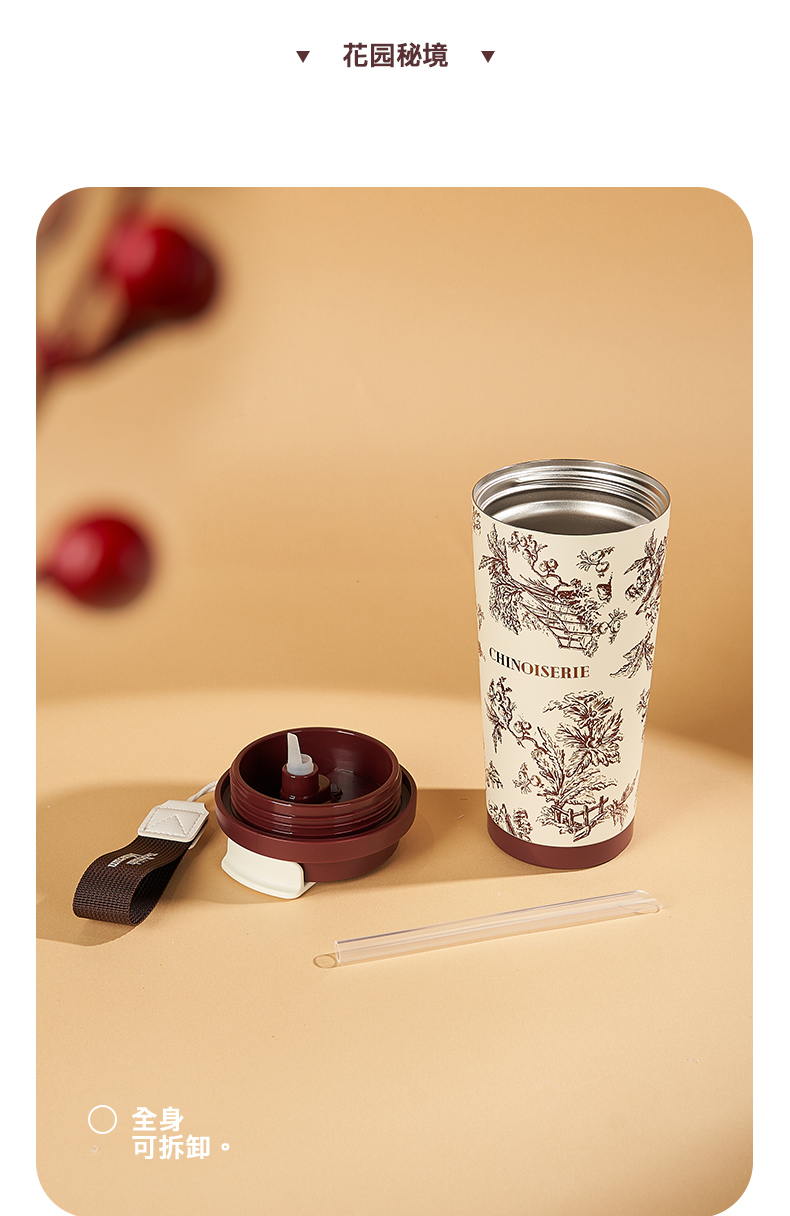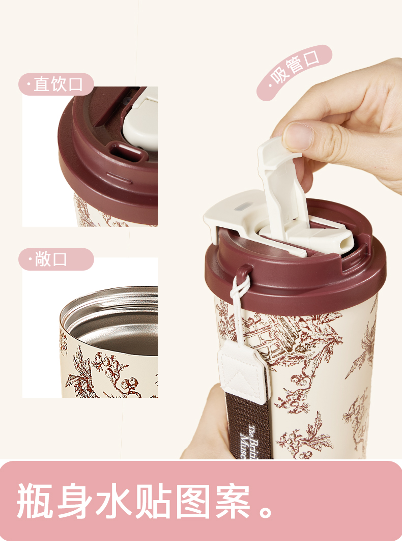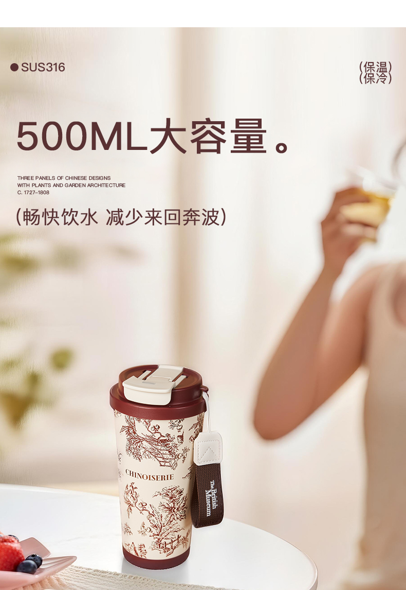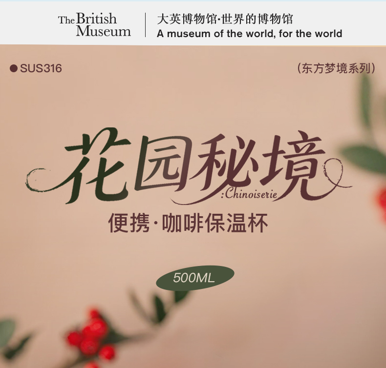 大英博物馆东方梦境系列花园秘境便携咖啡保温杯-红金