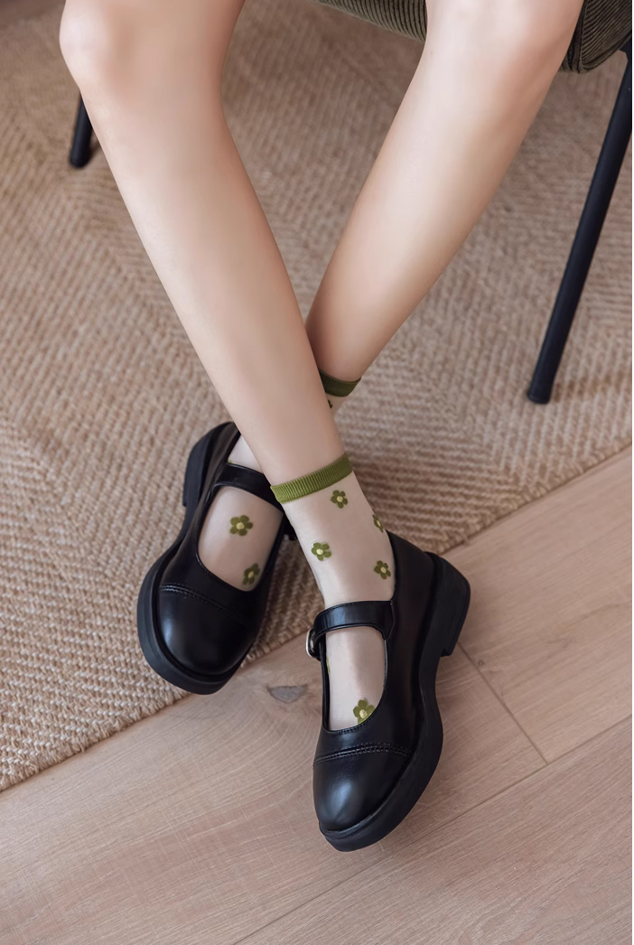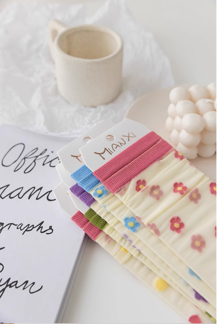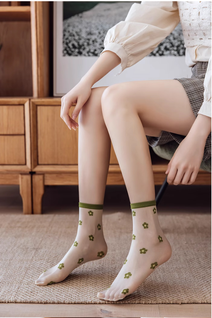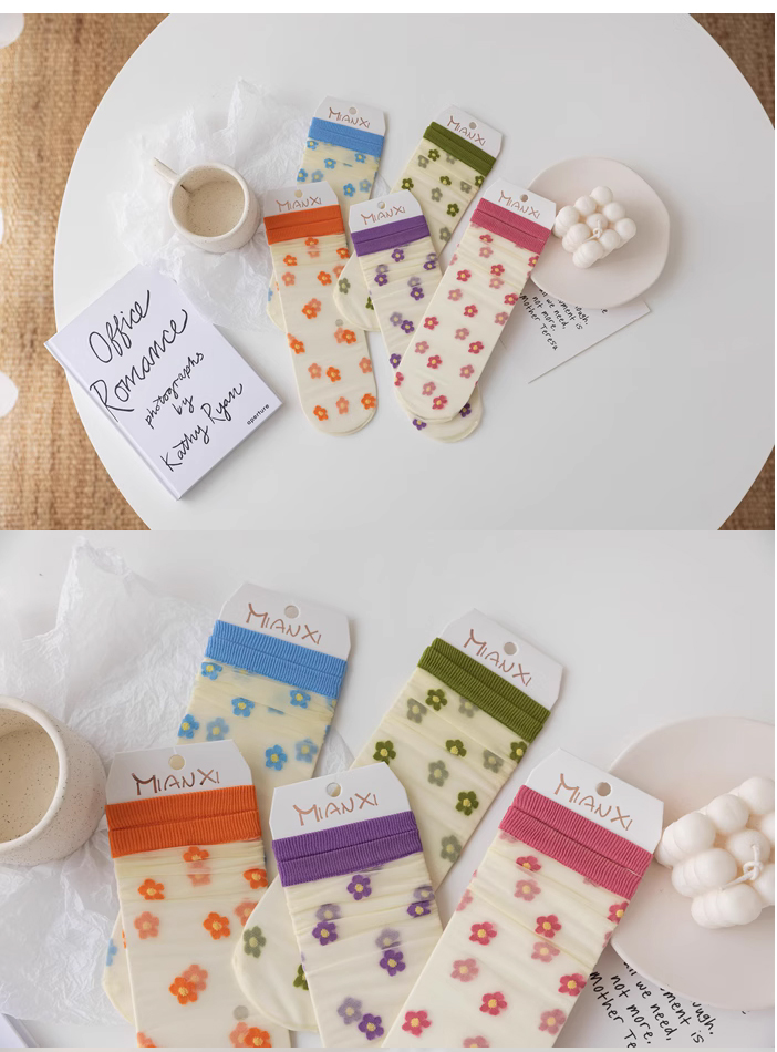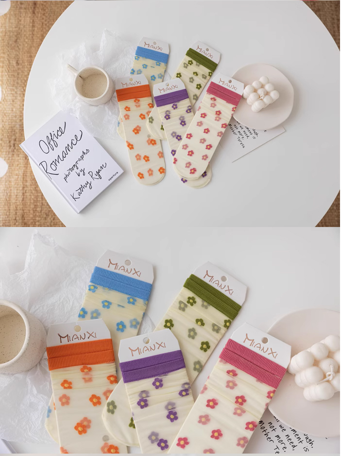 小碎花图案,时尚又可爱,透气丝质中筒袜,可做堆堆袜,夏天上脚超舒适!