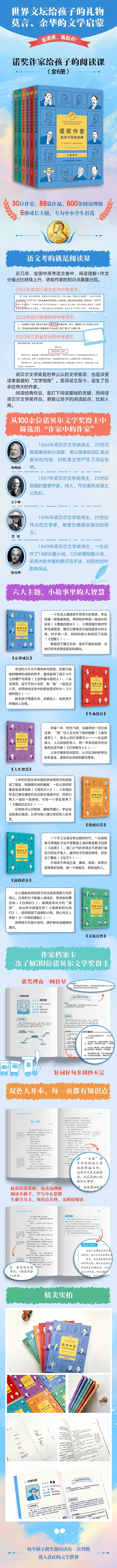 “诺奖作家给孩子的阅读课”丛书共6册,分心智成长、生命教育、人生智慧、情感启蒙、品格修养、亲近自然6个成长主题。书中作品好读又好玩,字里行间充满智慧、勇气与力量。附加的批注除包含符合“大语文”背景的知识拓展外,还指出了作品笔法的精妙之处,是一套兼顾经典与趣味性的阅读课。