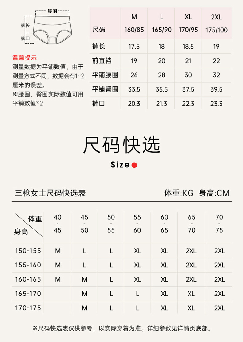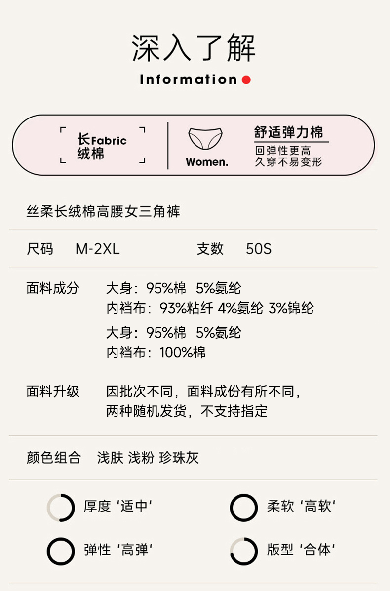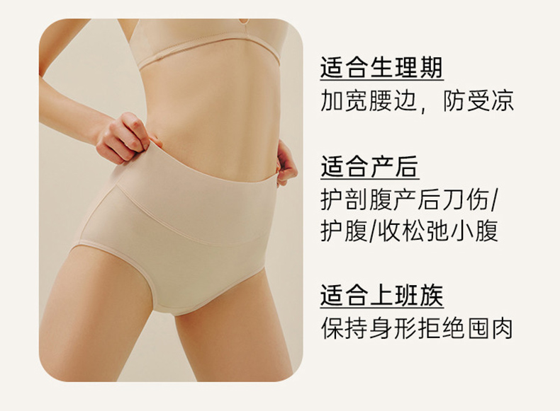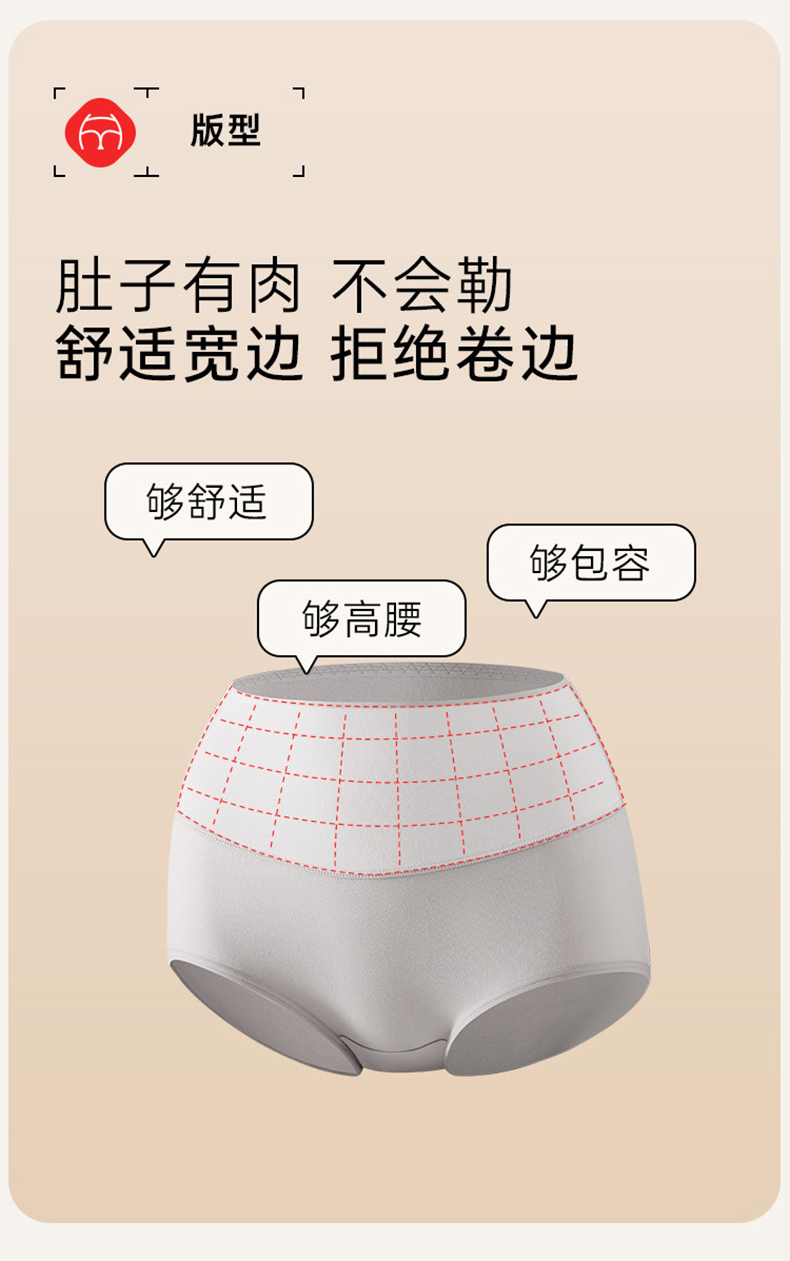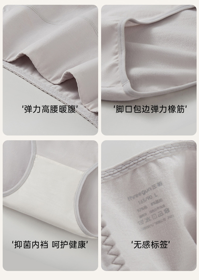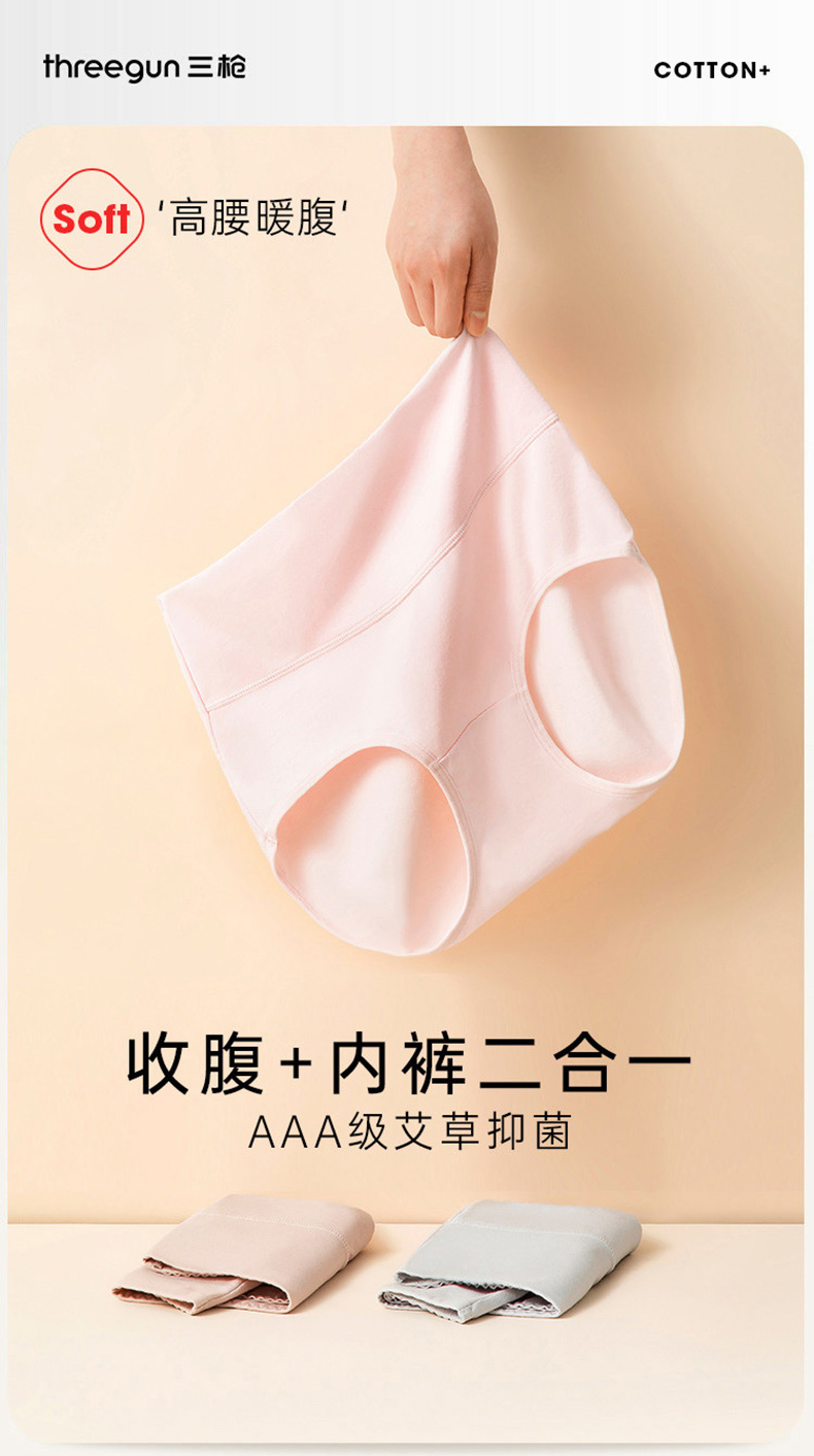 Threegun三枪 【丝柔长绒棉】高腰女士三角裤(1条装)-40684B111