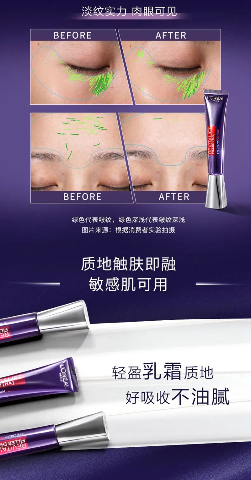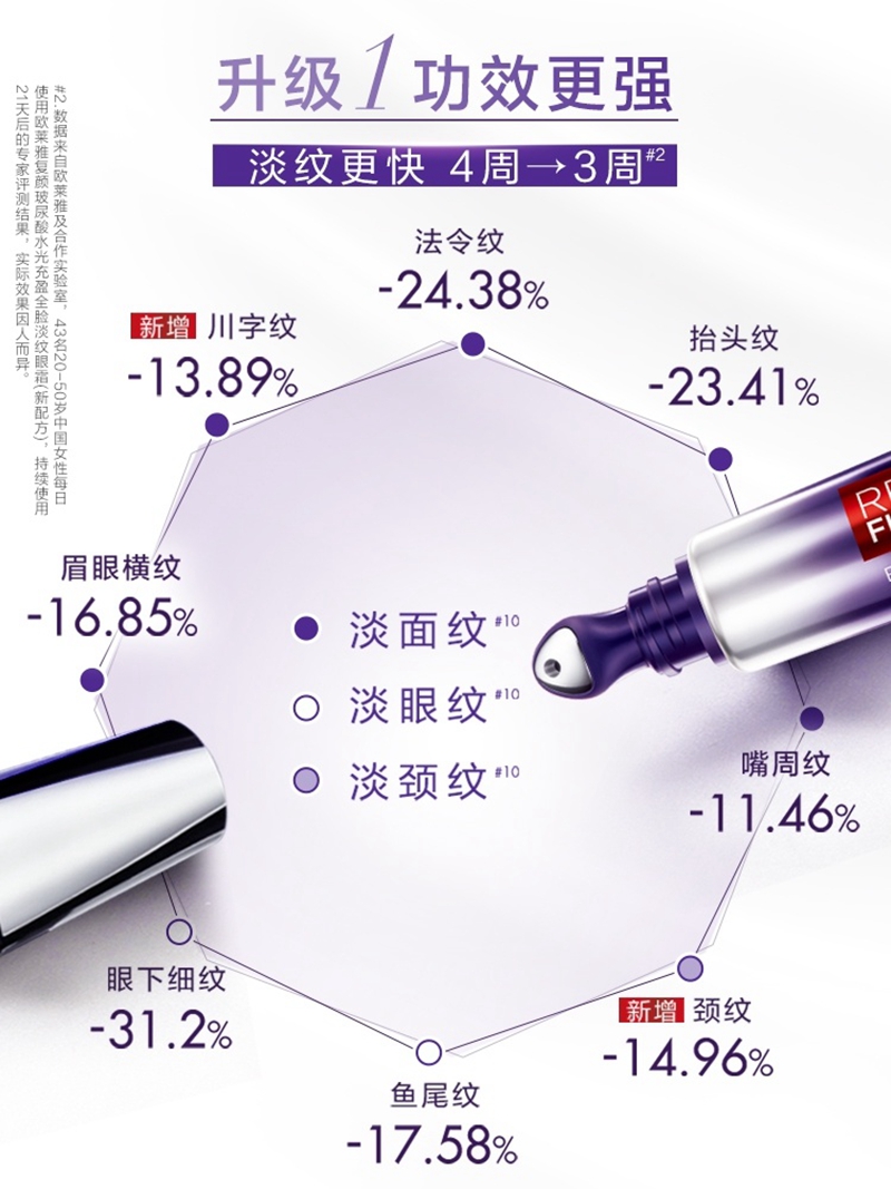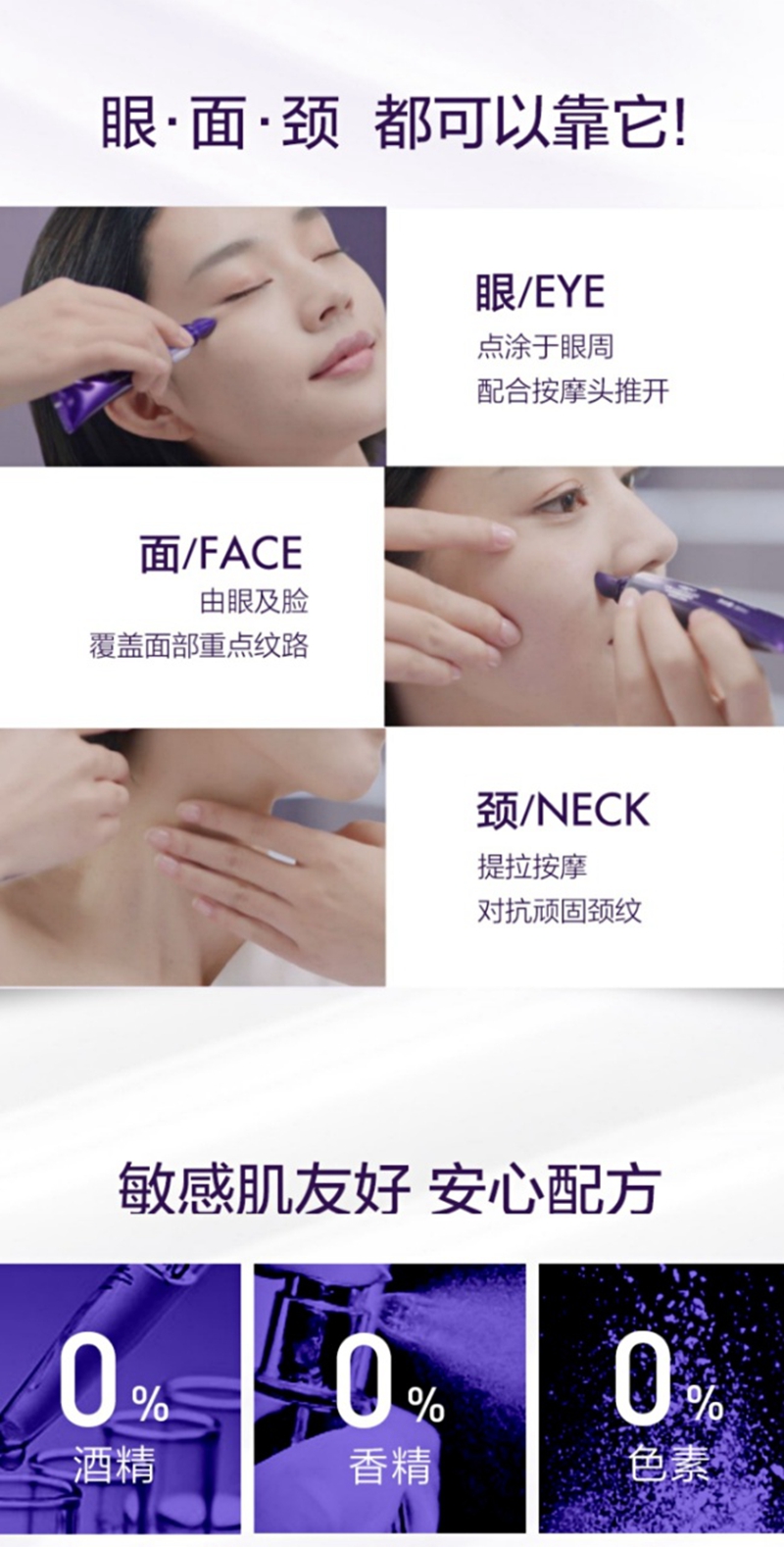 欧莱雅紫熨斗全脸淡纹眼霜按摩头版1瓶30ml