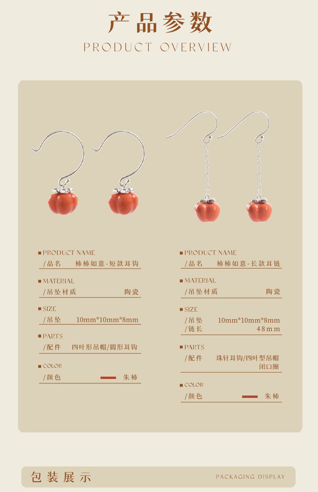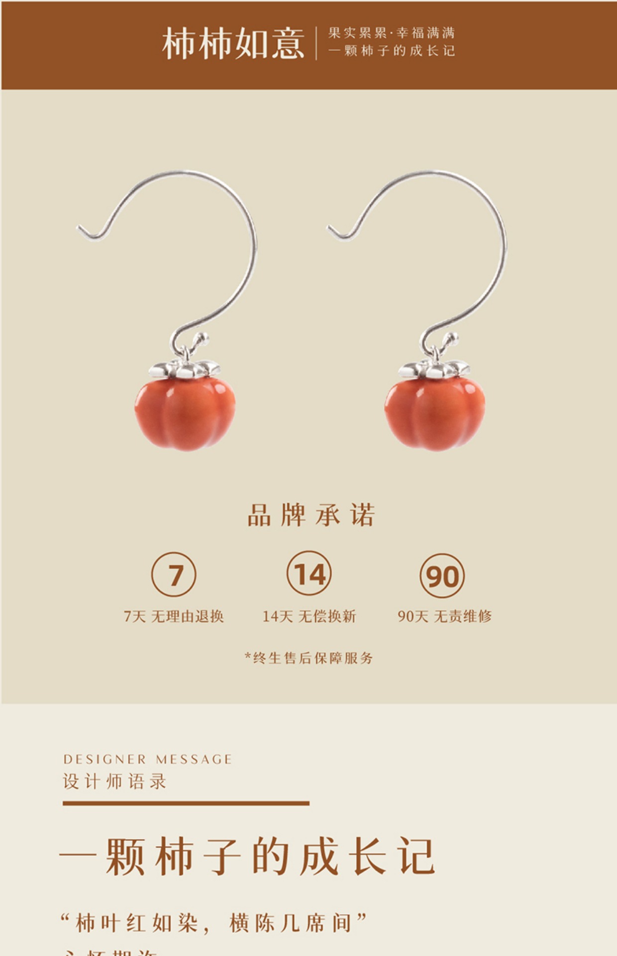 凡华造物柿柿如意925银耳钉女小众设计气质耳环轻奢新款高级耳饰柿柿如意925银圆耳钩 耳环