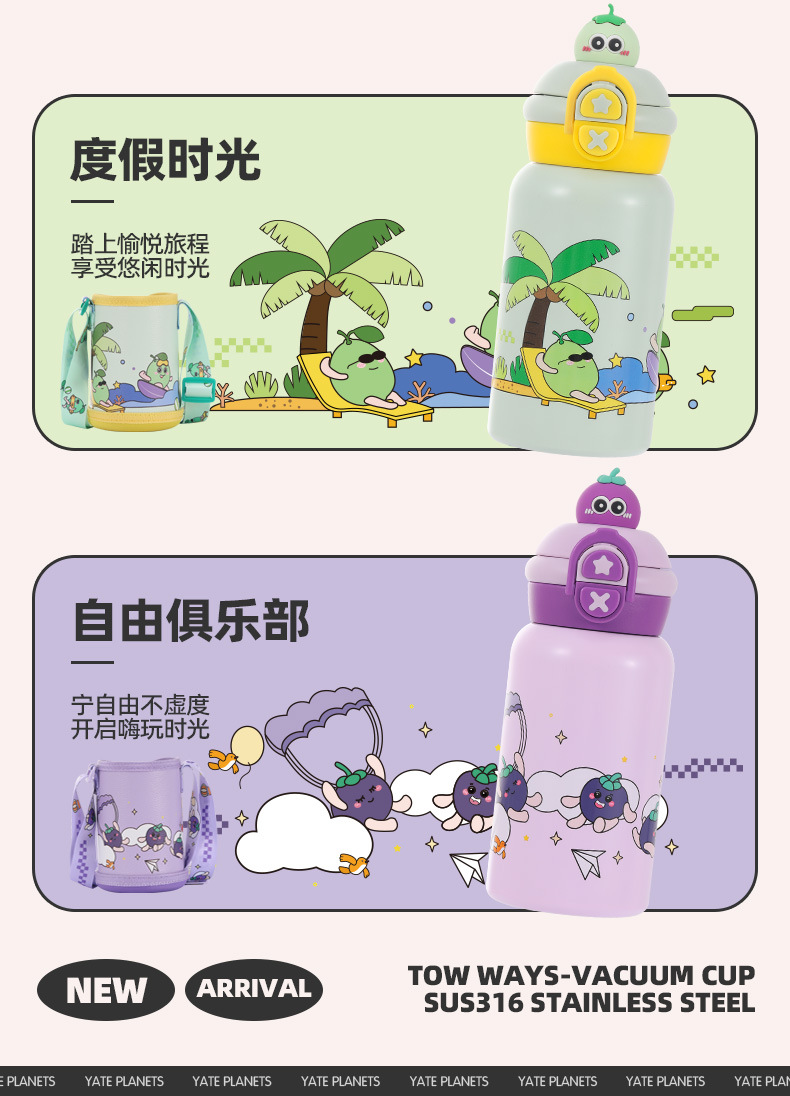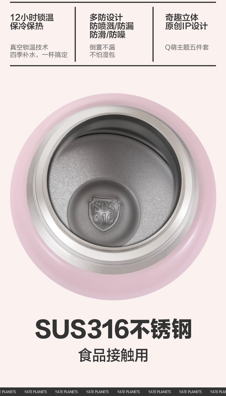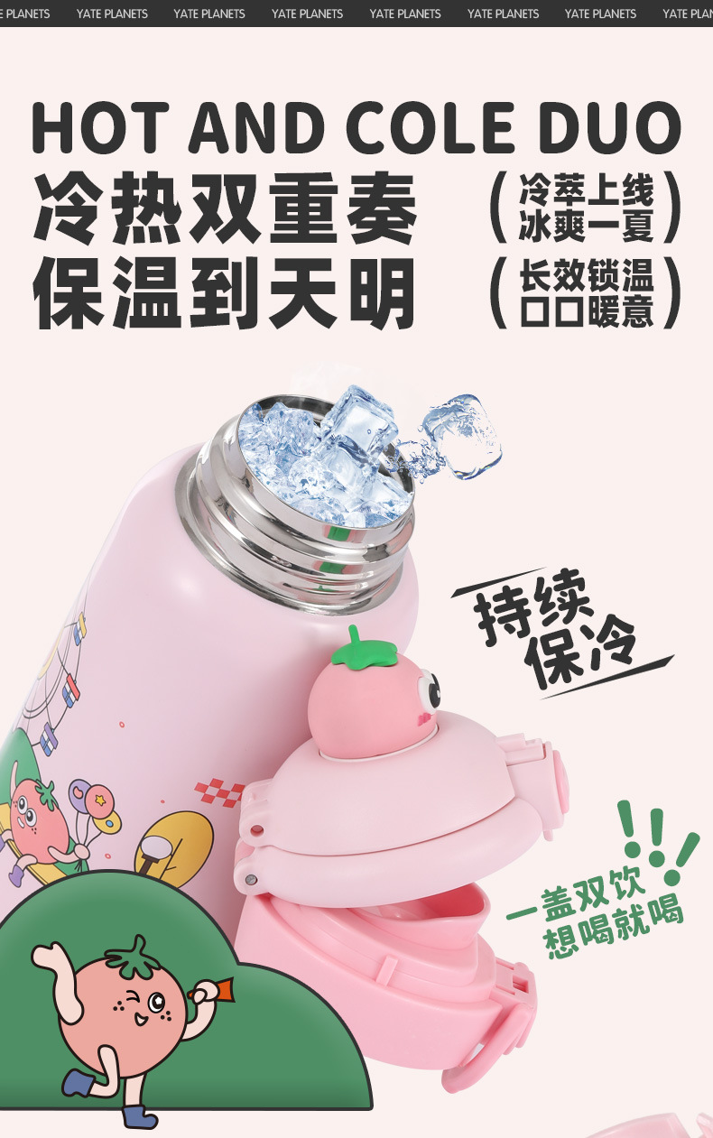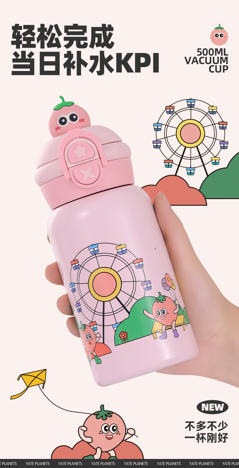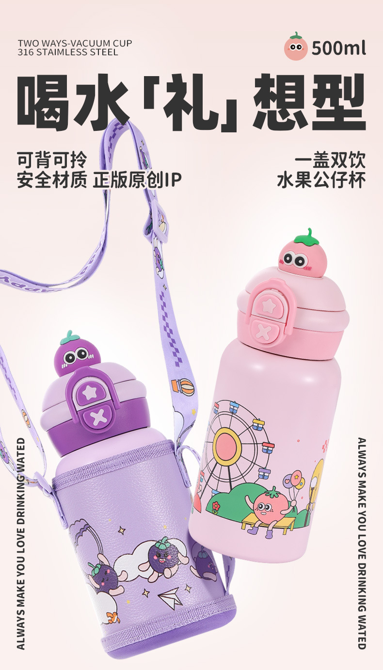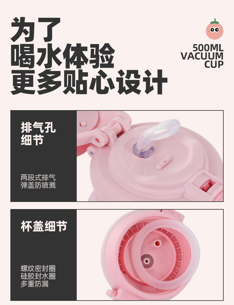 【29.9🉐500ml大容量316L保温杯!】便携高颜值儿童水杯可爱双饮萌趣吸管杯防摔316不锈钢保温杯