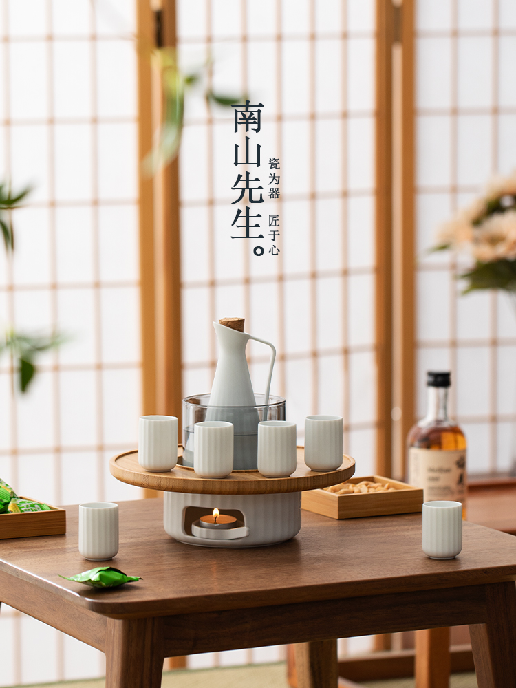 南山先生温酒器黄酒烫酒壶家用煮酒器暖酒杯蜡烛加热酒具套件日式南山先生 相见欢温酒器(脂白)