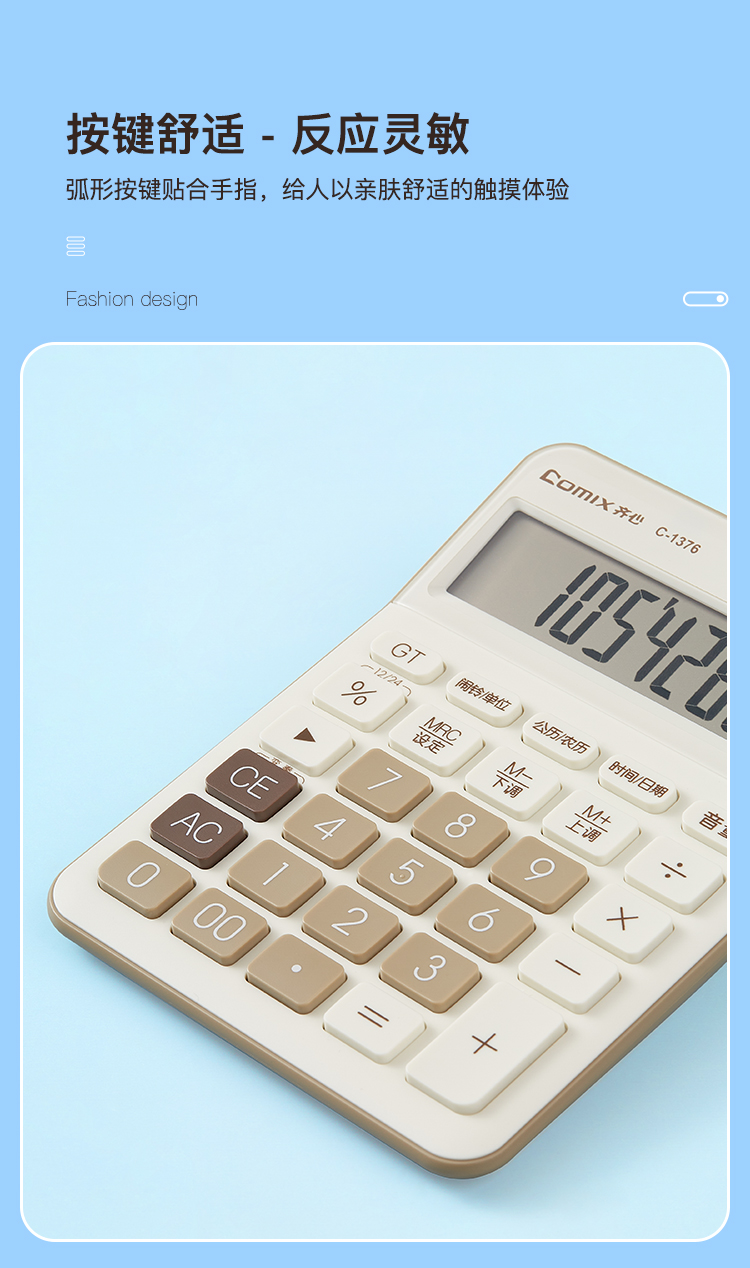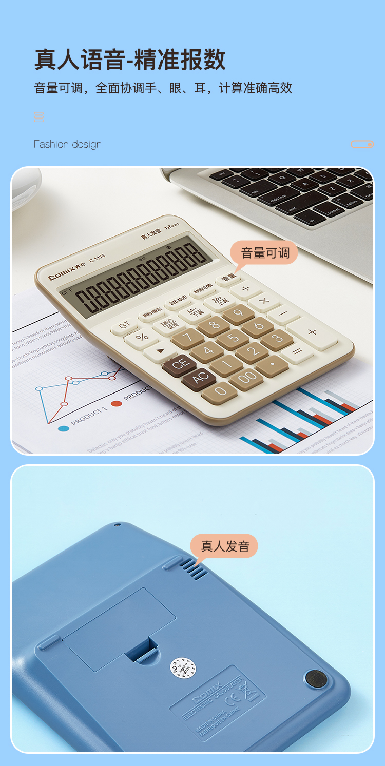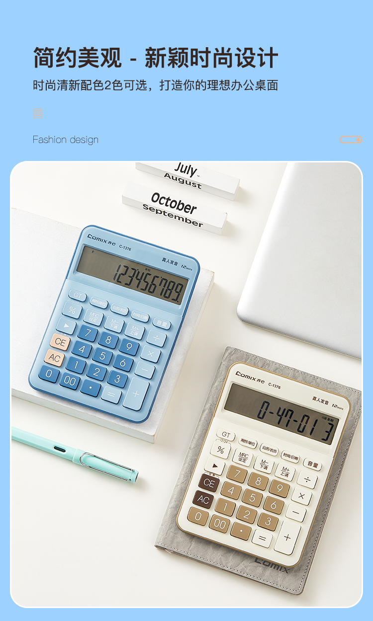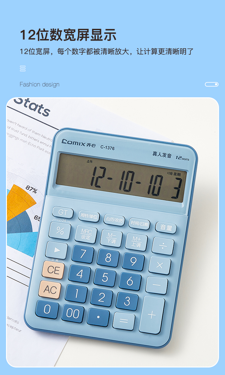齐心 C-1376 语音计算器白色中号计算机办公财务新款宽屏