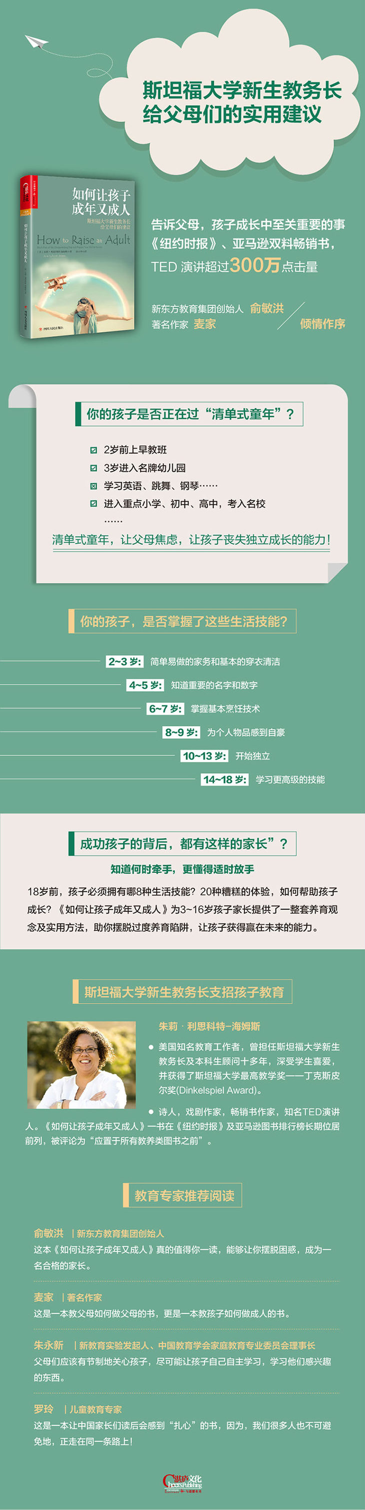 作者以大量生动的事例呈现出了美国家长过度教养的现状,并指出,过度教养给这一代年轻人在心理健康、工作能力、独立生活能力等多方面带来的危害。这是一本让中国家长们读后会感到“扎心”的书,因为,我们很多人也不可避免地,正走在同一条路上!作者根据所发现的问题,给家长们提出了全面、具体的教养建议,辅助家长找到适当的度,回归到为人父母恰当的位置上。在这个如此容易做多、做过的时代,我强力推荐这本书给家长们!