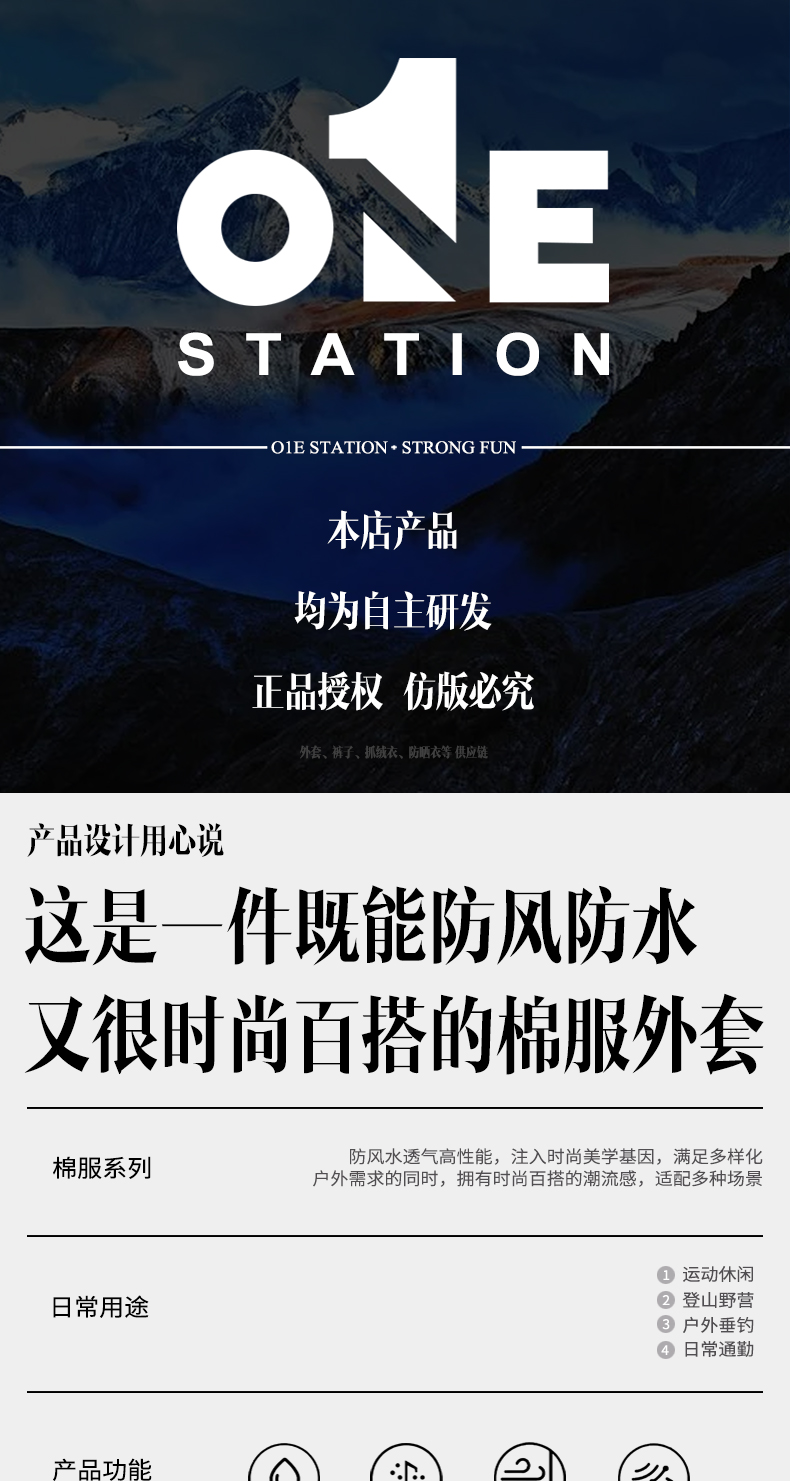 【精选】01E STATION 情侣款棉服外套(多色可选) 时尚百搭防风防水防静电情侣棉衣通勤保暖面包服可拆卸风帽
