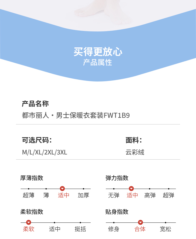 都市丽人都市锋尚保暖衣舒暖套装云彩绒中厚男士保暖衣套装FWT1B9