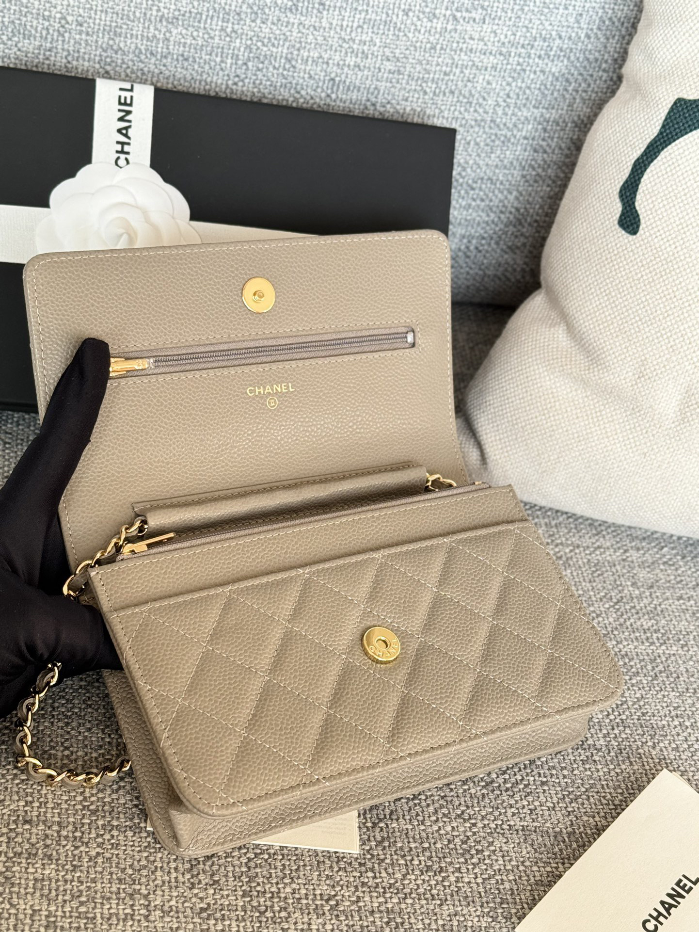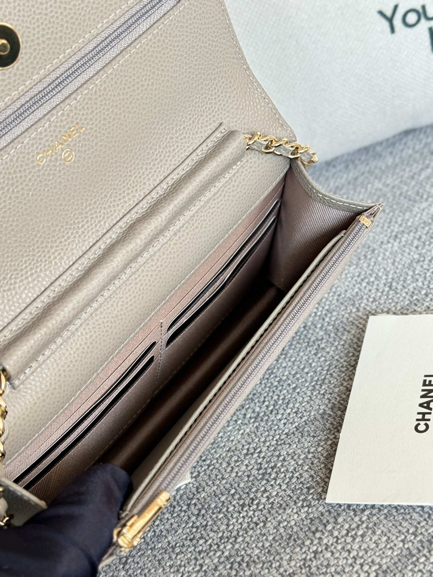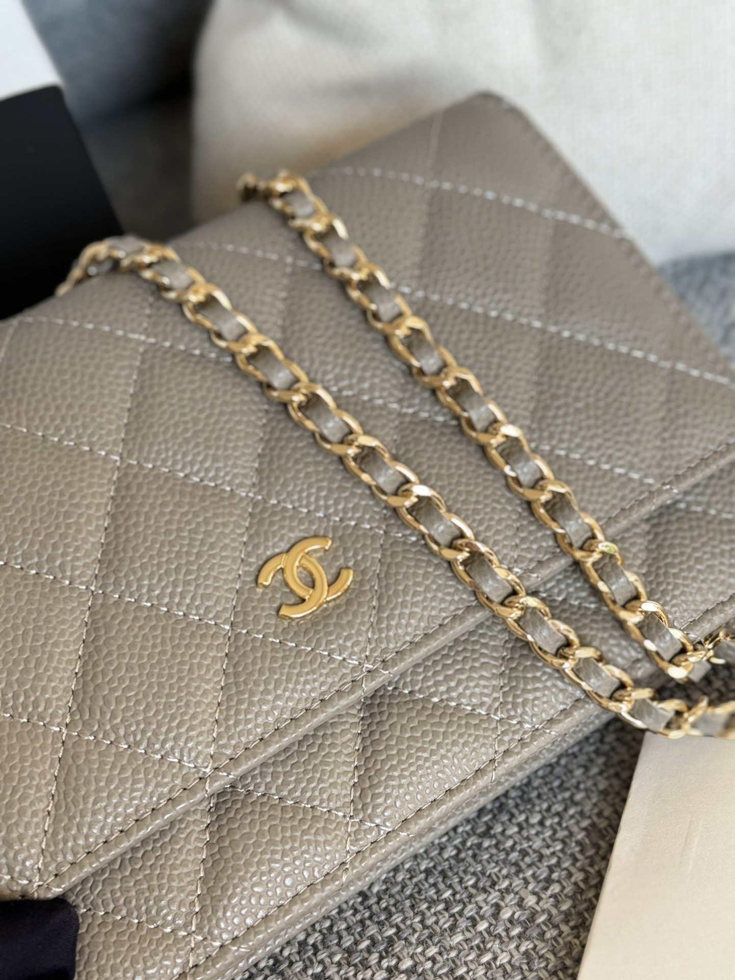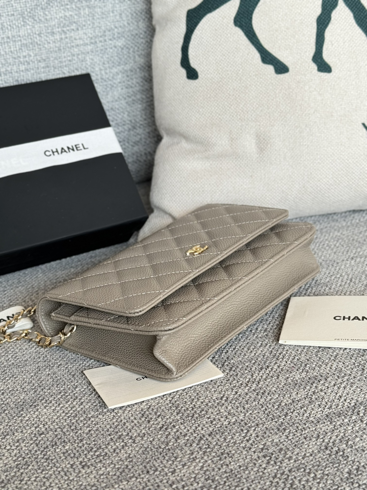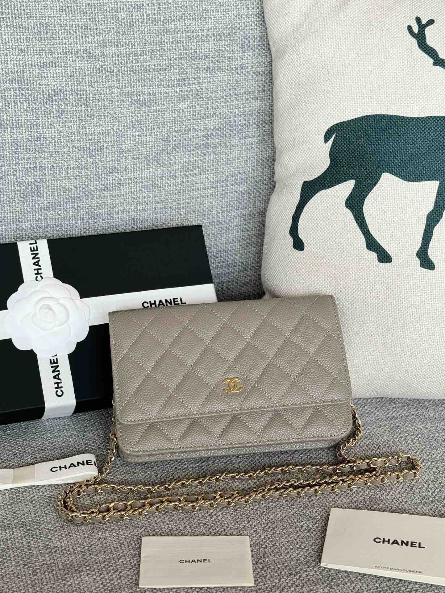 香奈儿woc链条包🉐️牛皮-灰色金扣(粗球纹)
