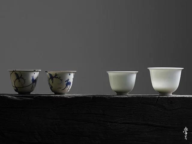 一套两只杯子尺寸:85mm 85mm 62mm器型来源:明晚期(万历)青花杯。 形古钟状,外弧深腹,绘喜鹊登梅,鹿嬉于前,寿星其后,用笔洒脱,遒劲有力。