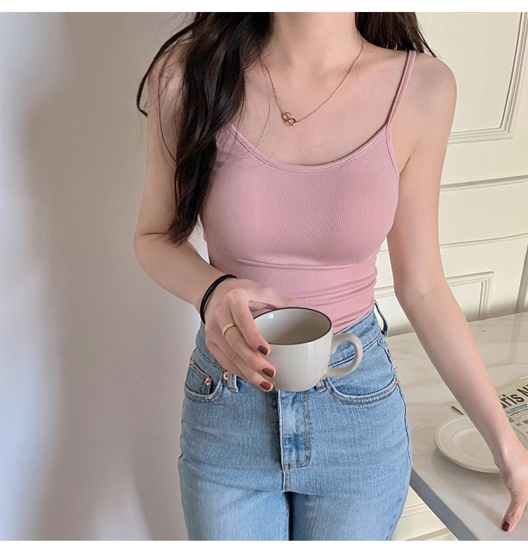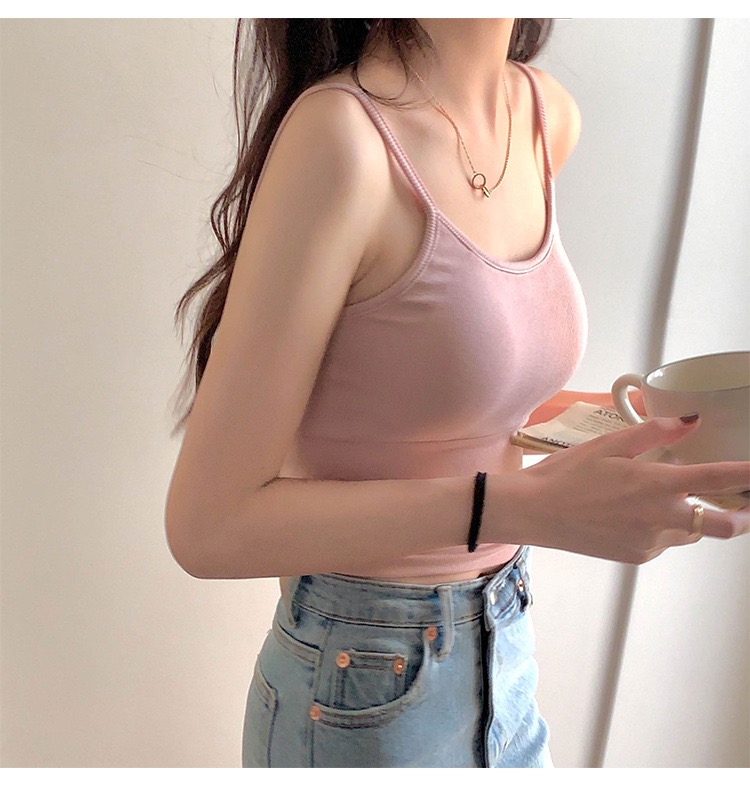 <曾小咸推荐>纯欲吊带背心内搭打底带胸垫短款背心 活动价39.99/件 50/2件!【预售款,预计3-15天发货】
