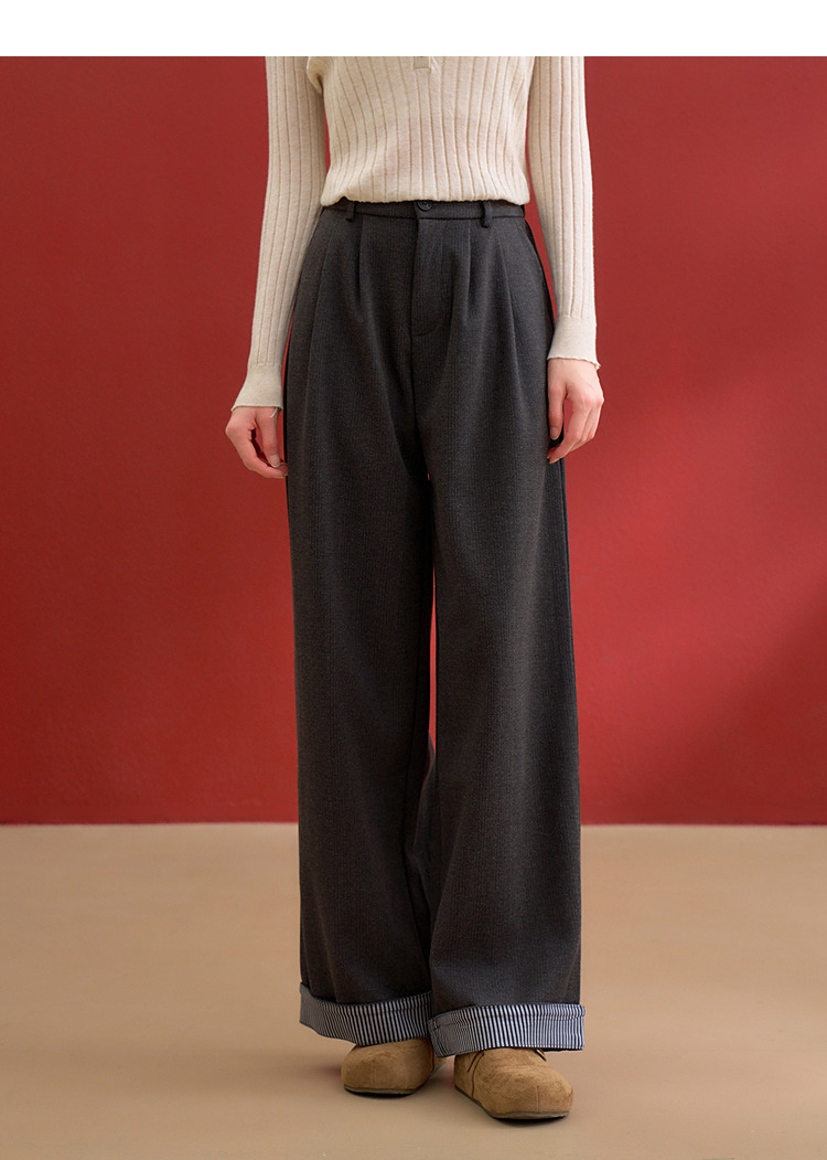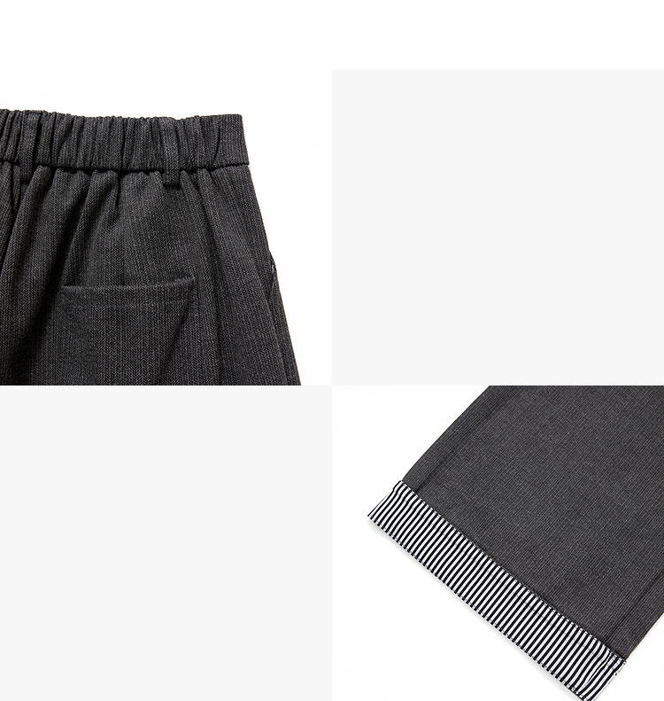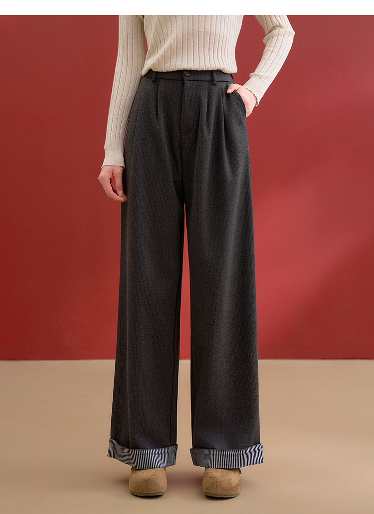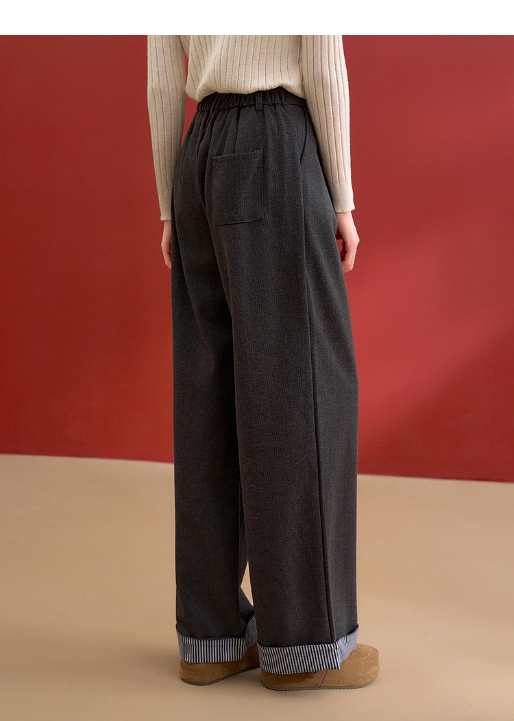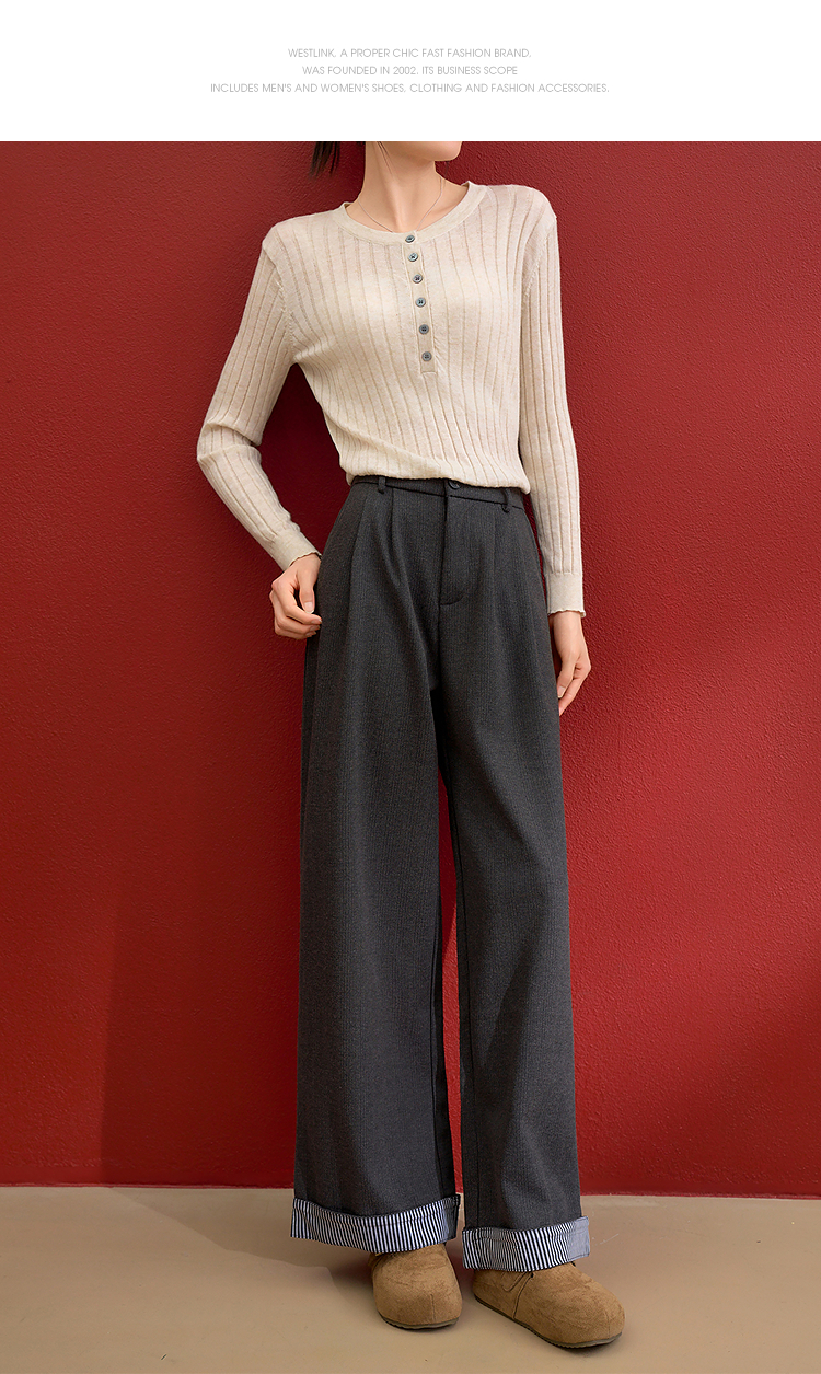 西遇休闲裤直筒垂感女秋季新款卷边条纹拼接宽松阔腿长裤V0055467/SS051511
