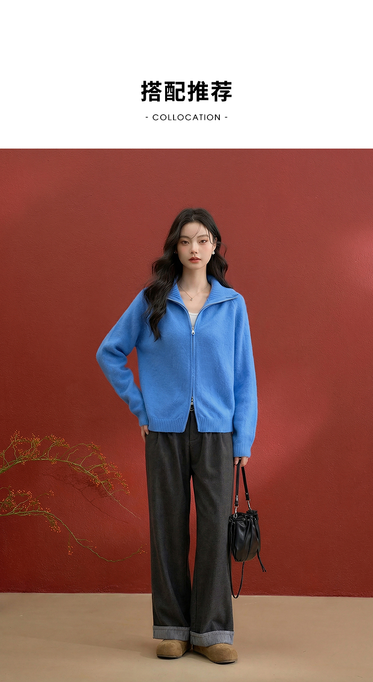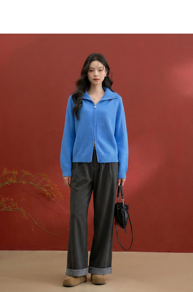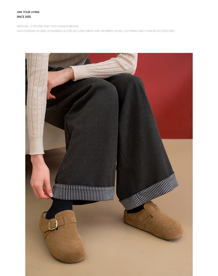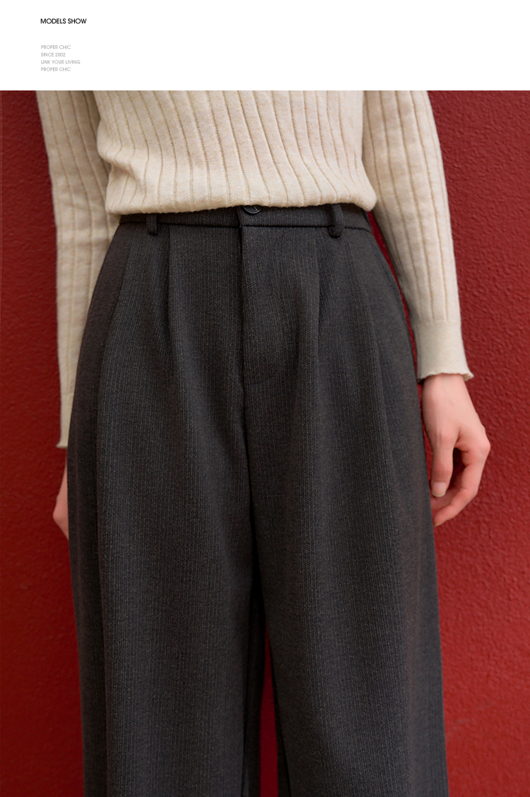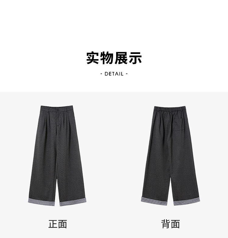 西遇休闲裤直筒垂感女秋季新款卷边条纹拼接宽松阔腿长裤V0055467/SS051511