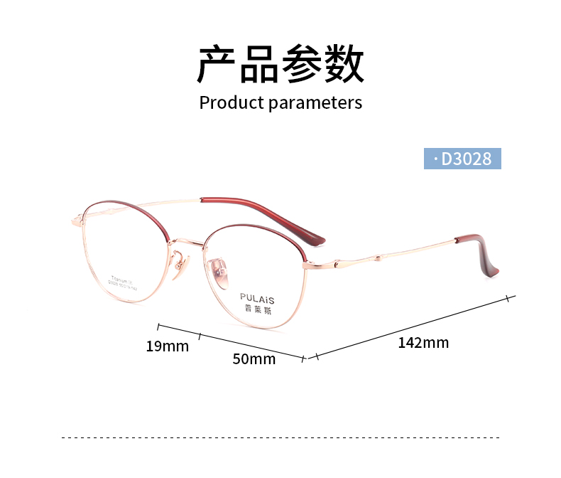 普莱斯光学镜框D3028 经典全框 半钛材质 舒适鼻托 稳固桩头 复古休闲 三色可选