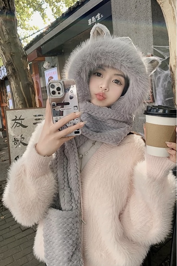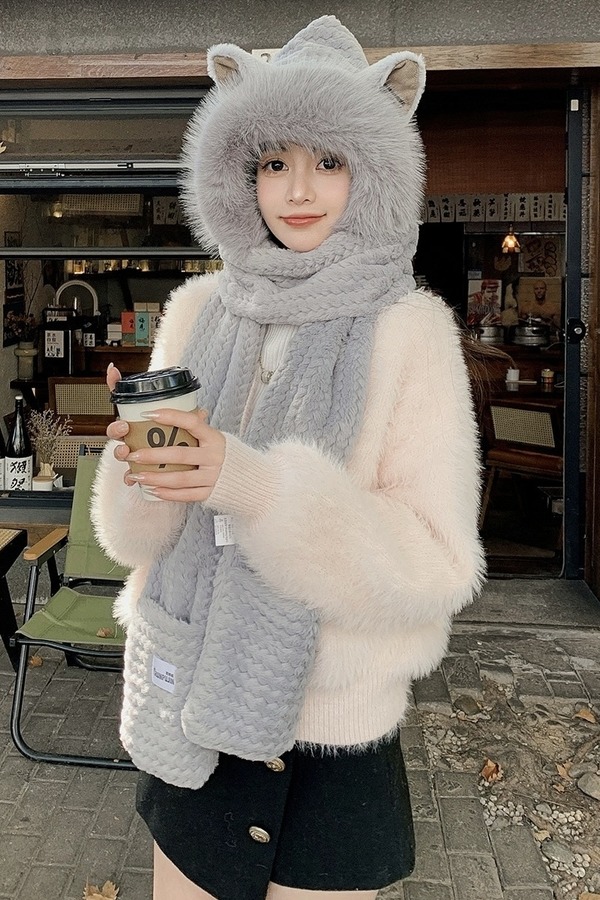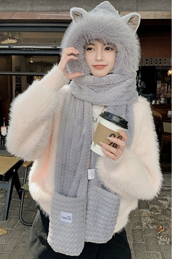 Say Something 加厚保暖一体针织帽 19920
