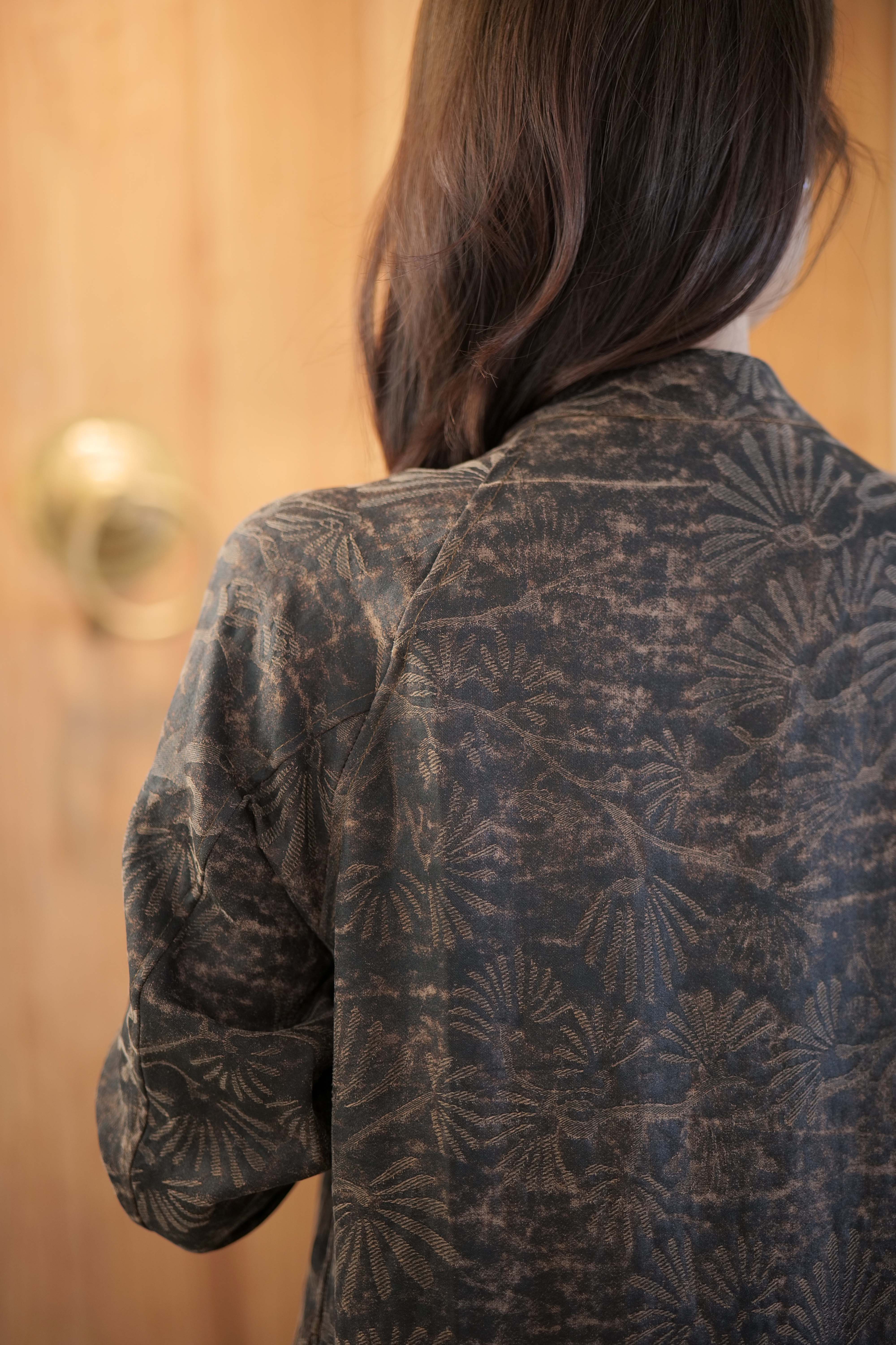漫物记素平缎香云纱拼布连帽外套M286