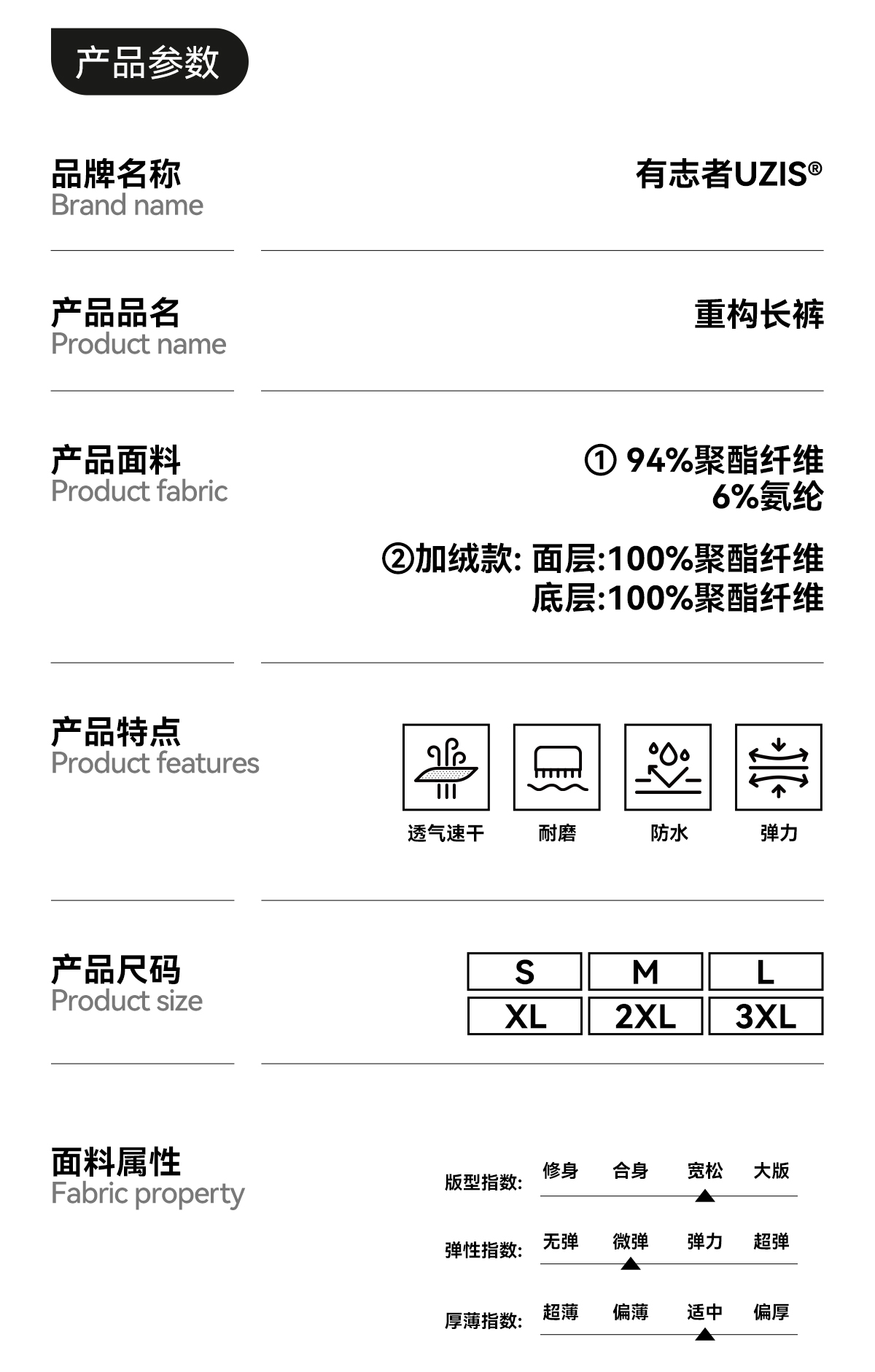 有志者UZIS篮球训练加绒运动长裤男户外健身跑步秋冬直筒休闲宽松裤子重构