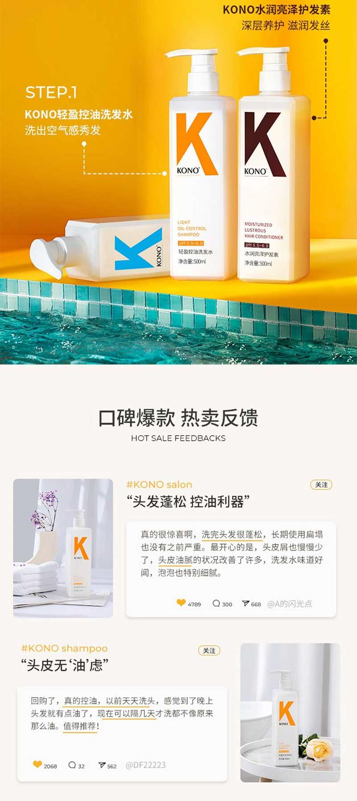 KONO香氛控油去屑洗发水清香蓬松持久留香男女正品500ml