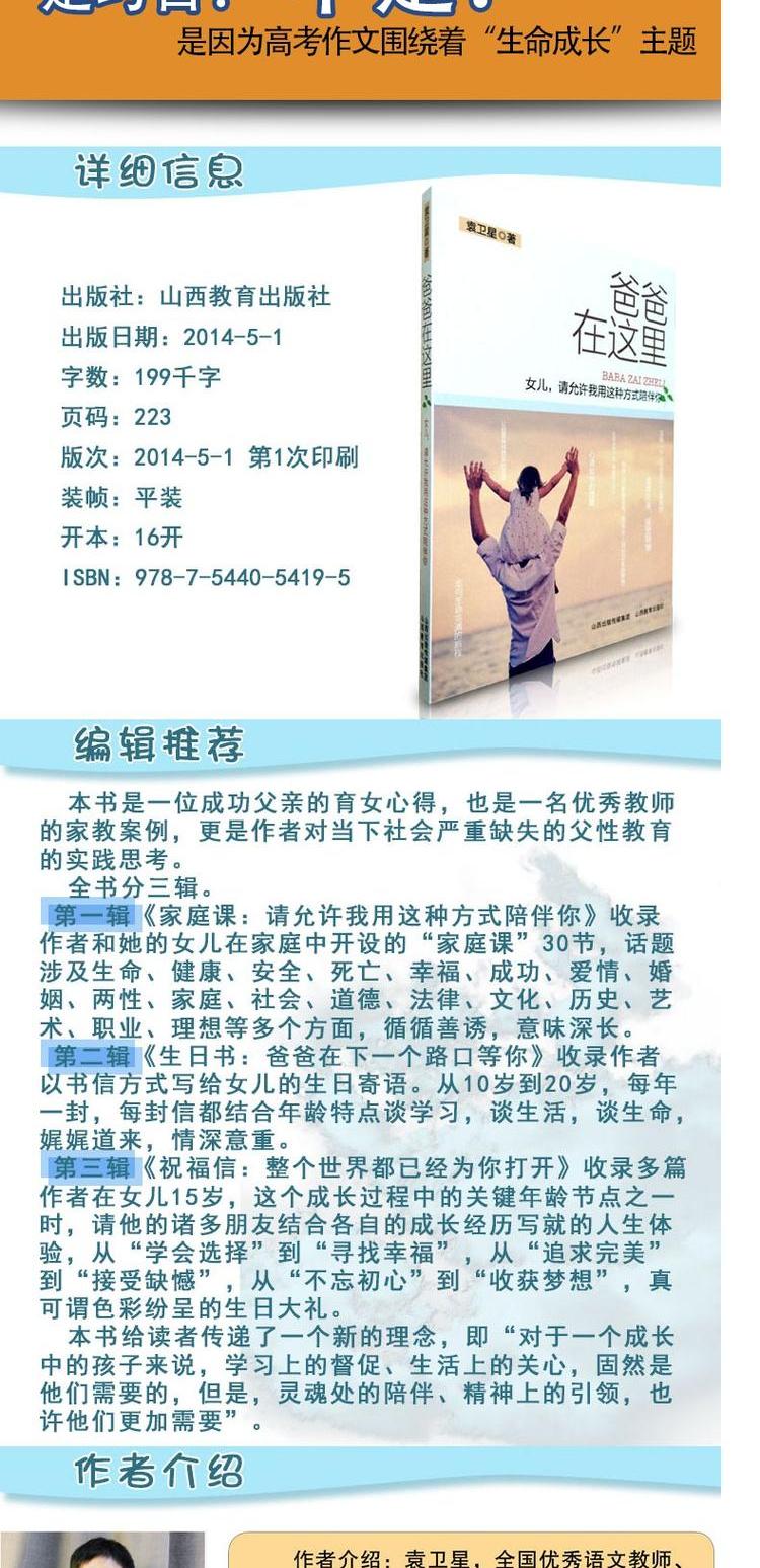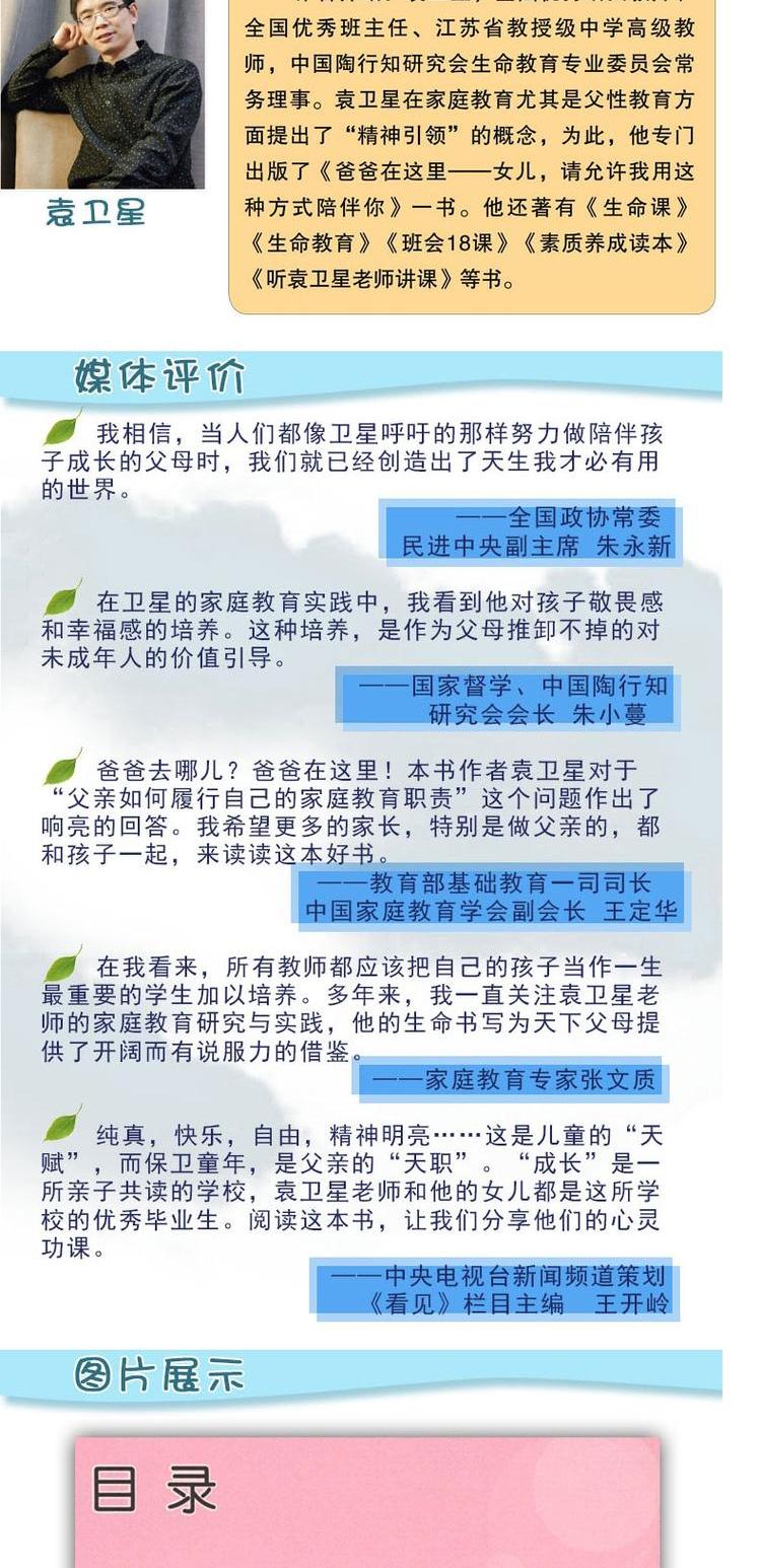 正版包邮 爸爸在这里—女儿请允许我用这种方式陪伴你 家庭教育书籍 成功父亲的育女心得 卓越教师的家教案例 袁卫星主编