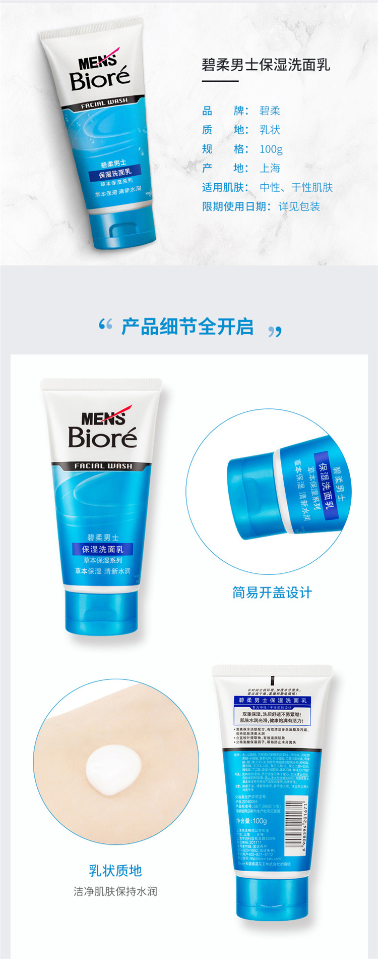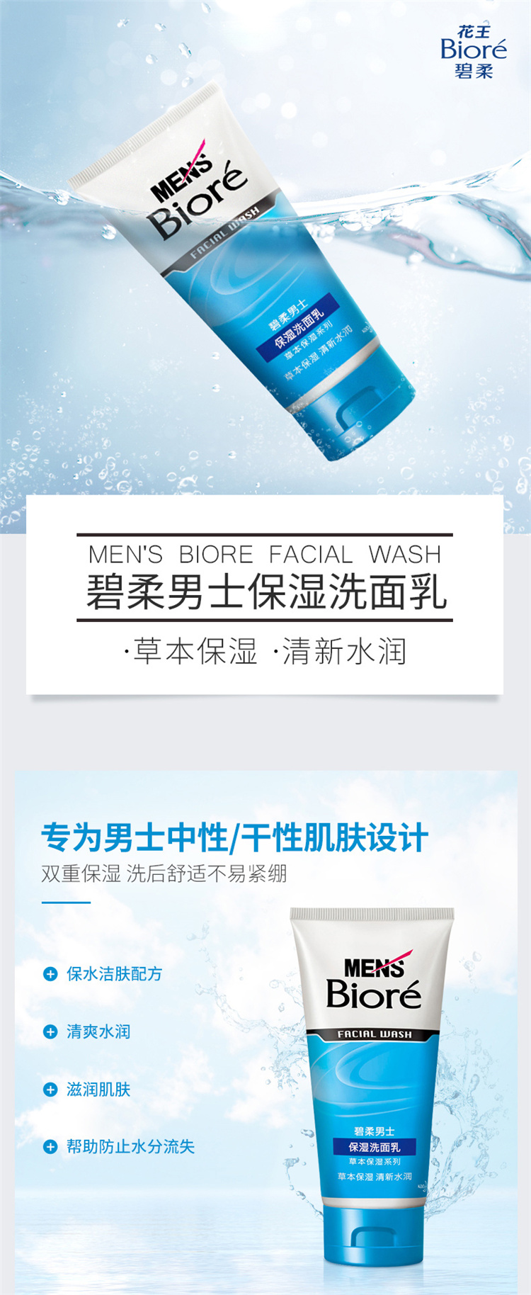 花王碧柔Biore男士保湿洗面乳两只装100g