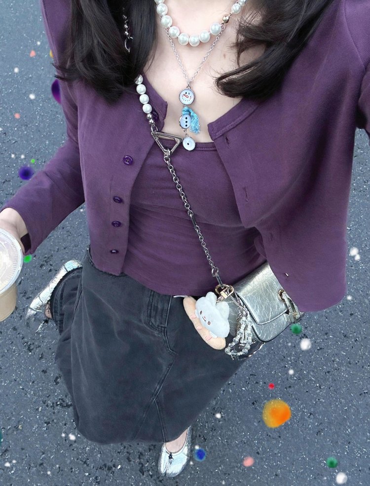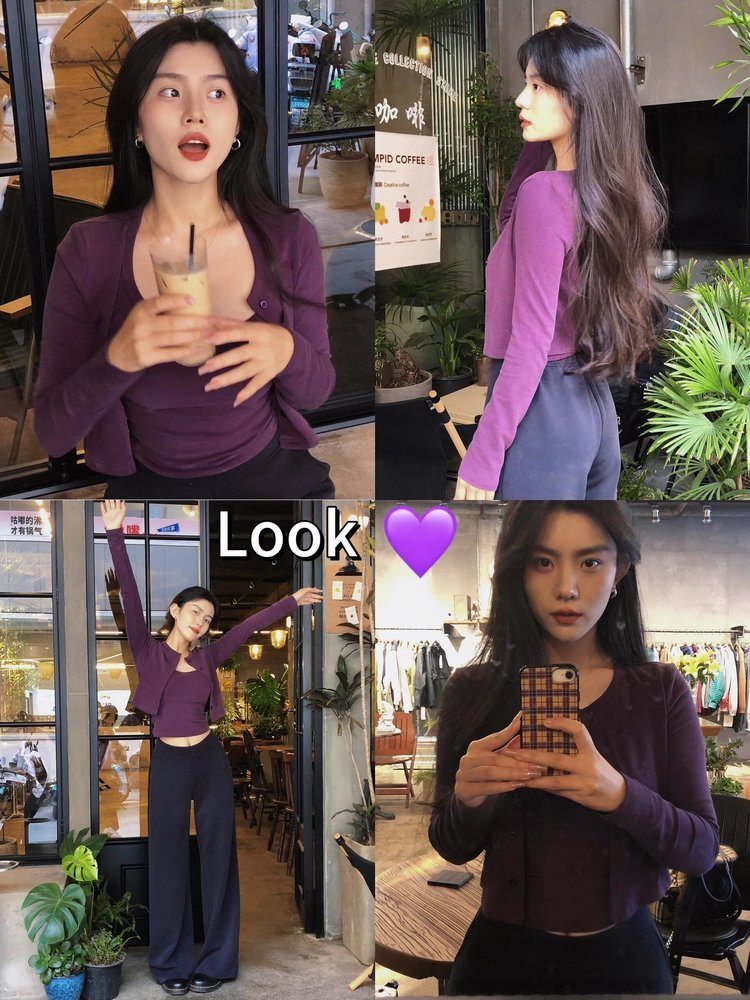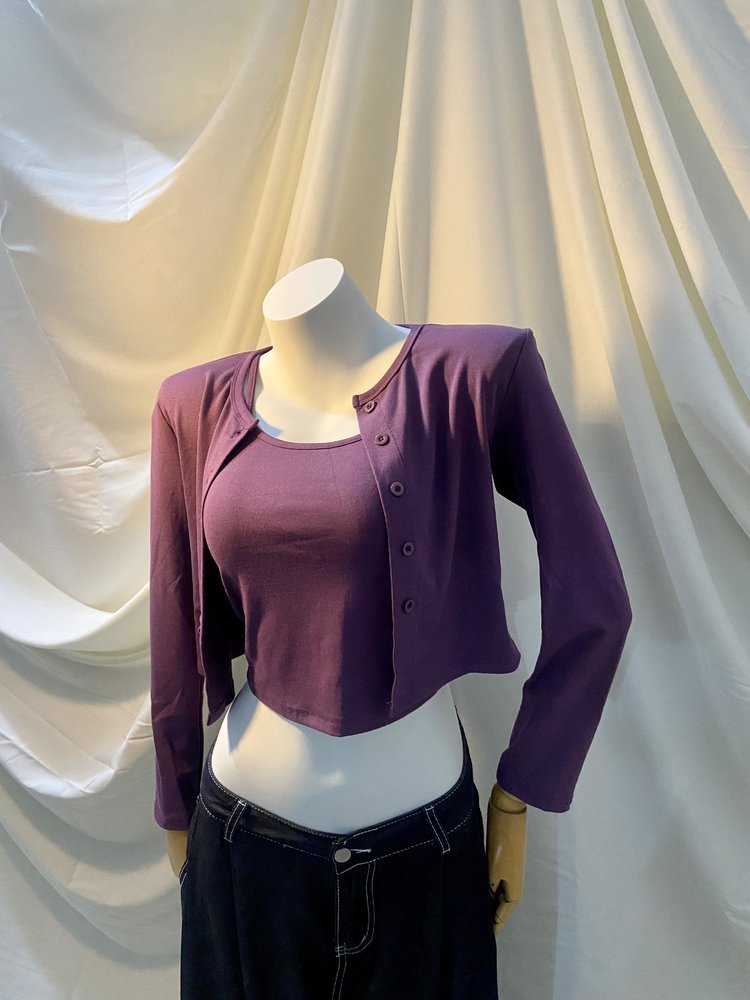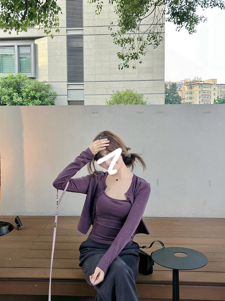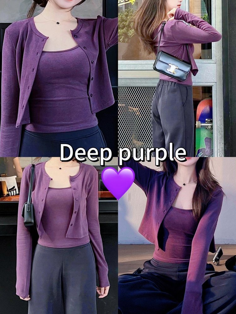 初秋新品【韩系辣妹短款吊带开衫两件套】吊带+开衫的组合 松弛感拉满! 饱和的葡萄紫 小吊带➕同色系小开衫 上身俏皮减龄又甜美~