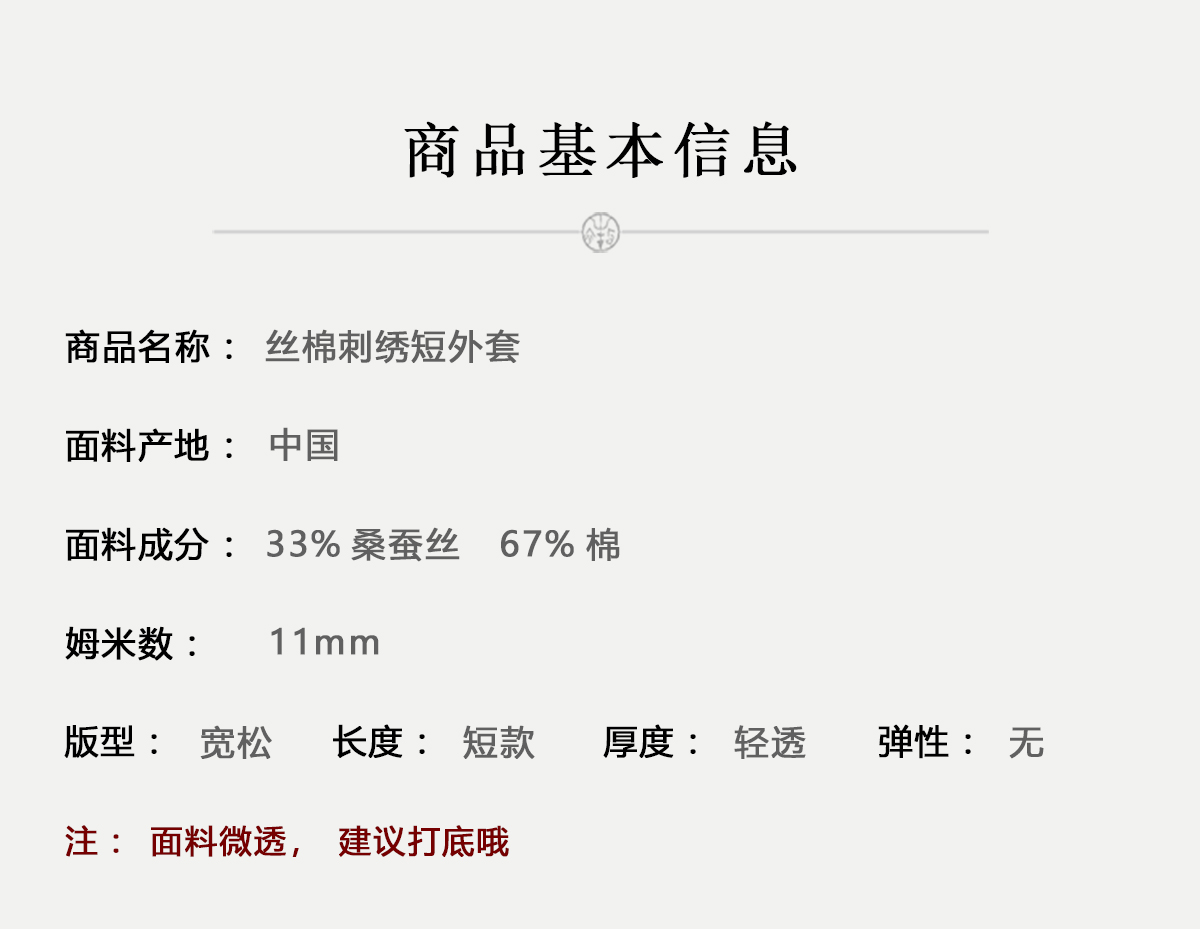 牧衣游原创 丝棉匹绣短外套轻薄复古文艺休闲百搭防晒开衫 栖芯