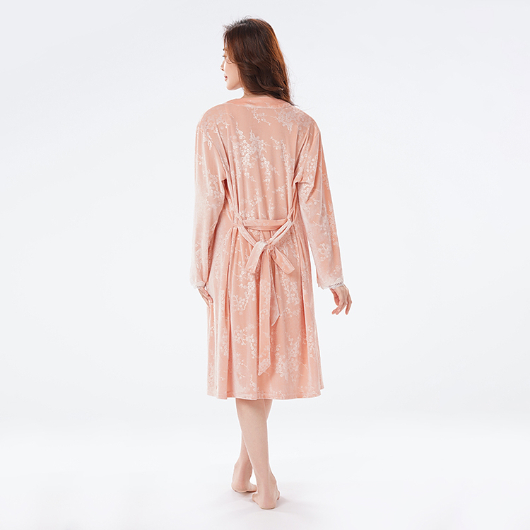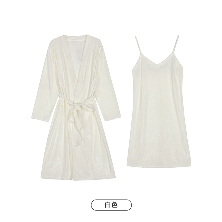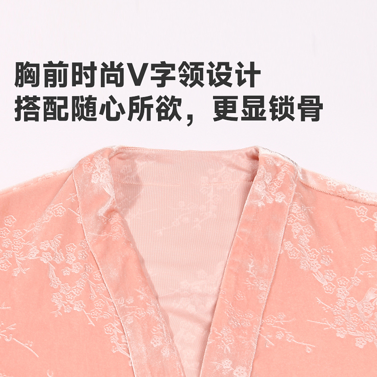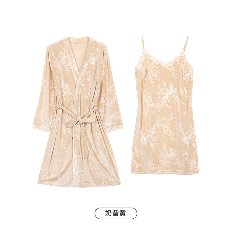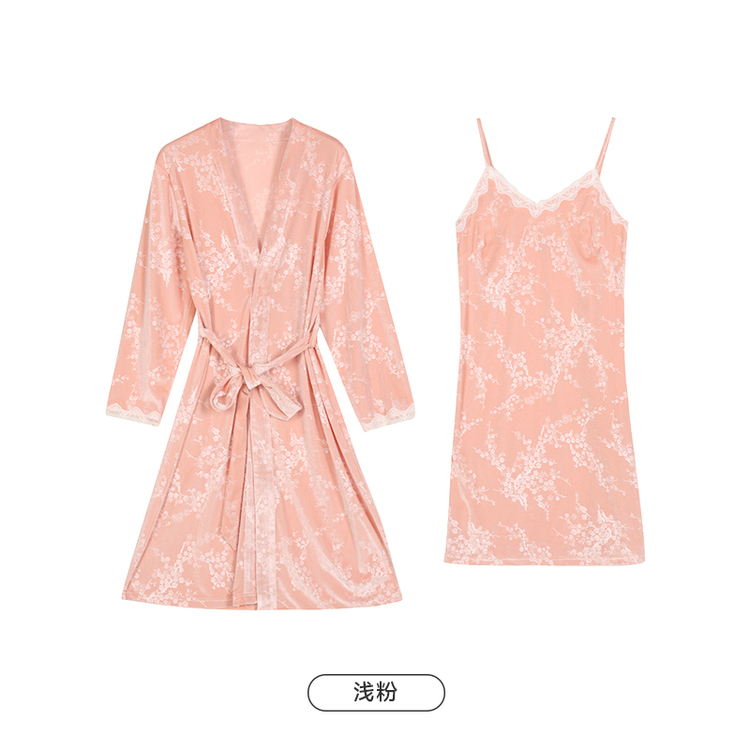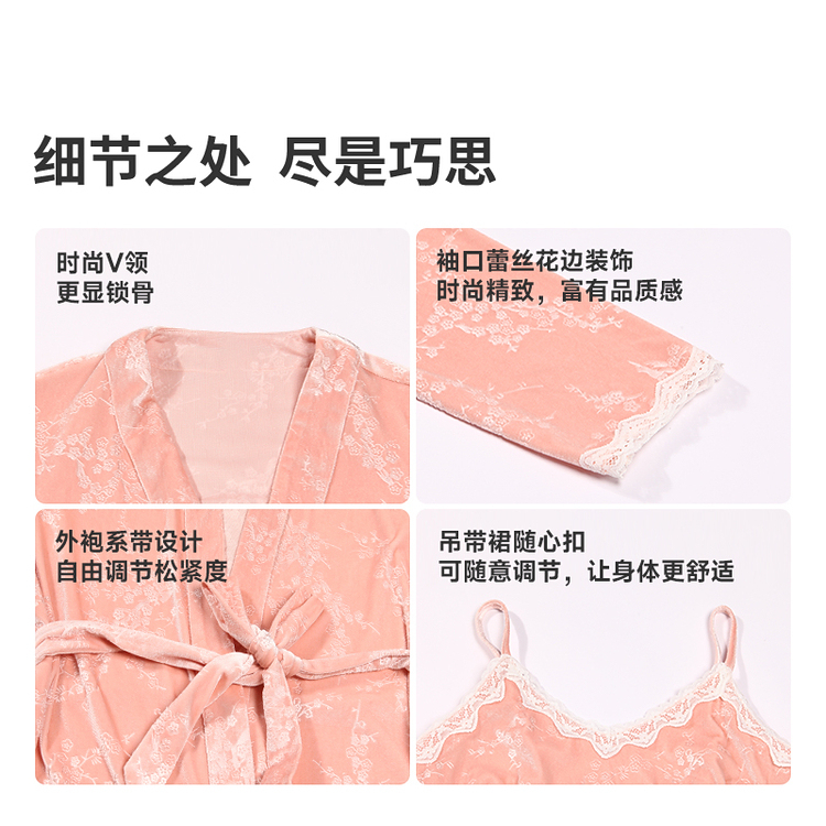 都市丽人睡衣丝绒压花睡衣女士家居服吊带裙外袍丝绒两件套LHH4A7