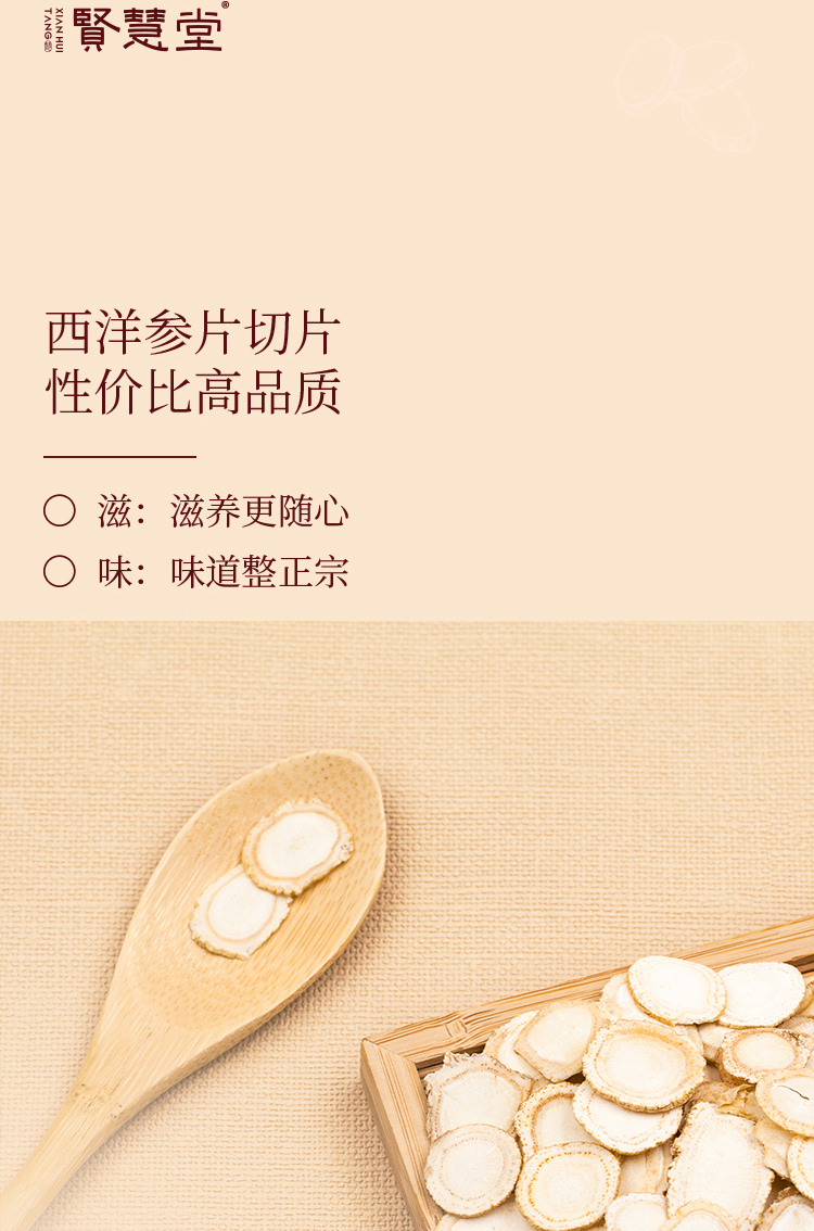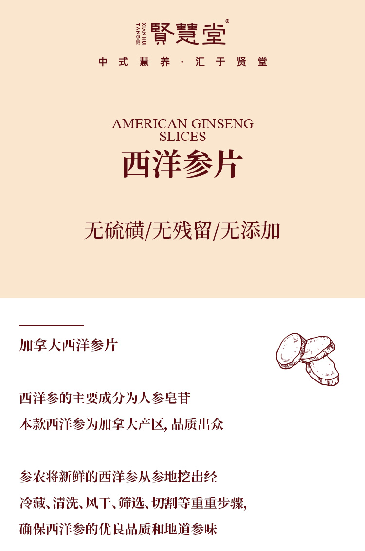 贤慧堂西洋参片盒装100g 滋补特级切片泡水中式养生