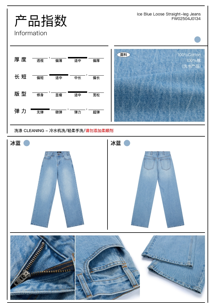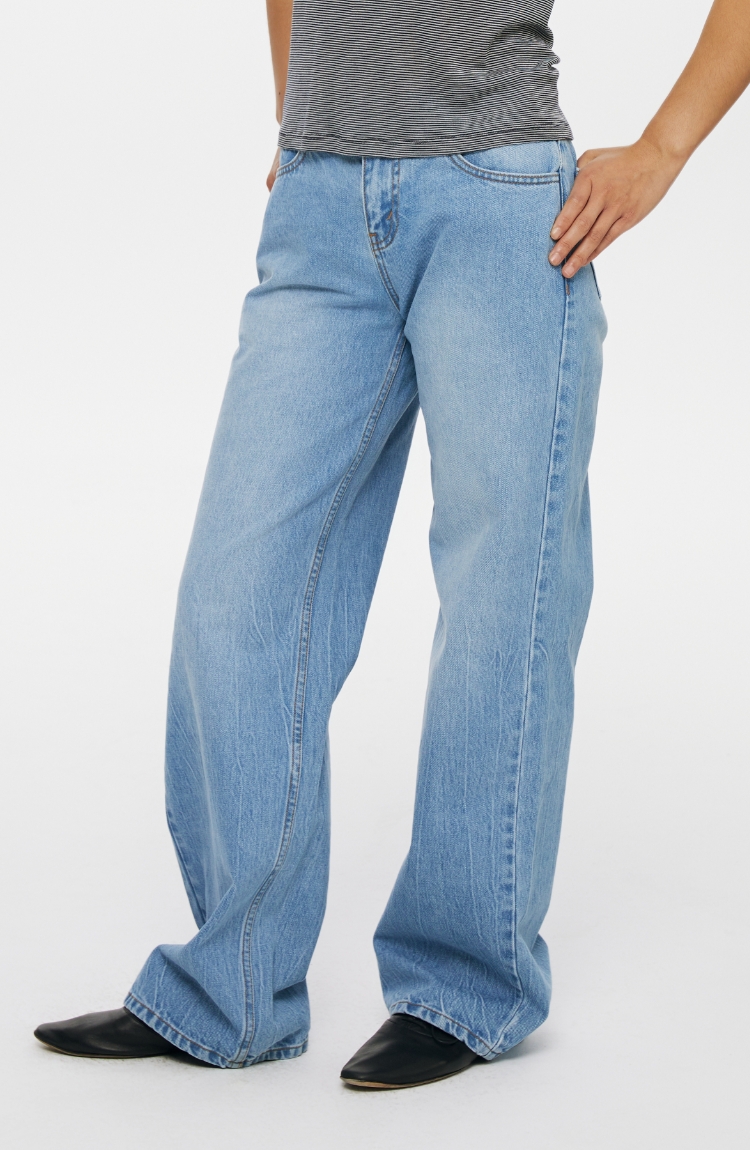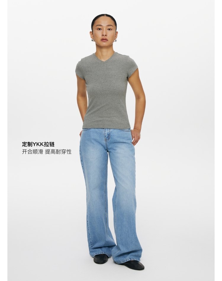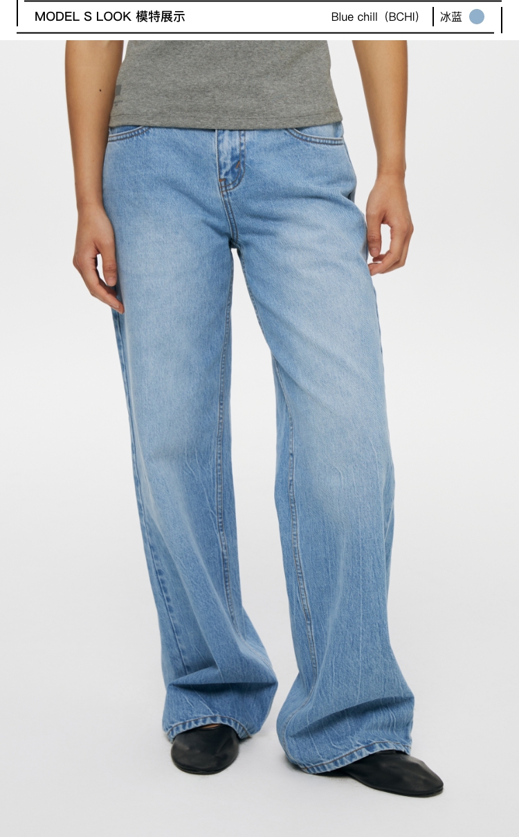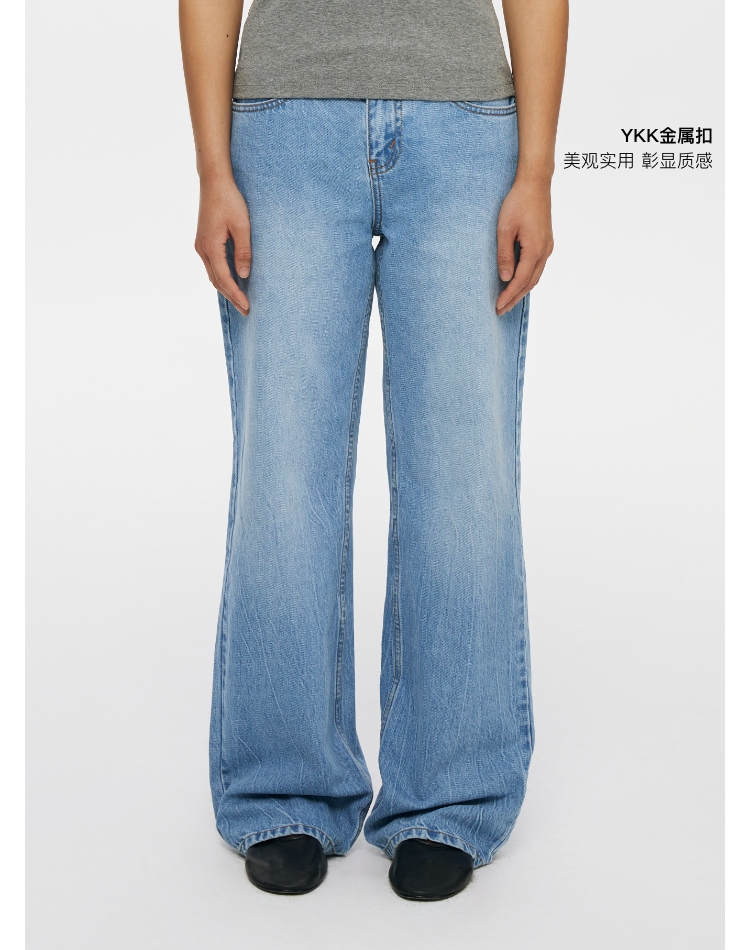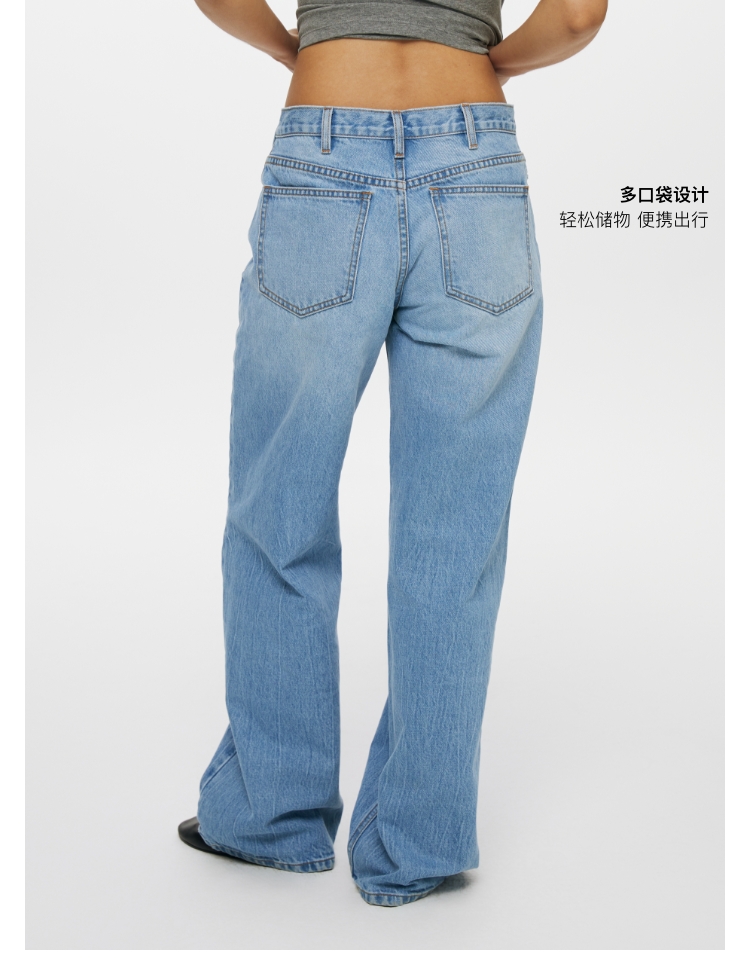 oneup冰蓝宽松直筒牛仔裤