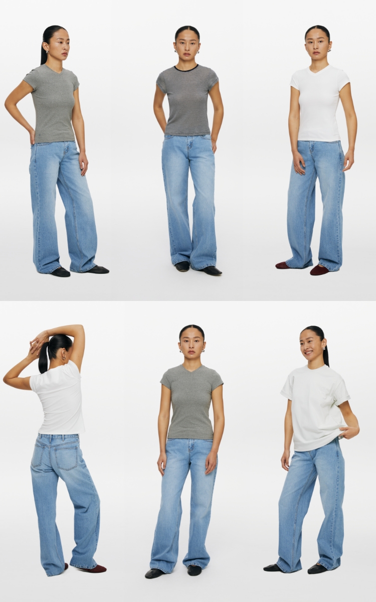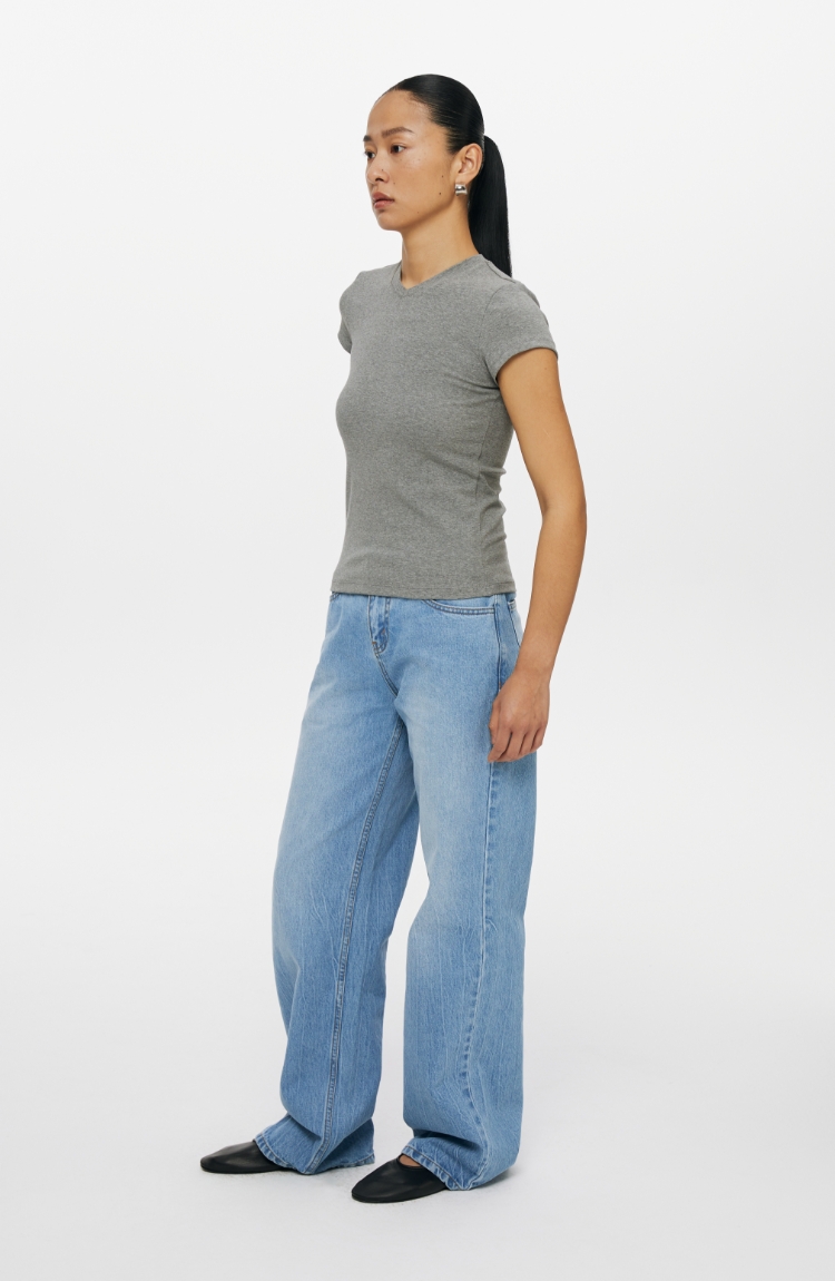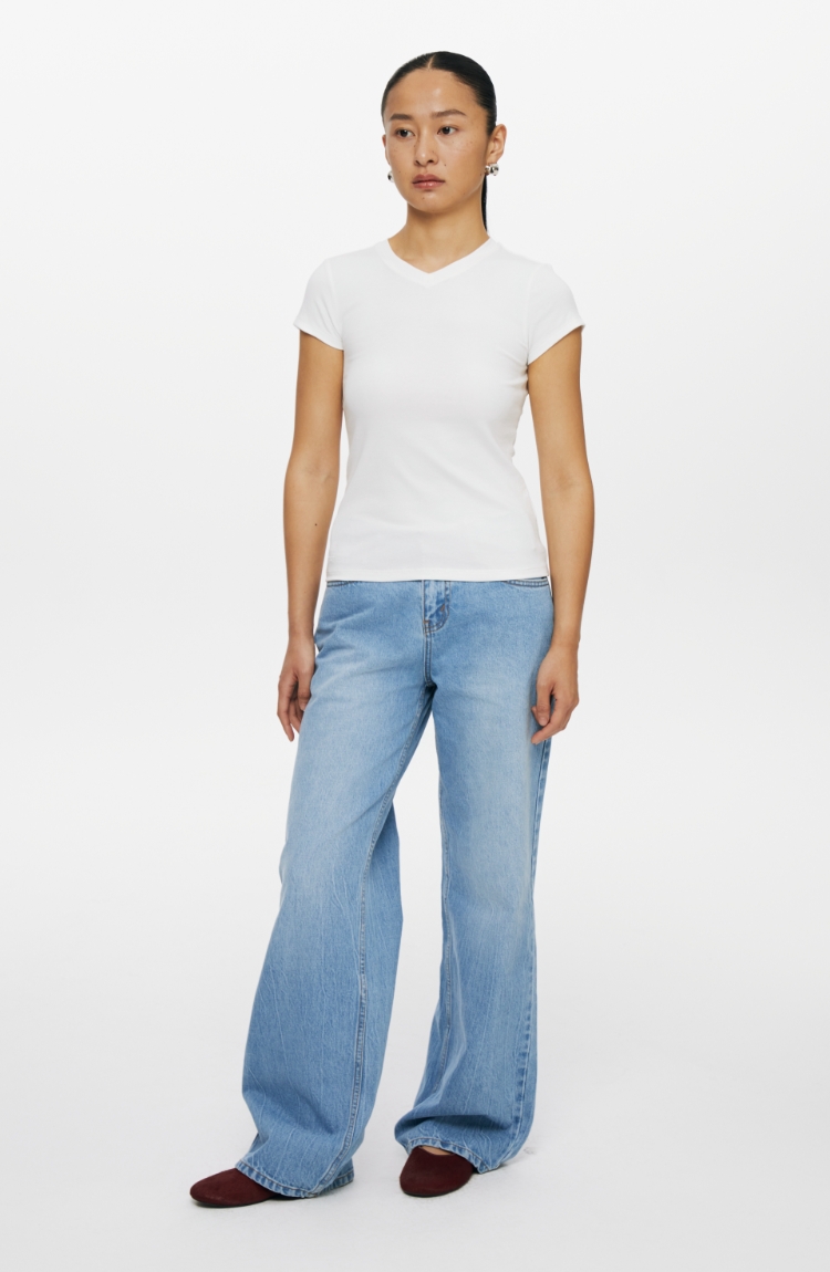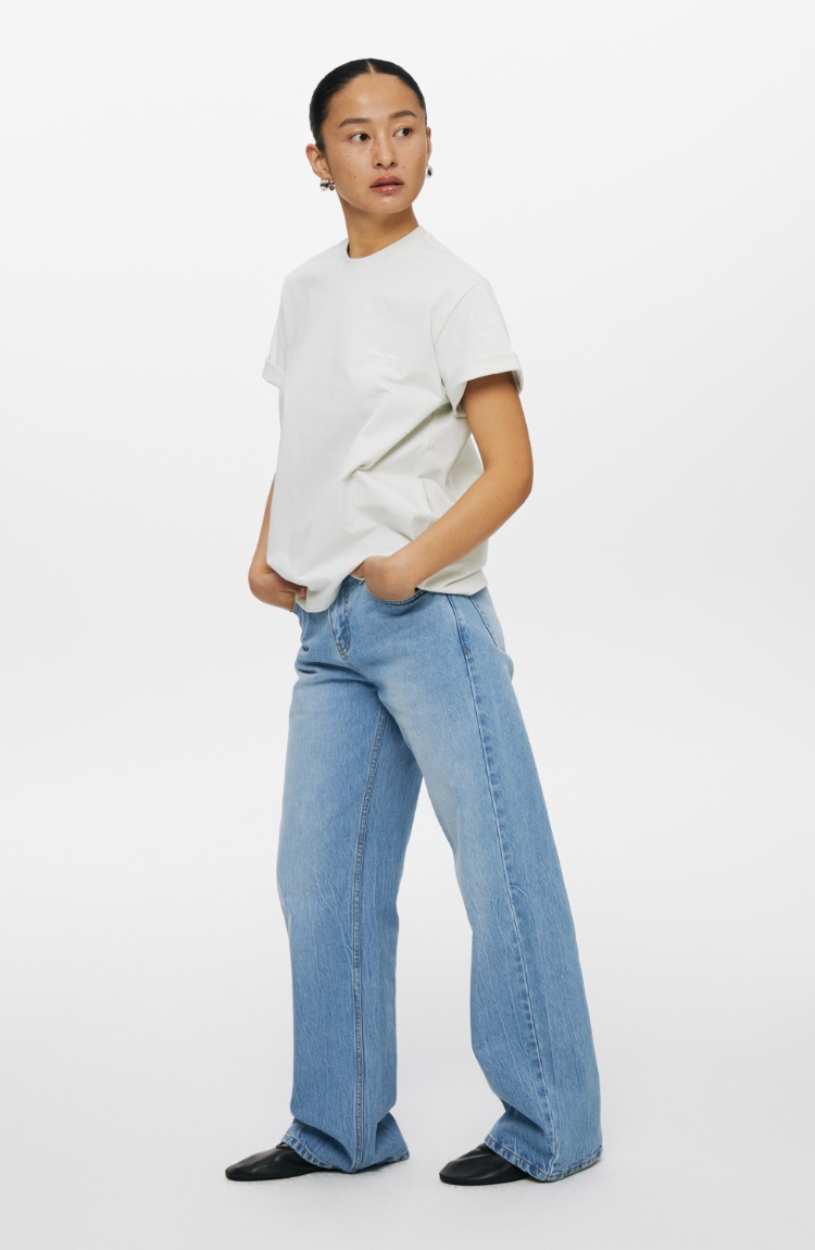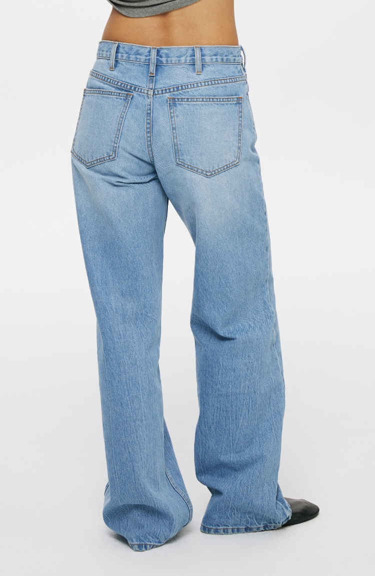 oneup冰蓝宽松直筒牛仔裤