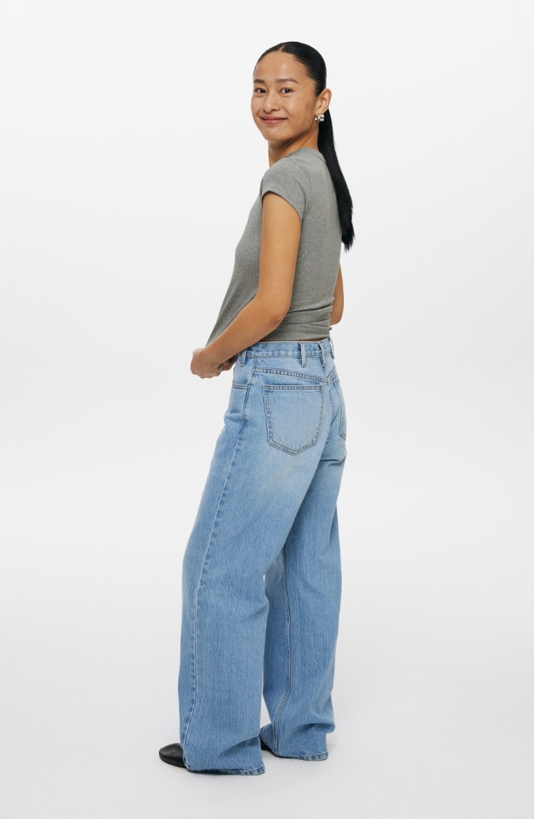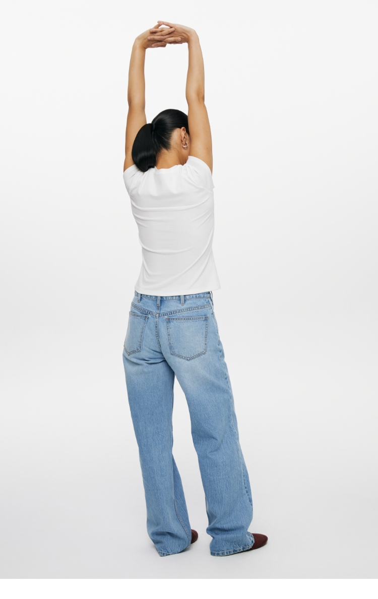复古水洗蓝高腰直筒牛仔裤