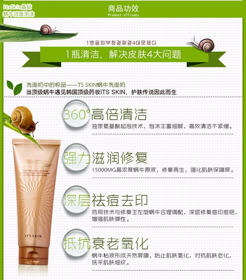 It s skin伊思 蜗牛洗面奶 150ml 韩国