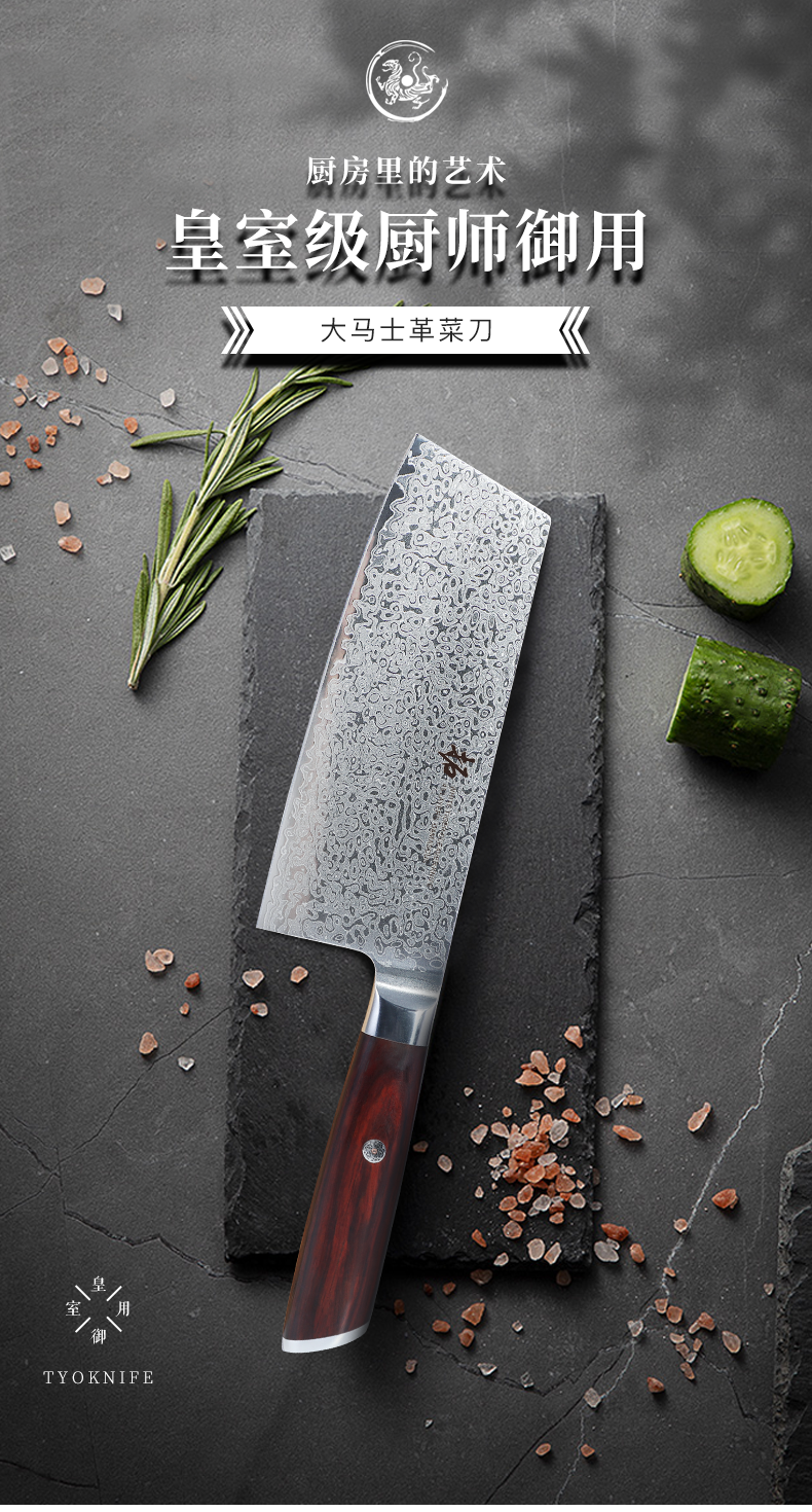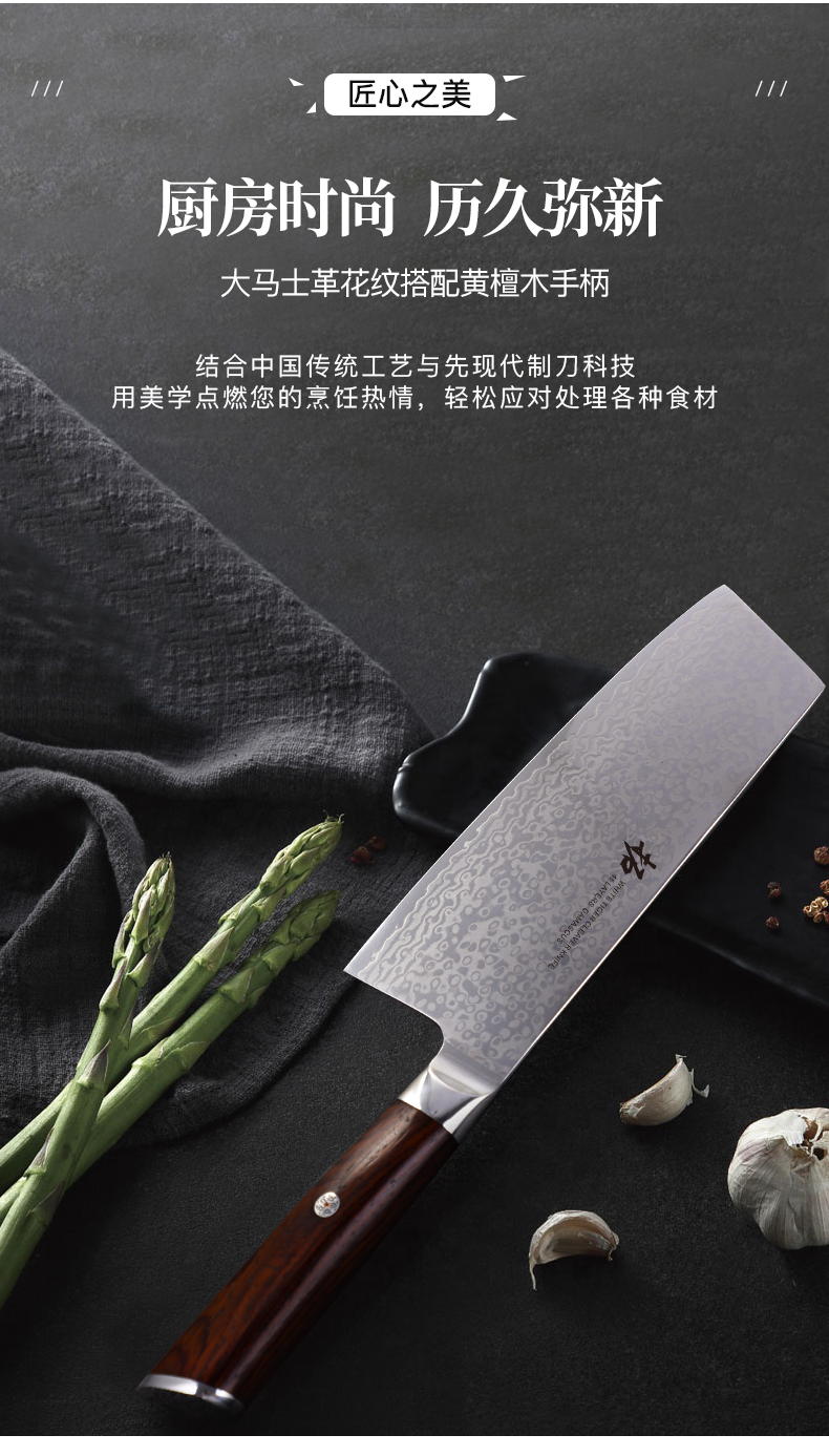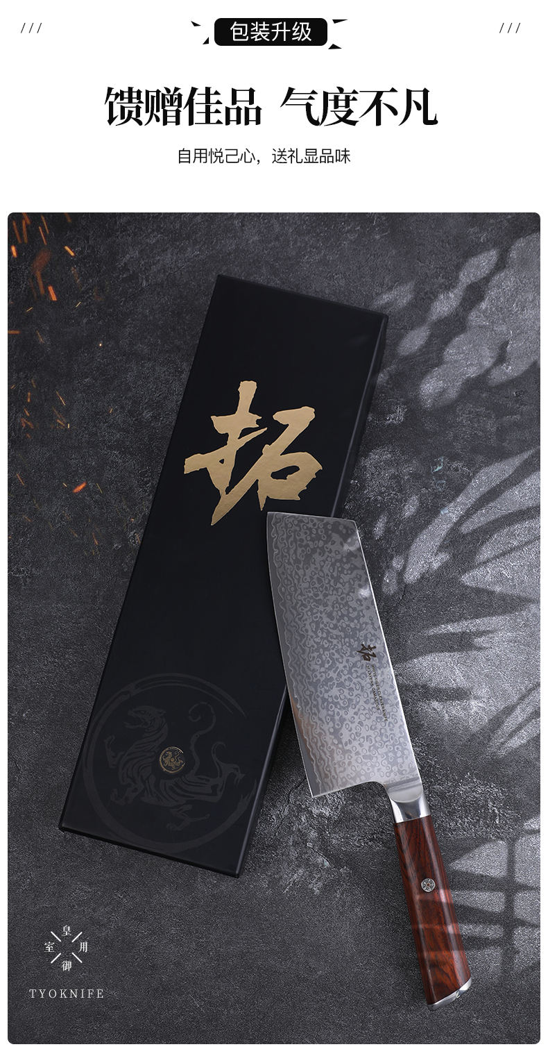 拓 颂系列菜刀日本进口大马士革钢厨刀中式切菜切肉刀花纹钢