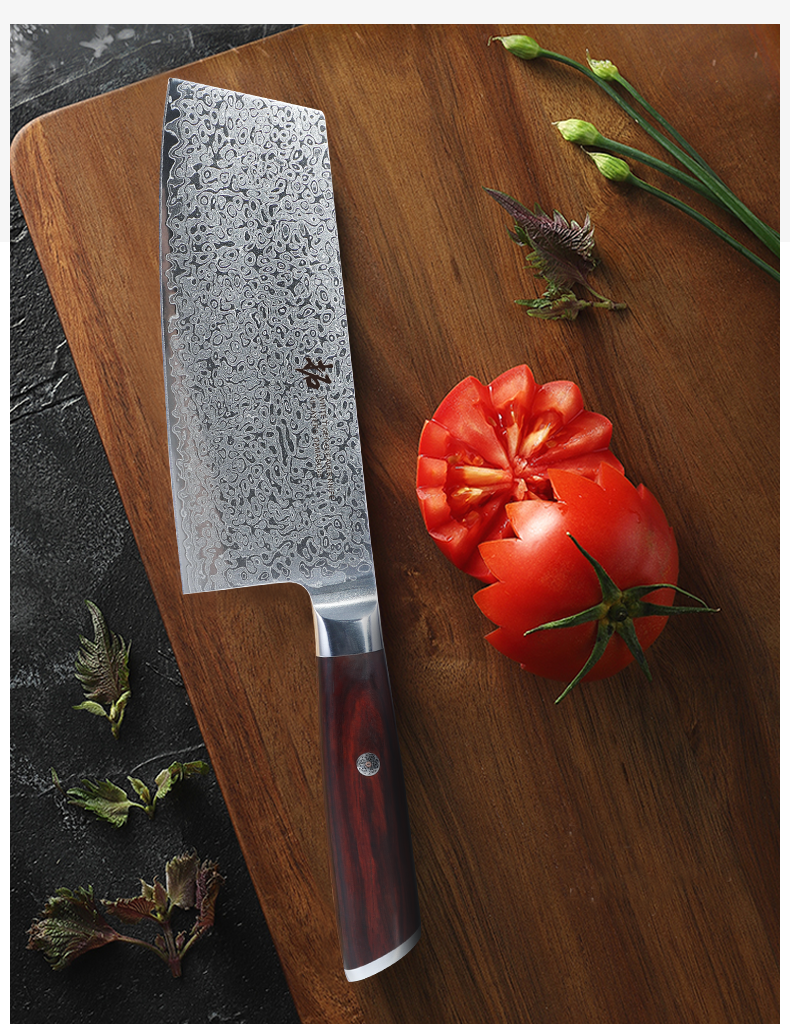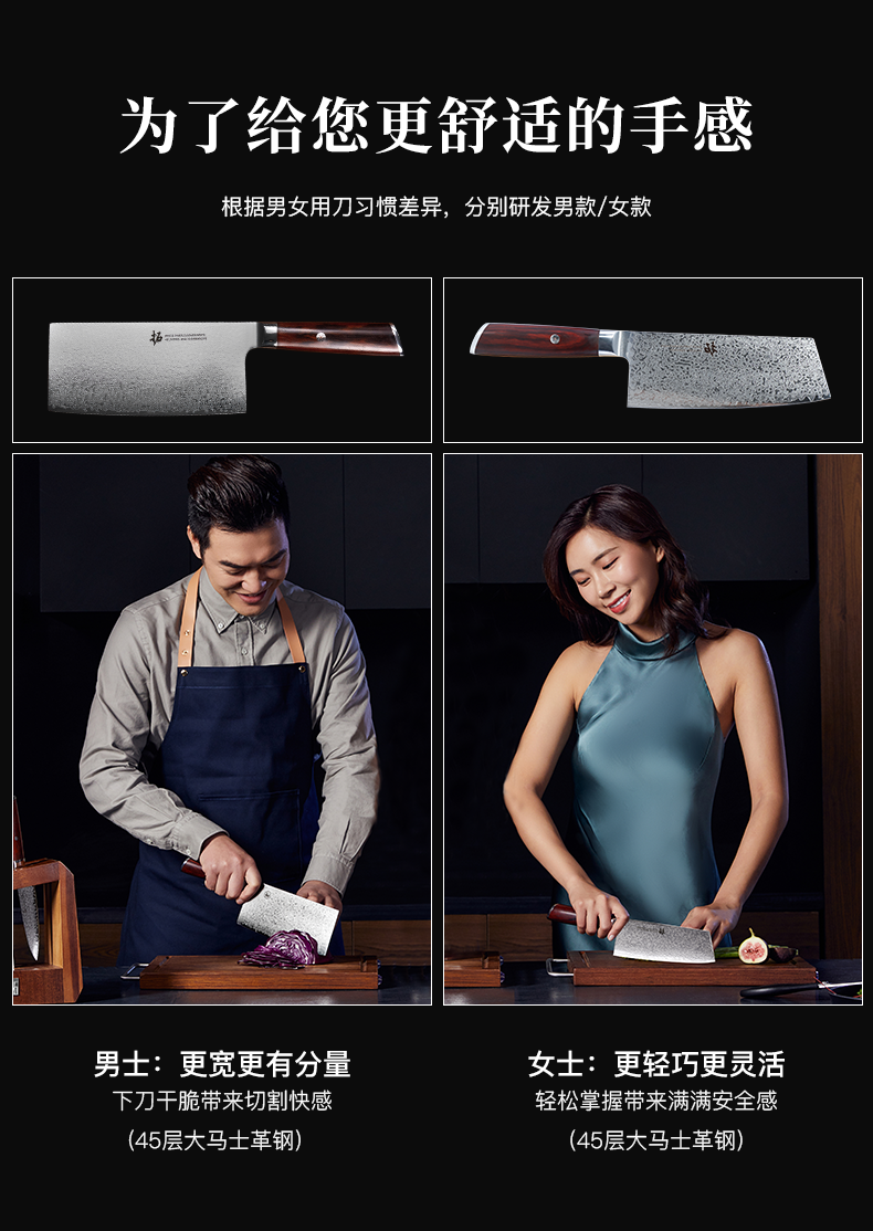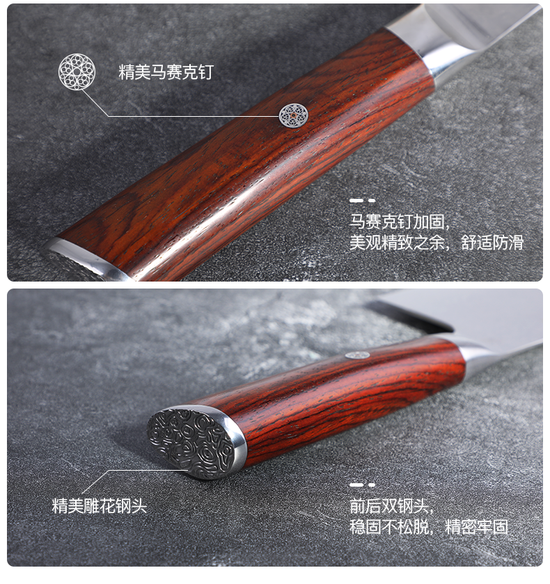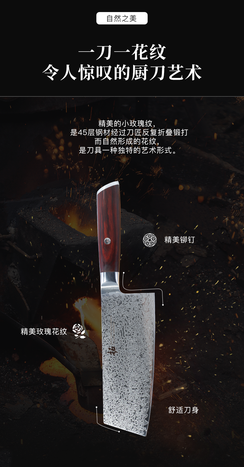 拓 颂系列菜刀日本进口大马士革钢厨刀中式切菜切肉刀花纹钢