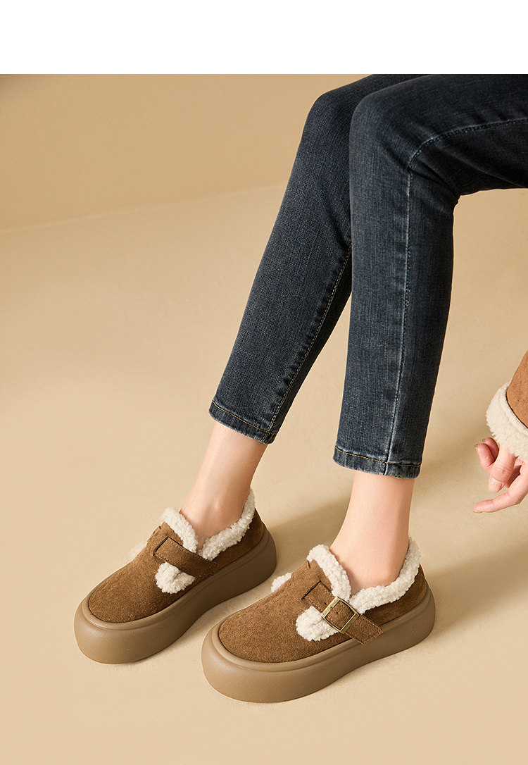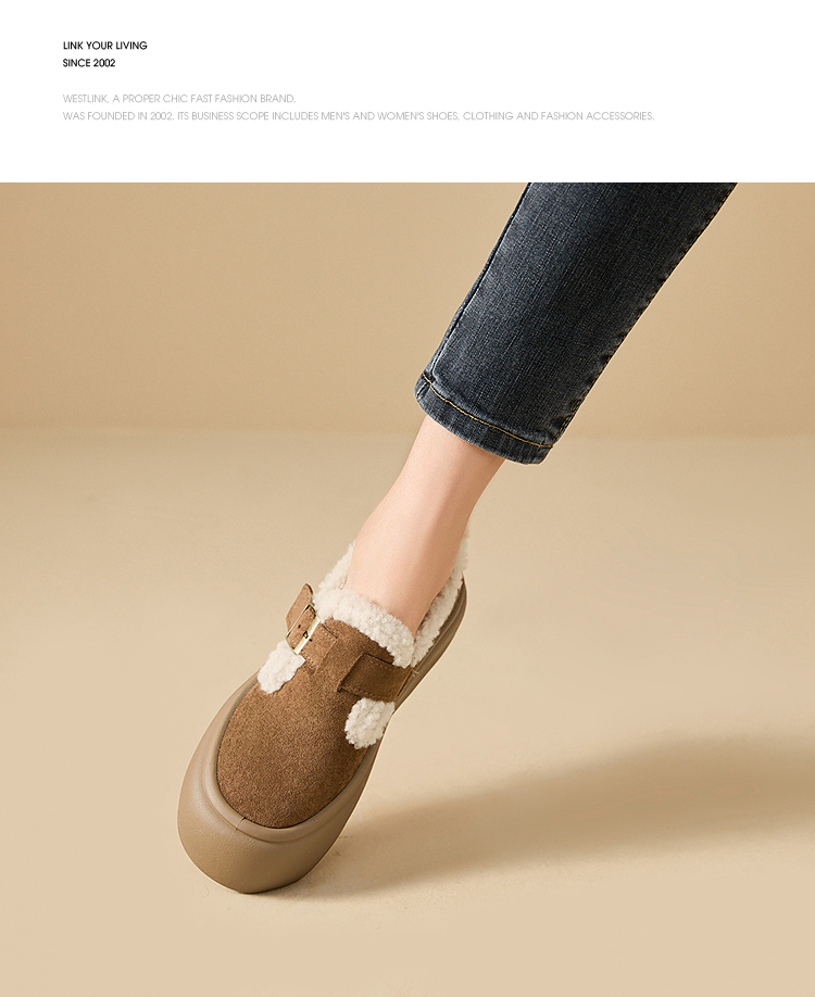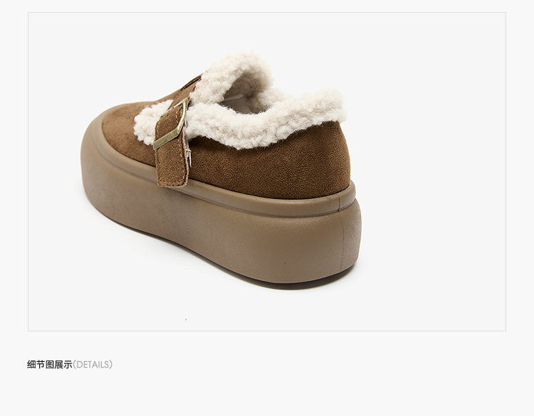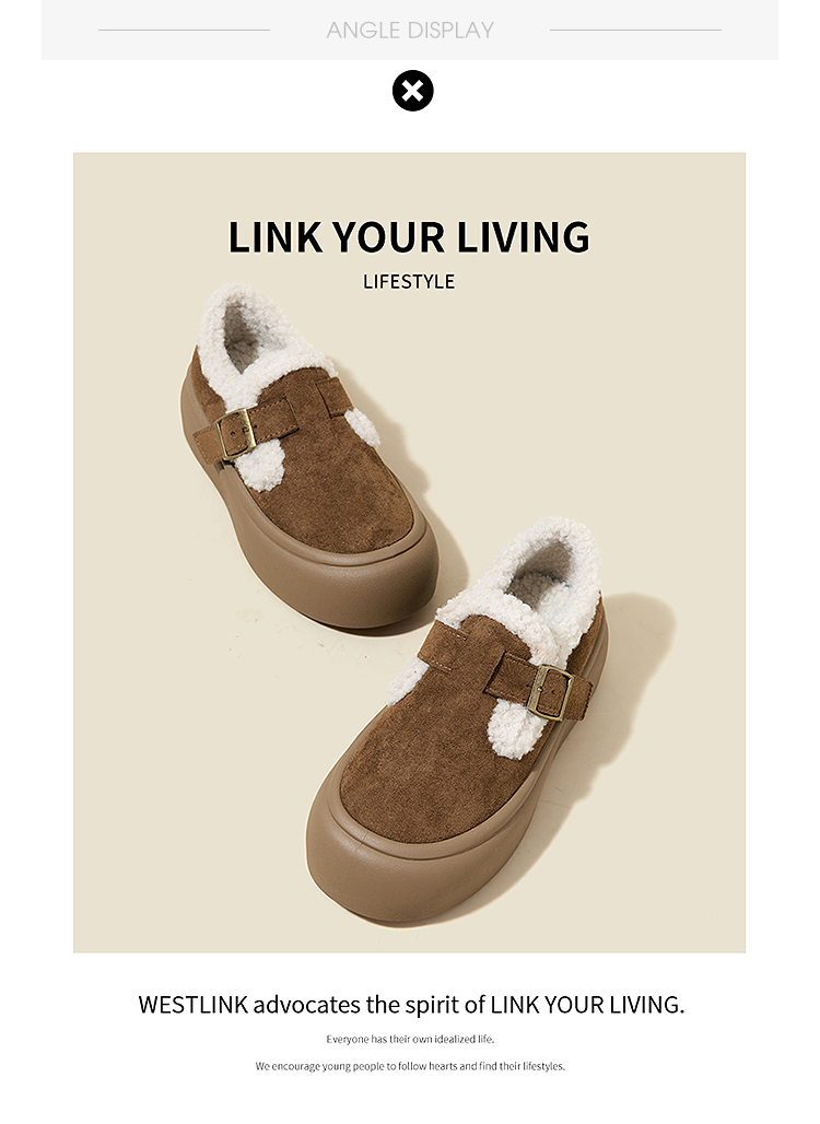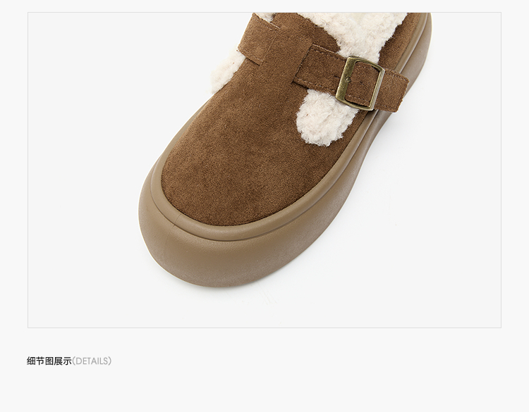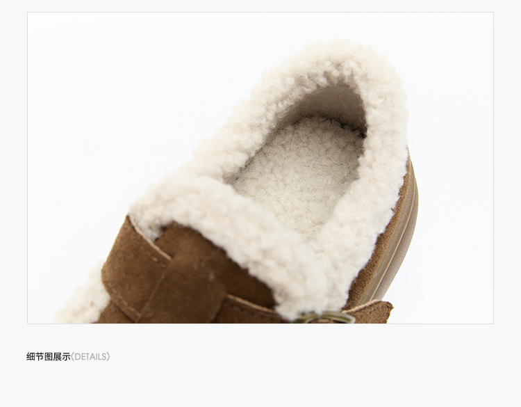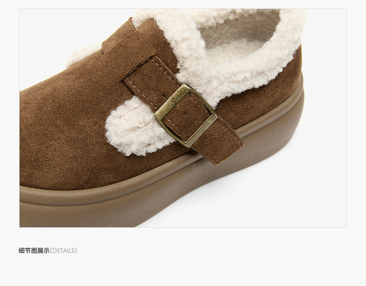 西遇厚底勃肯鞋女加绒冬季新款一脚蹬毛毛雪地靴东北保暖棉鞋V0047909