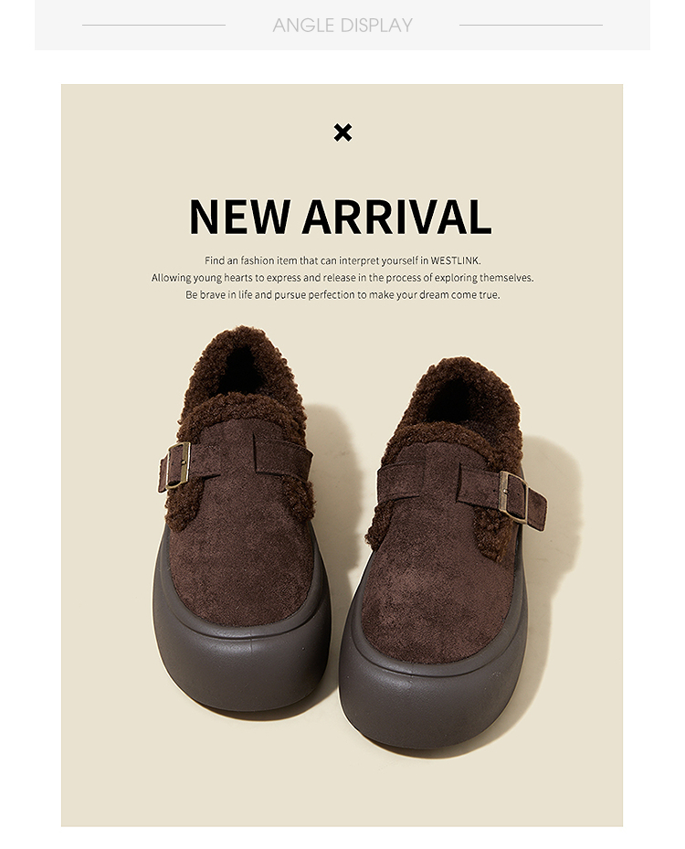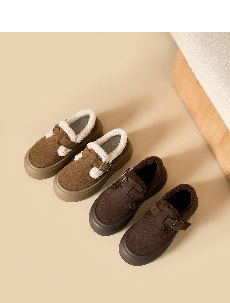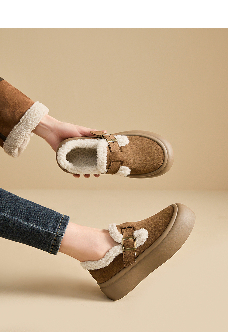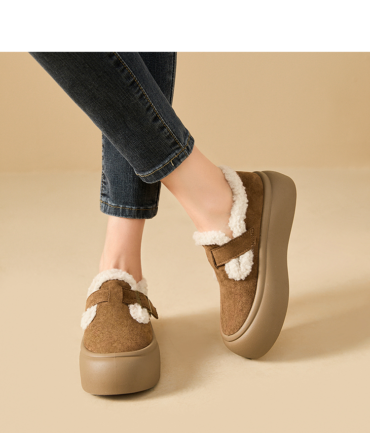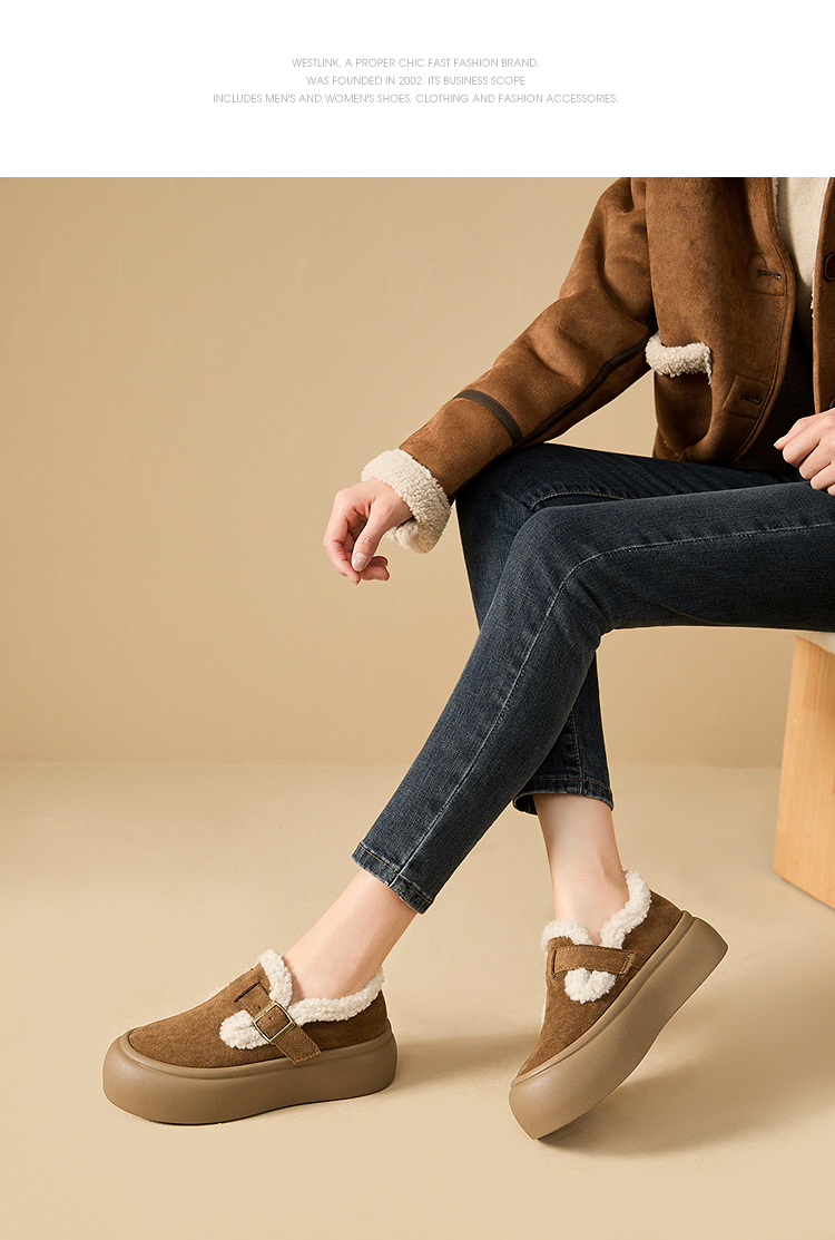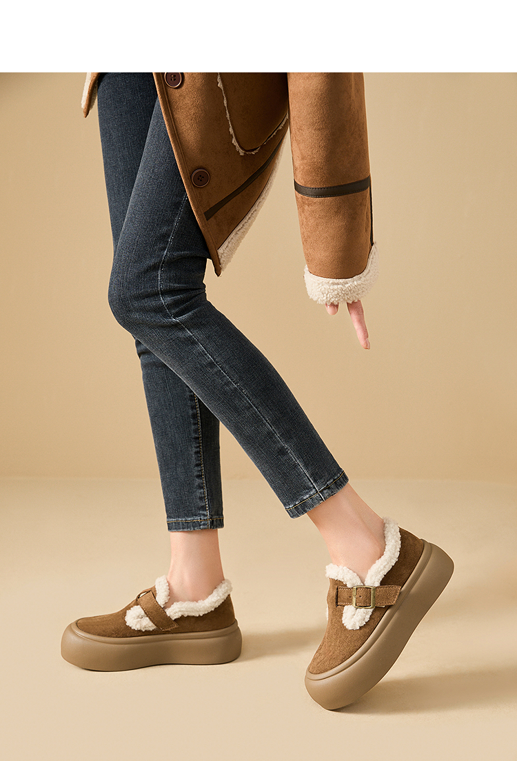 西遇厚底勃肯鞋女加绒冬季新款一脚蹬毛毛雪地靴东北保暖棉鞋V0047909