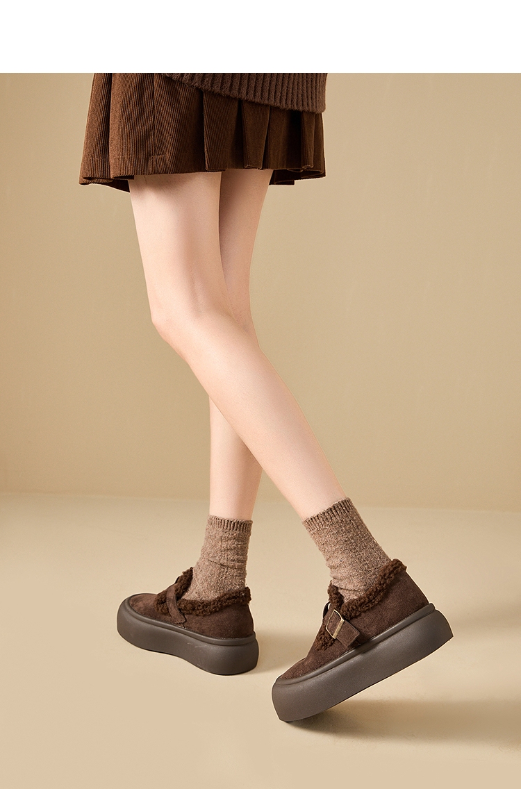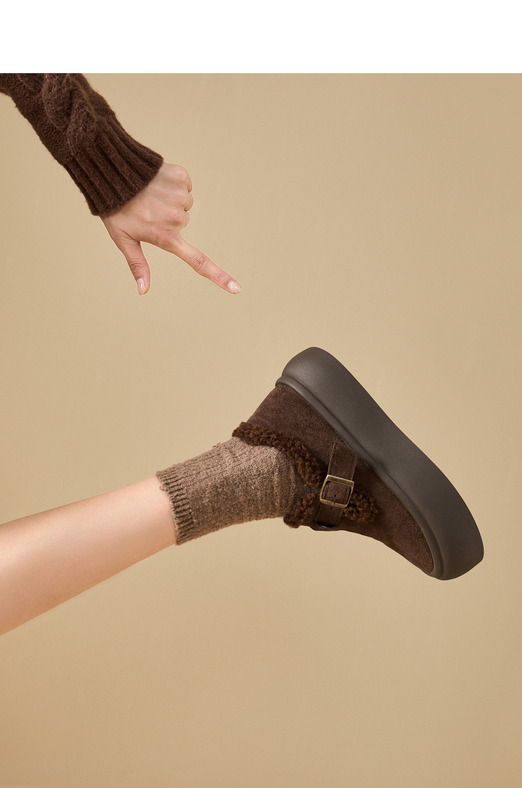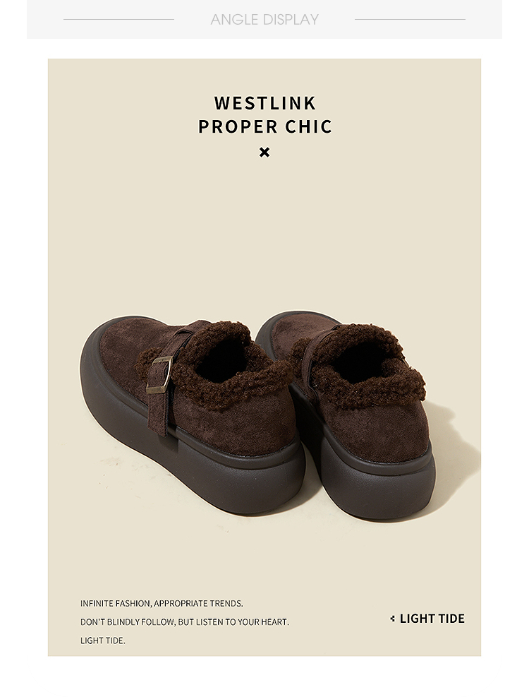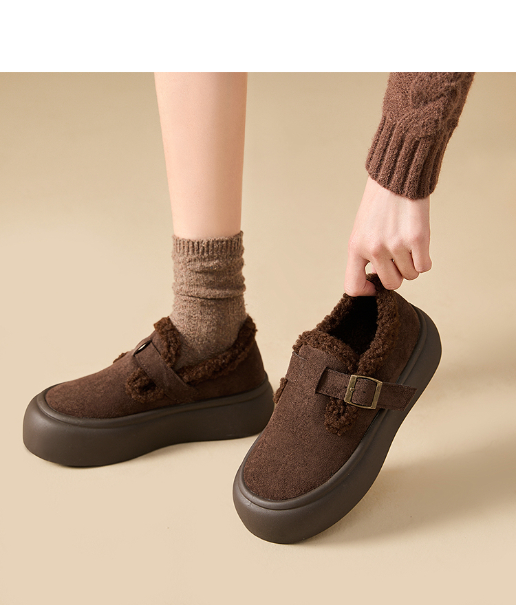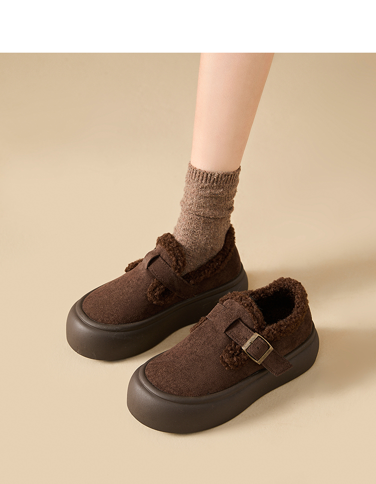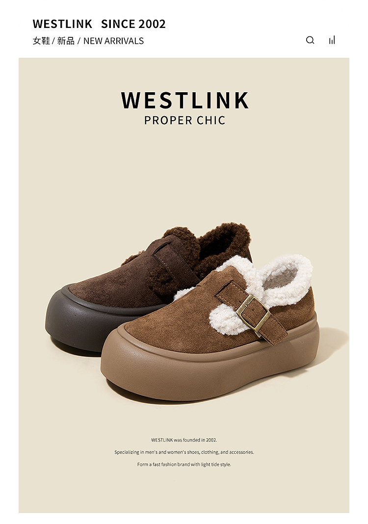 西遇厚底勃肯鞋女加绒冬季新款一脚蹬毛毛雪地靴东北保暖棉鞋V0047909