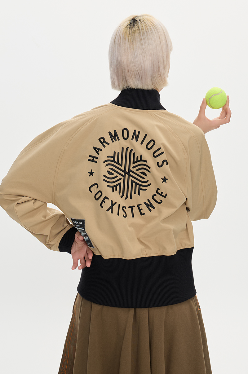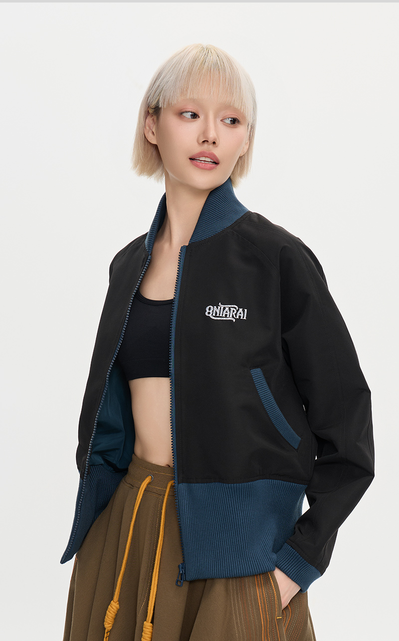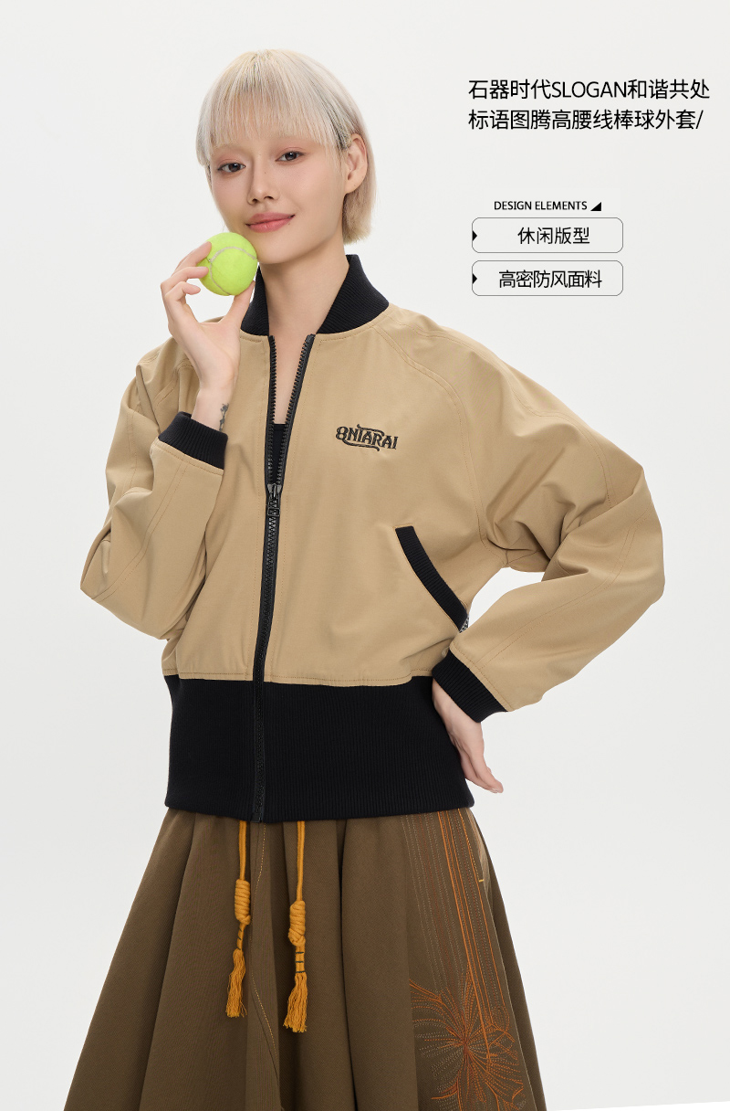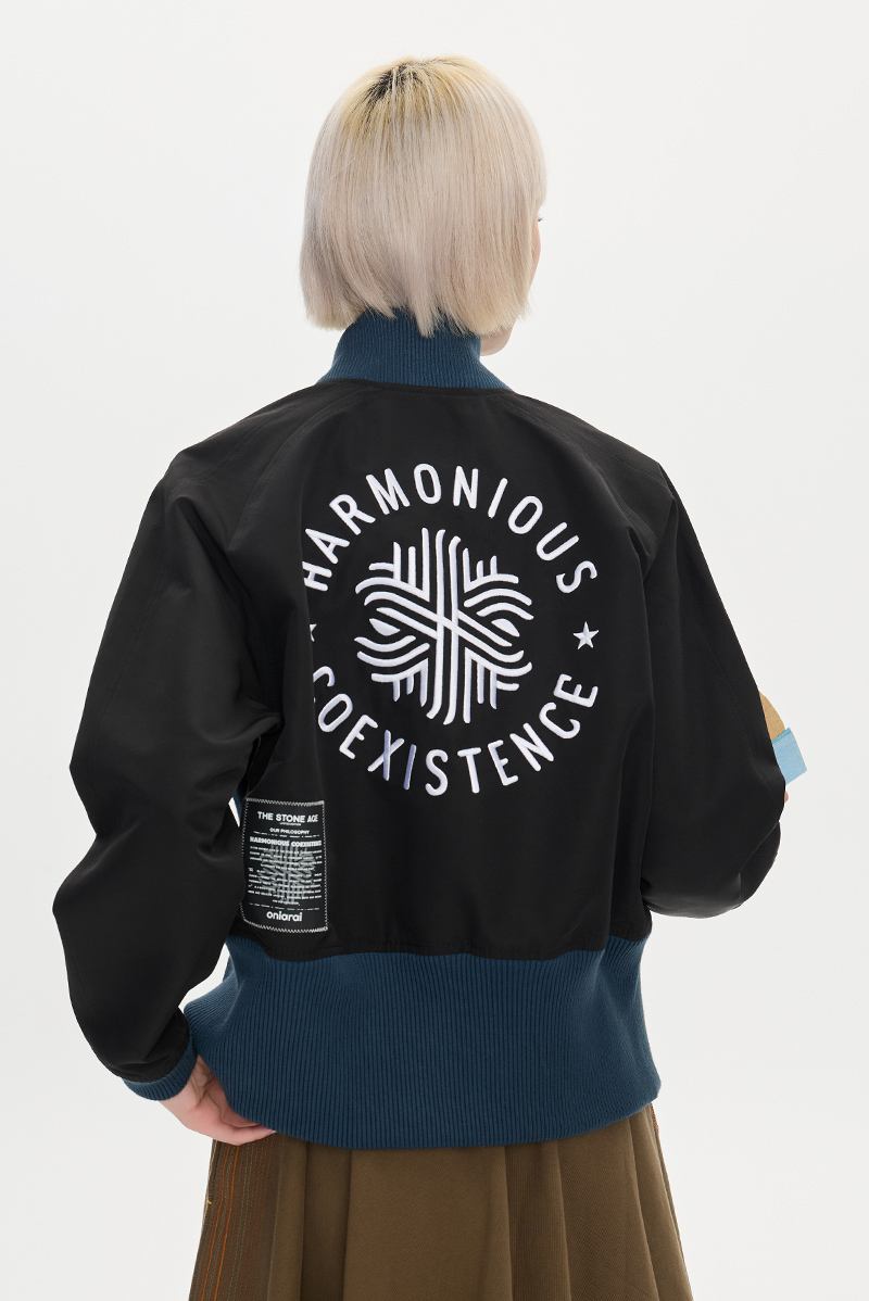 ONIARAI/鬼洗25秋季黑标和谐共处标语图腾高腰棒球外套女 A340015