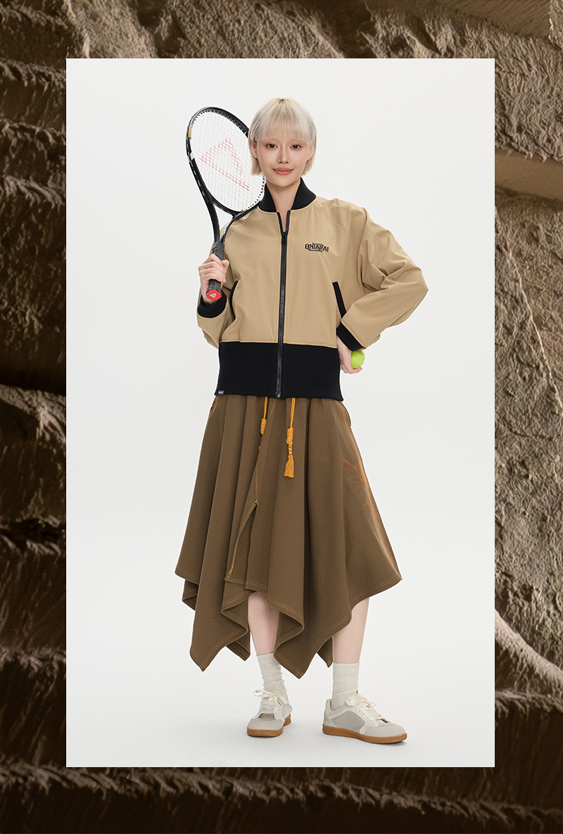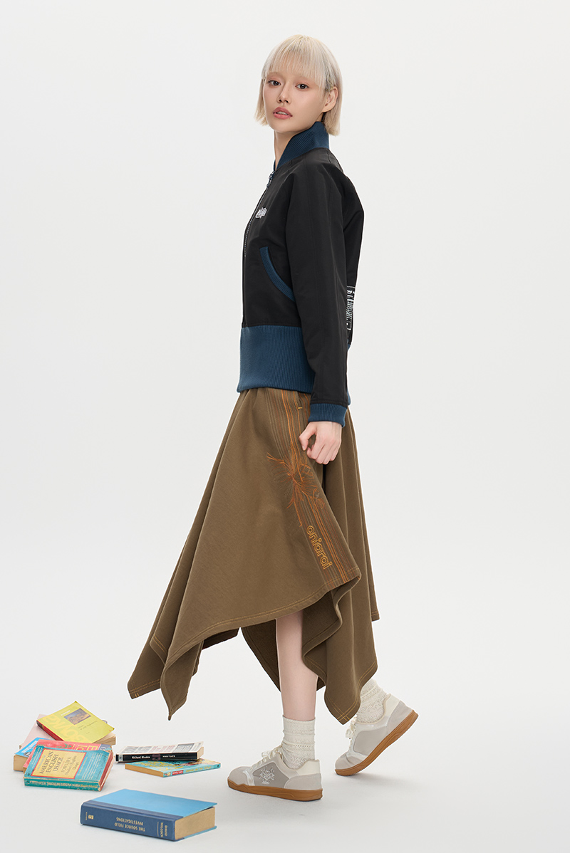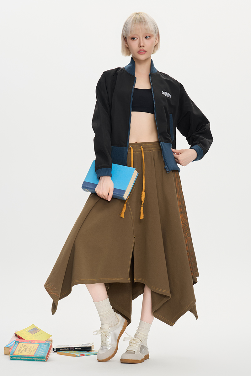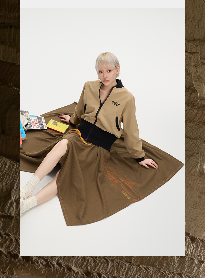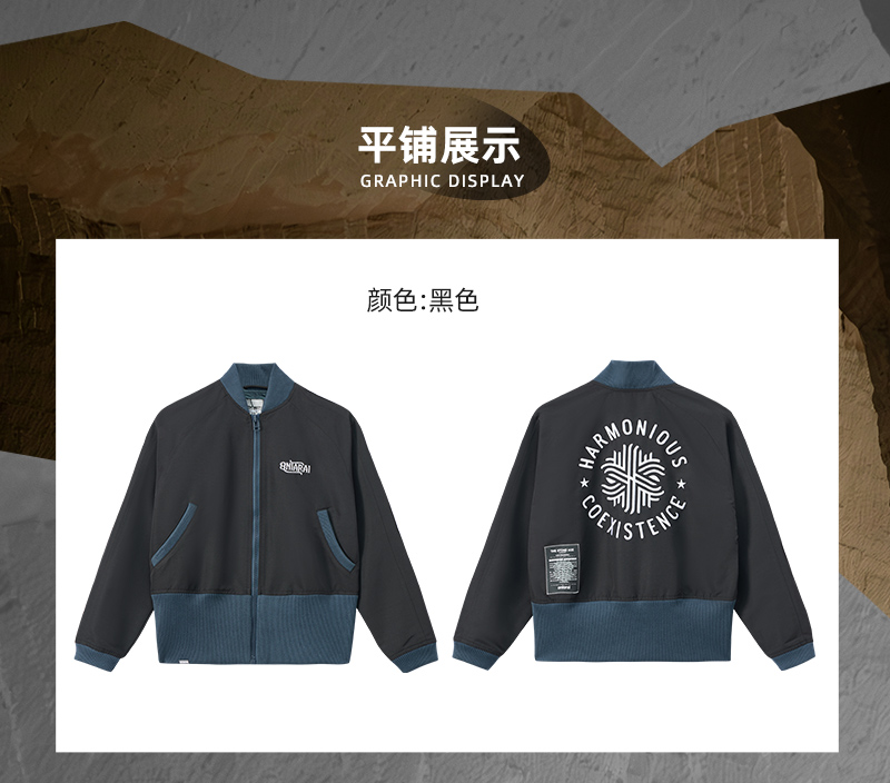 ONIARAI/鬼洗25秋季黑标和谐共处标语图腾高腰棒球外套女 A340015