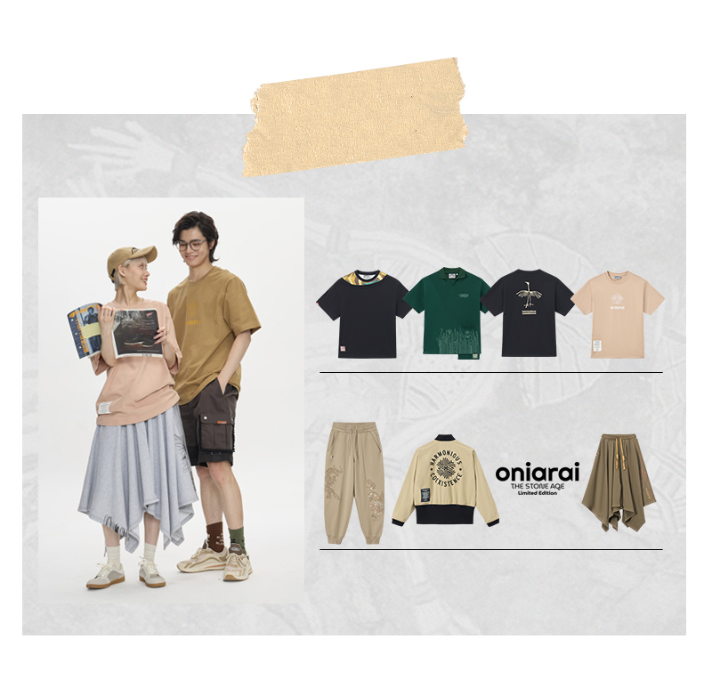 - ONIARAI品牌以鬼洗、地藏小王、日本蓝三个系列组成,鬼洗拥有独特的品牌文化图腾、夸张的图案设计、个性化的搭配,表达出潮人自我格调,制造话题、创造独特个性与生活态度。