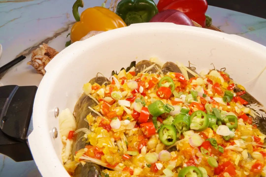 浸泡在红油中的黄骨鱼色泽诱人~