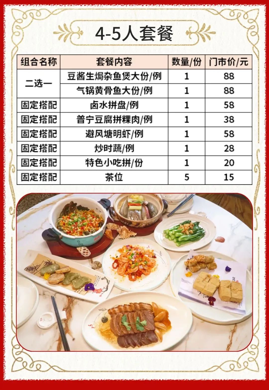 ◆ 套餐包含菜品需1次消费完毕,不可拆分不同日期享用,部分菜品若因时令或其他不可抗因素导致无法提供,将视实际情况以等价菜品替换