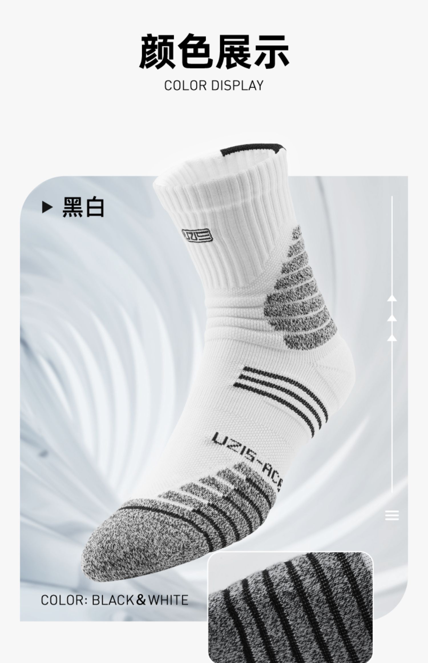 ACE综合级 UZIS篮球袜男中筒防滑专业精英袜长筒专业毛巾底运动袜【光标中筒】
