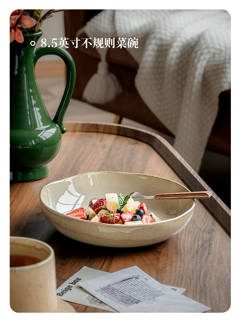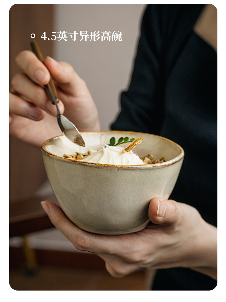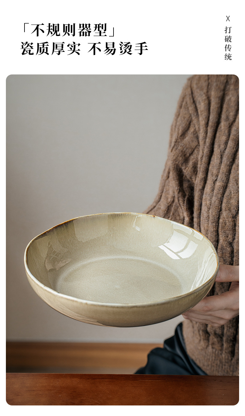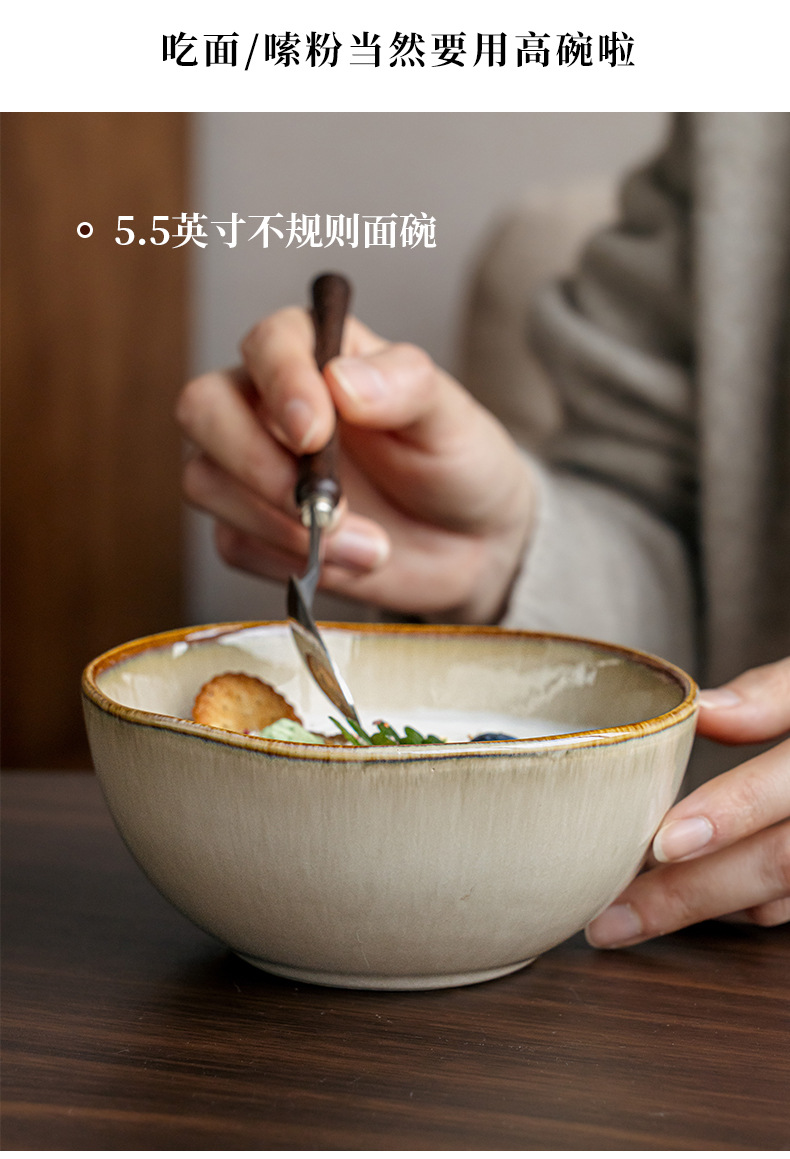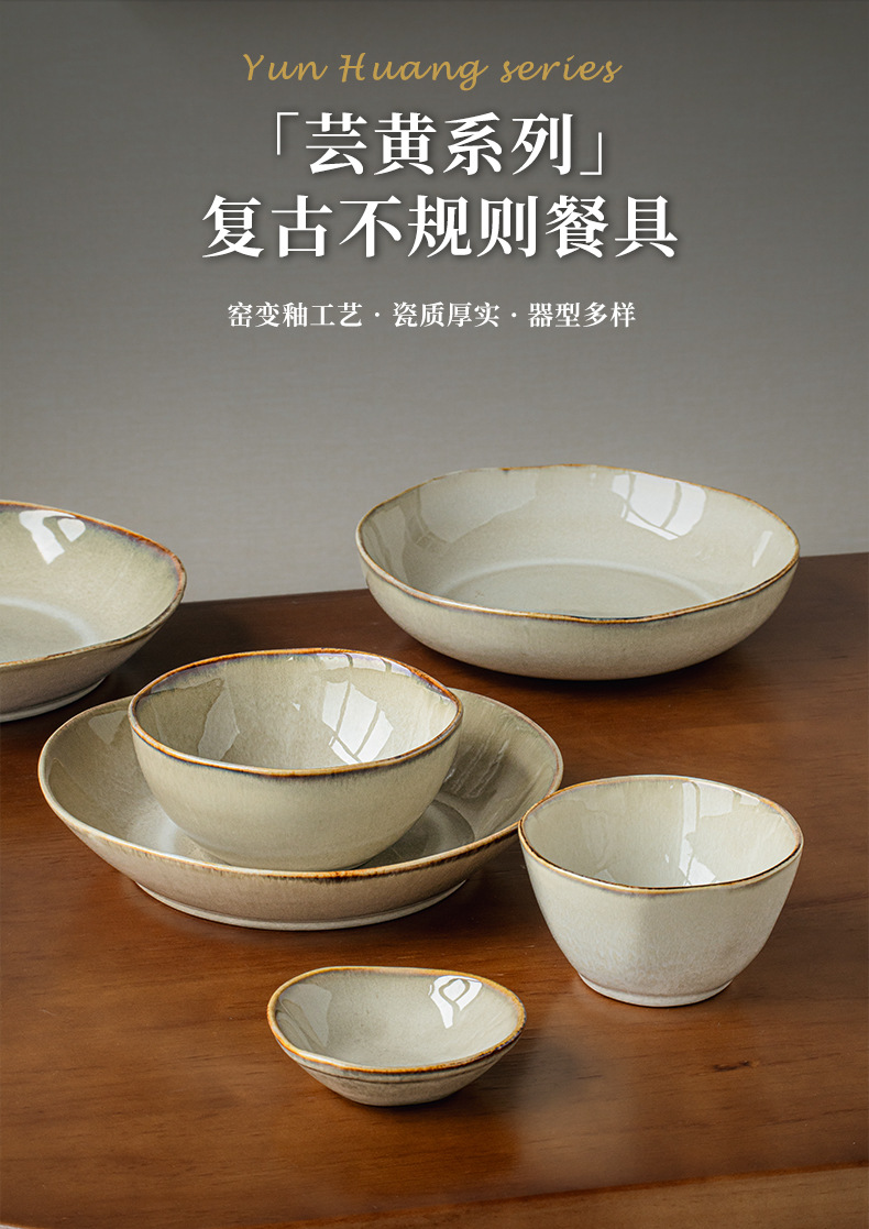 【出口不规则陶瓷碗】芸黄系列怀旧不规则陶瓷菜碗特色盘子日式面碗窑变餐具跨境出口