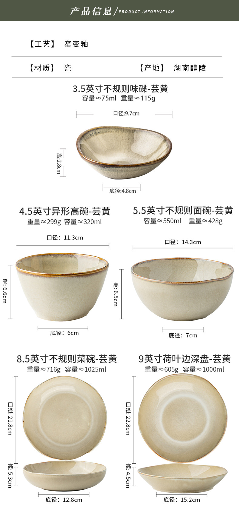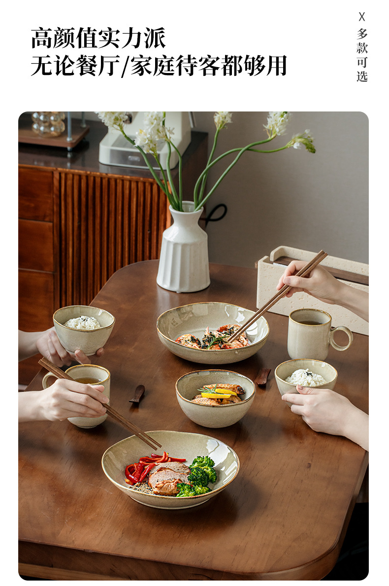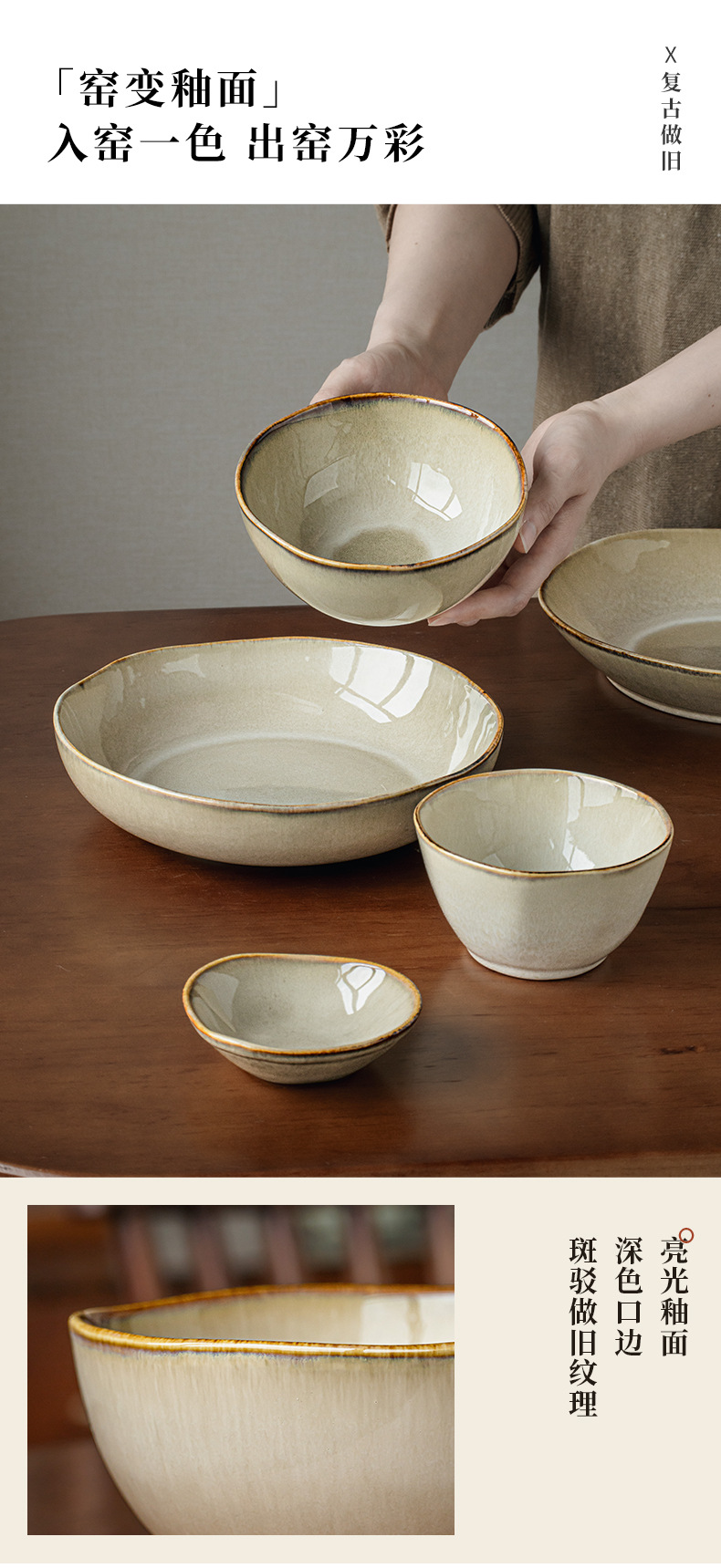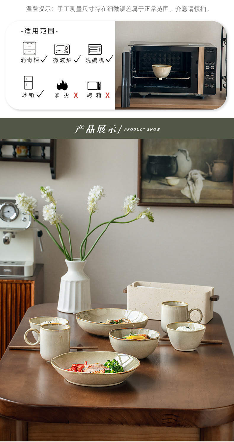 【出口不规则陶瓷碗】芸黄系列怀旧不规则陶瓷菜碗特色盘子日式面碗窑变餐具跨境出口