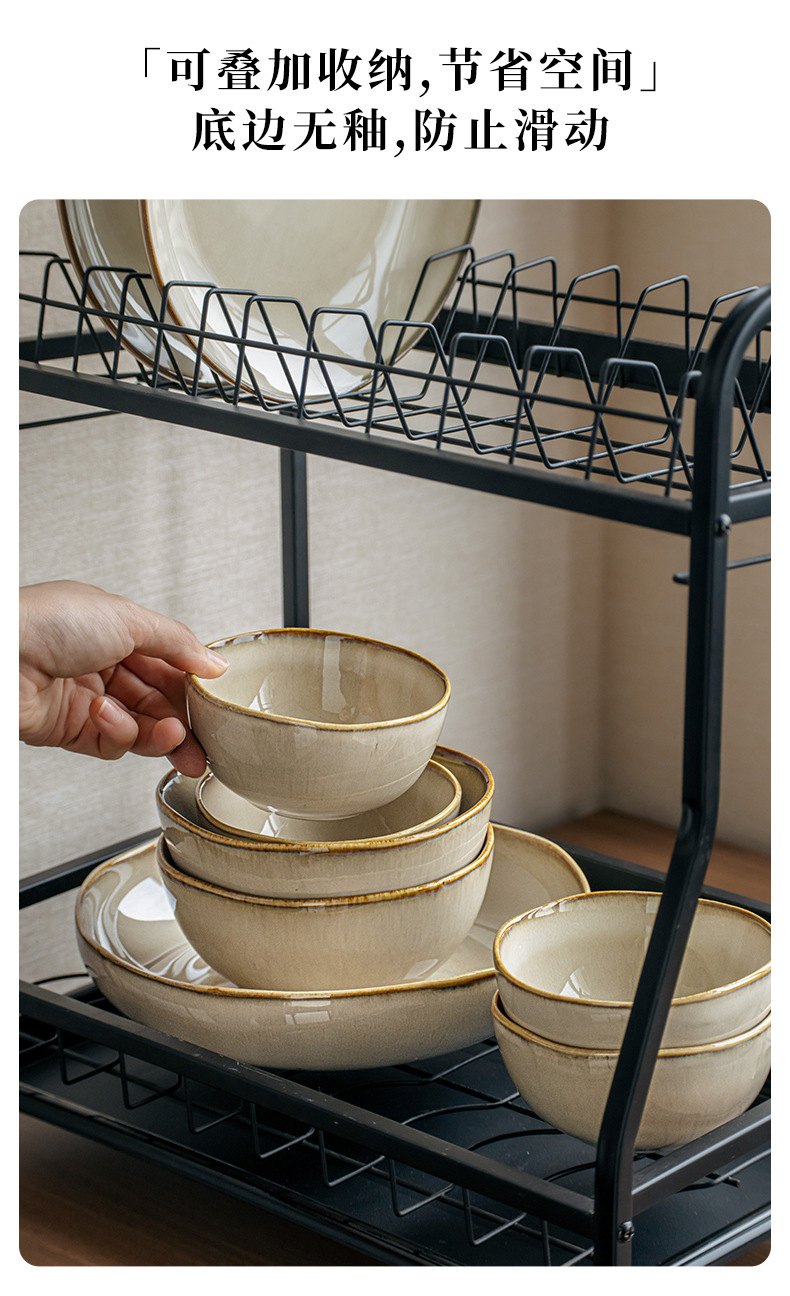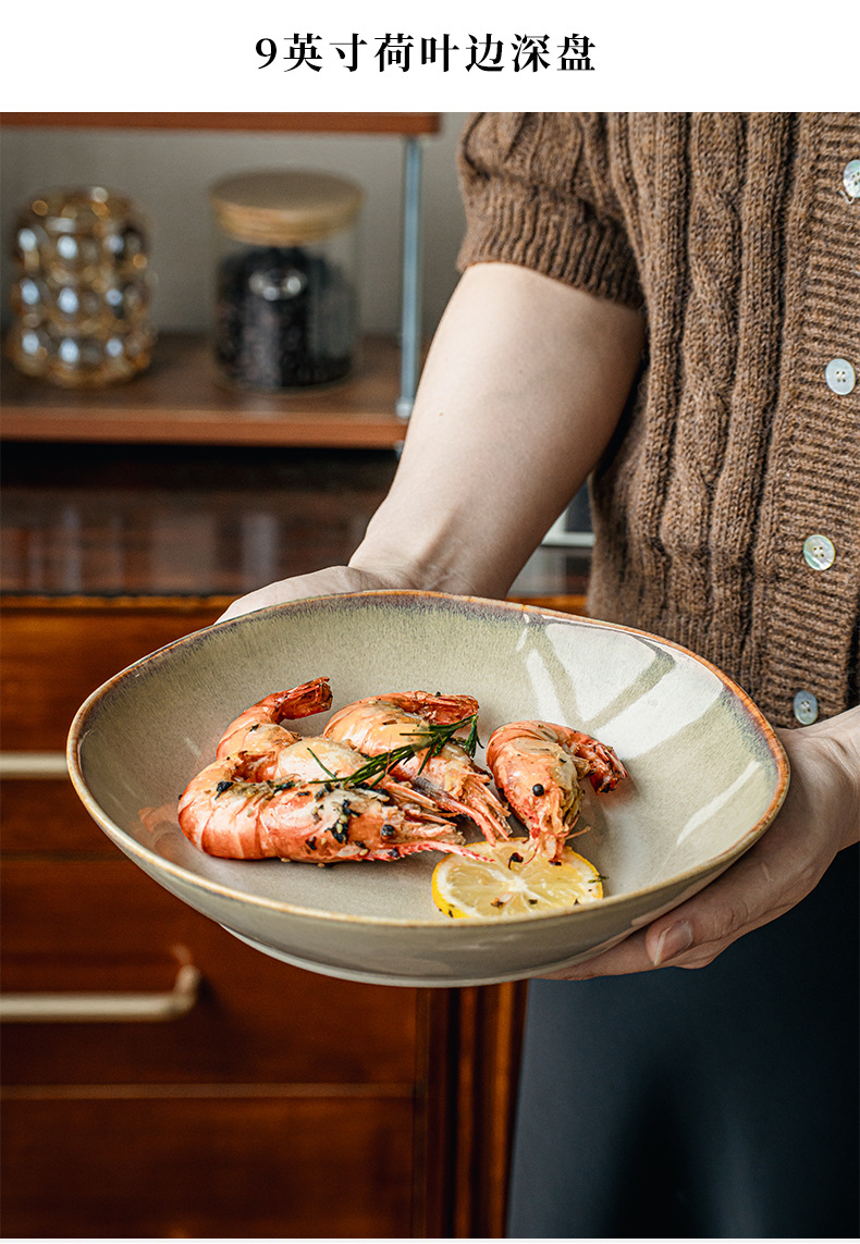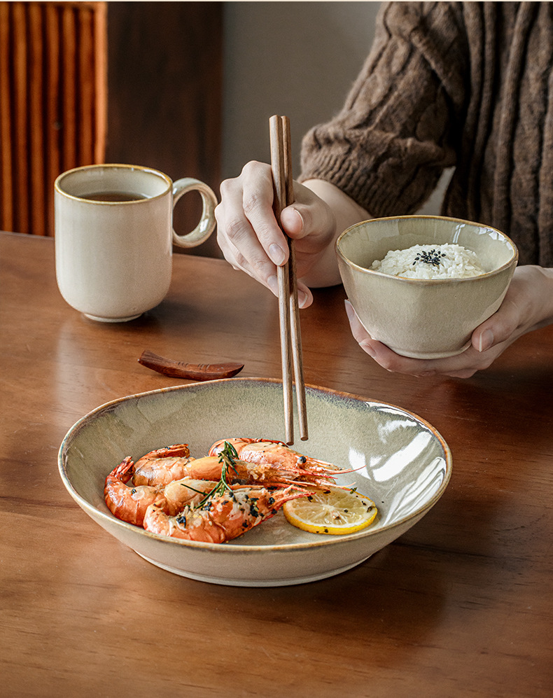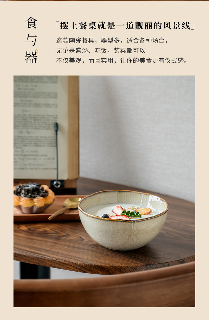 【出口不规则陶瓷碗】芸黄系列怀旧不规则陶瓷菜碗特色盘子日式面碗窑变餐具跨境出口