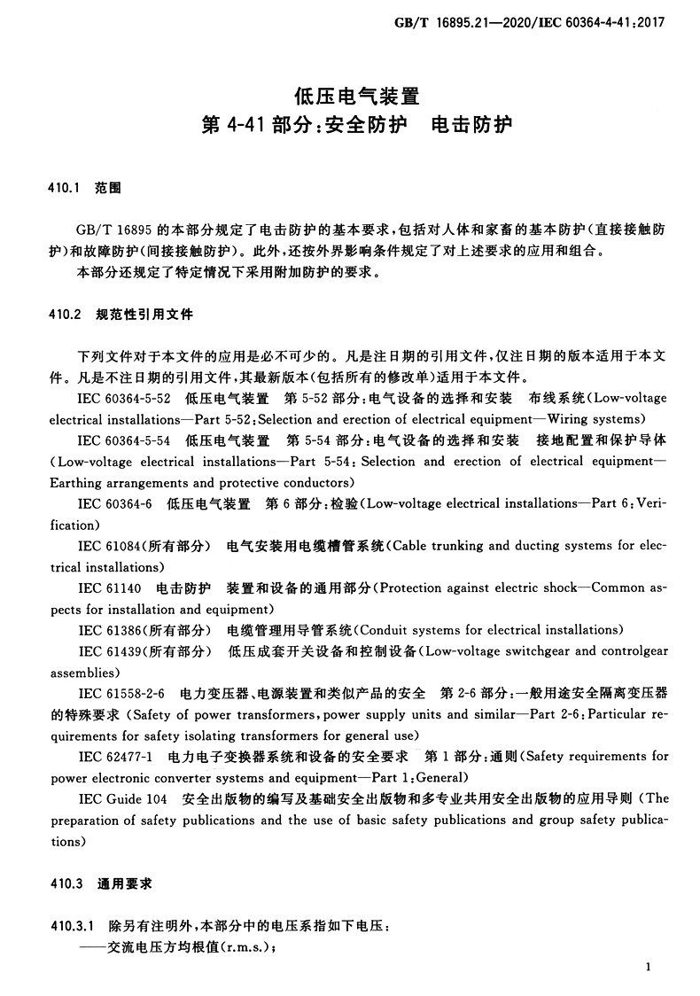 书名:速印不退 低压电气装置 第4-41部分:安全防护 电击防护