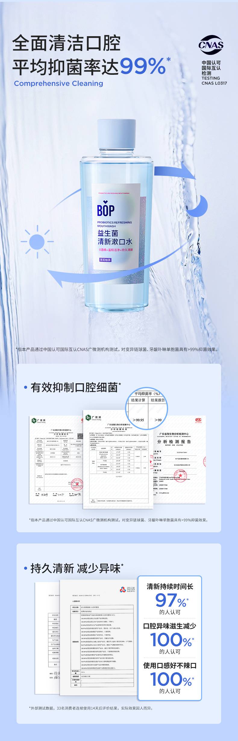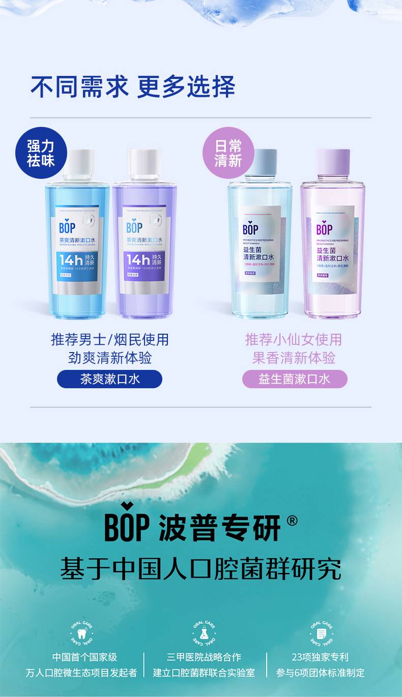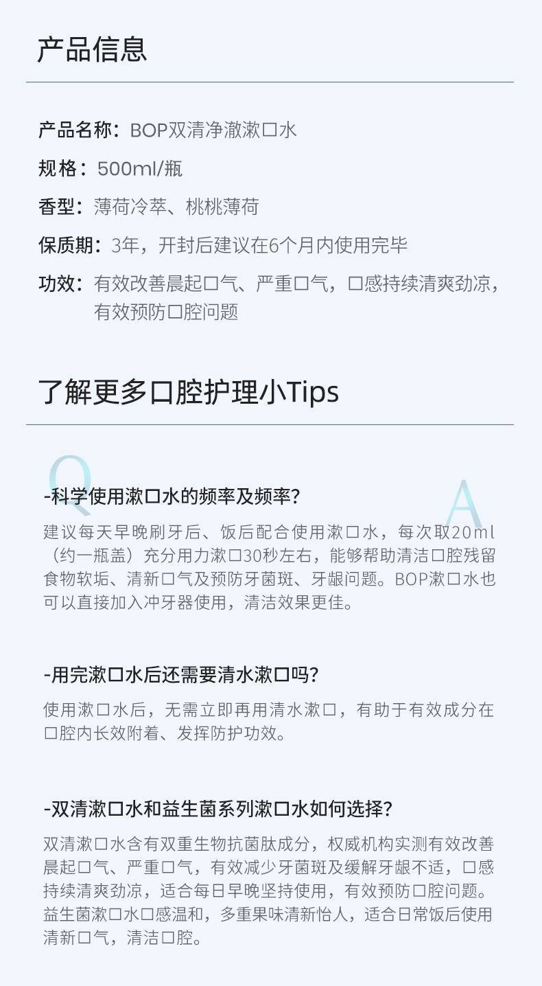 【99%减少口腔菌群 持久清新】#【漱口水家庭装大组合】BOP清新果味500ml大瓶漱口水