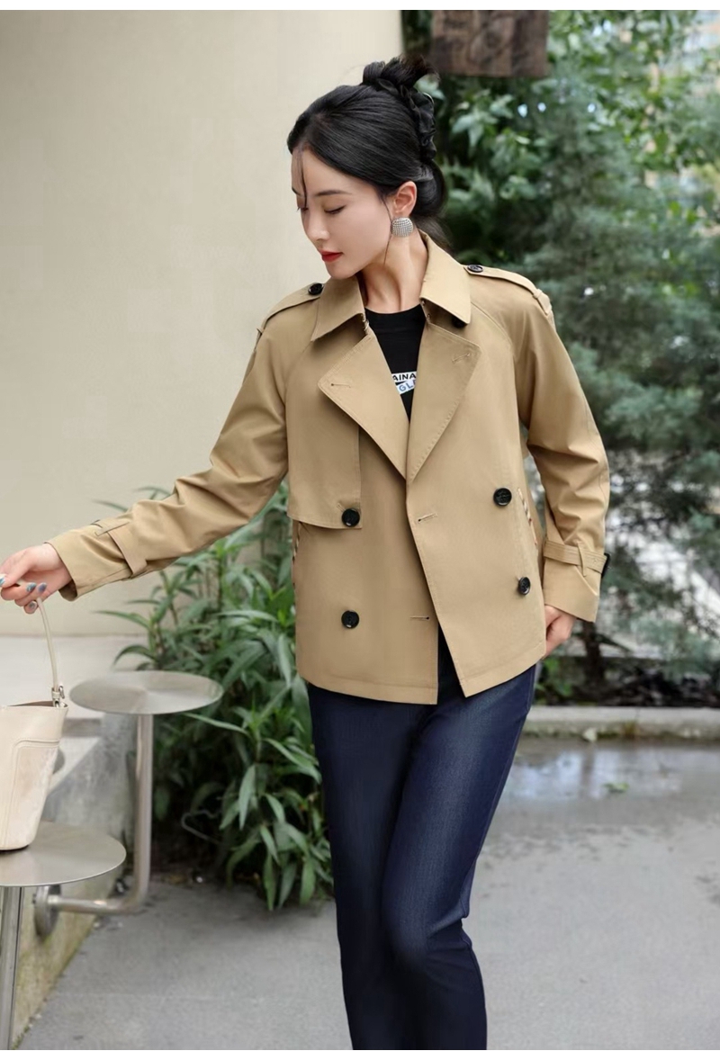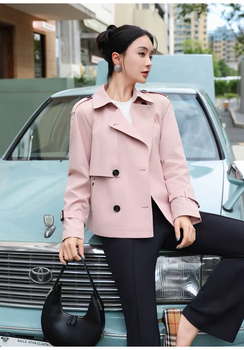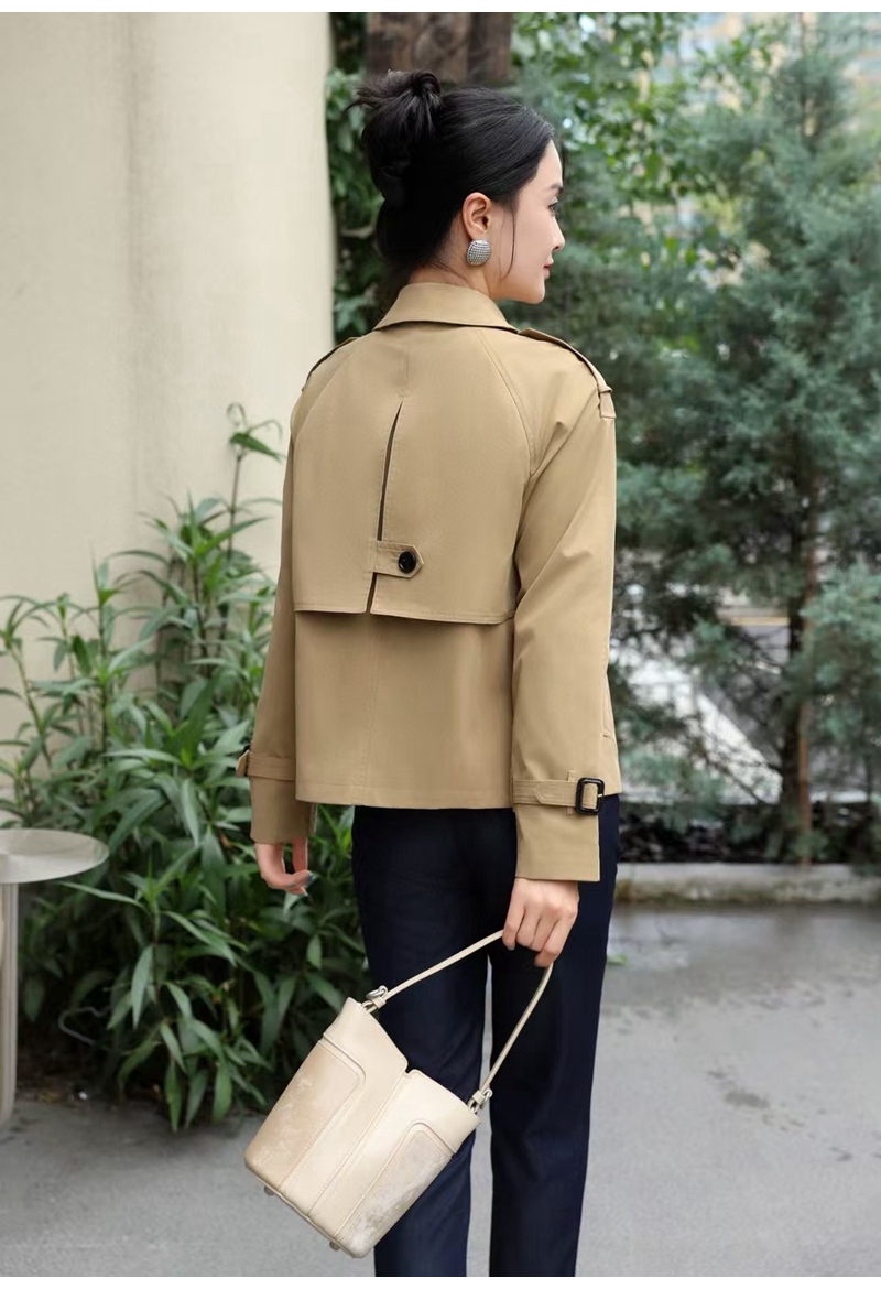 经典翻领长袖双排扣肩章风衣外套