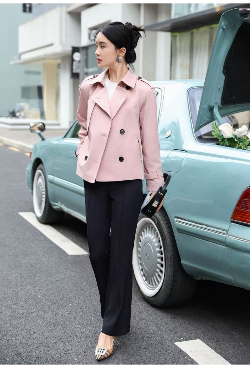2026春装新品时尚西装领长袖双排扣西装外套